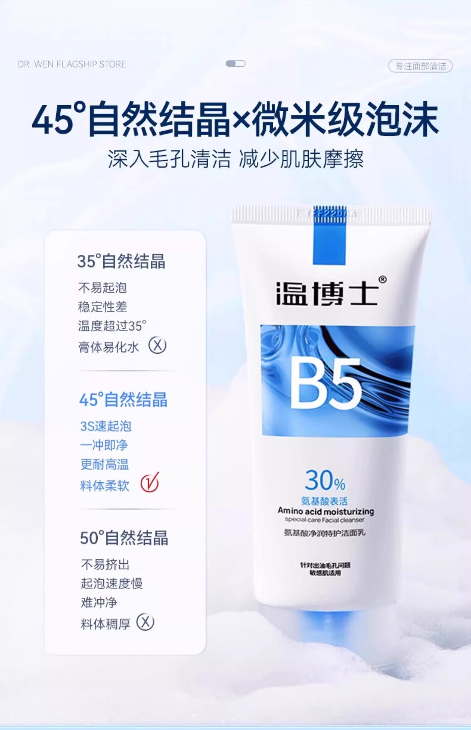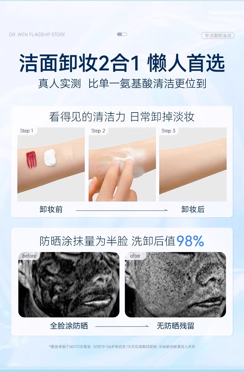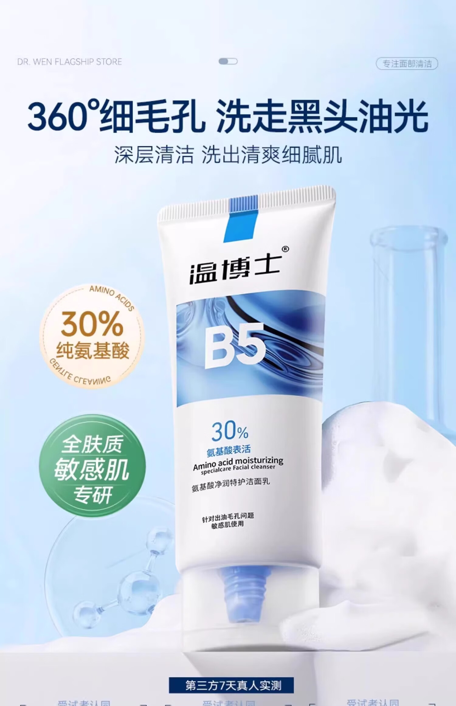 温博士氨基酸洗面奶男女学生敏感肌专用洁面乳深层清洁控油收缩毛孔角质 2支[30%氨基酸]全肤质可用