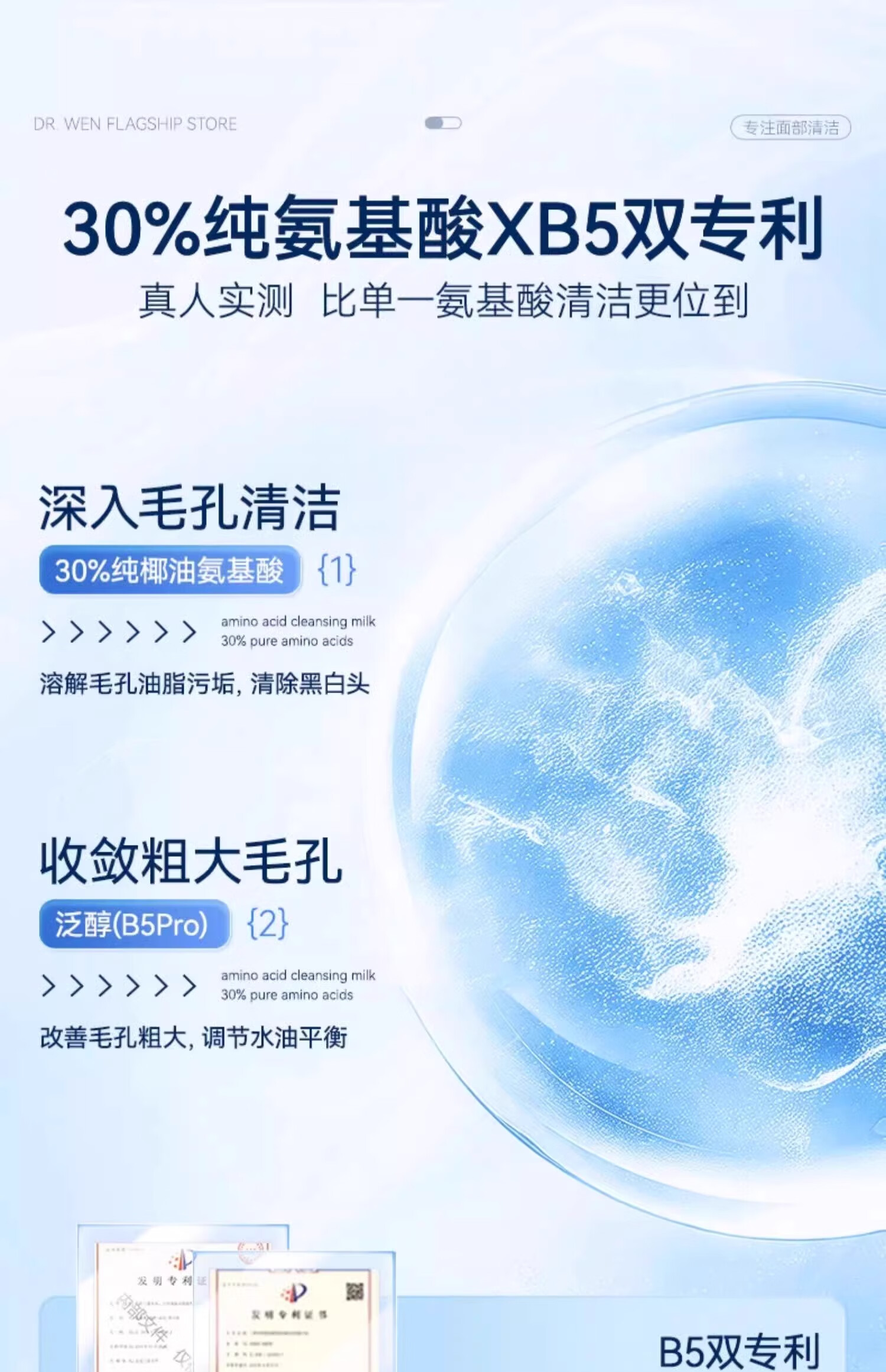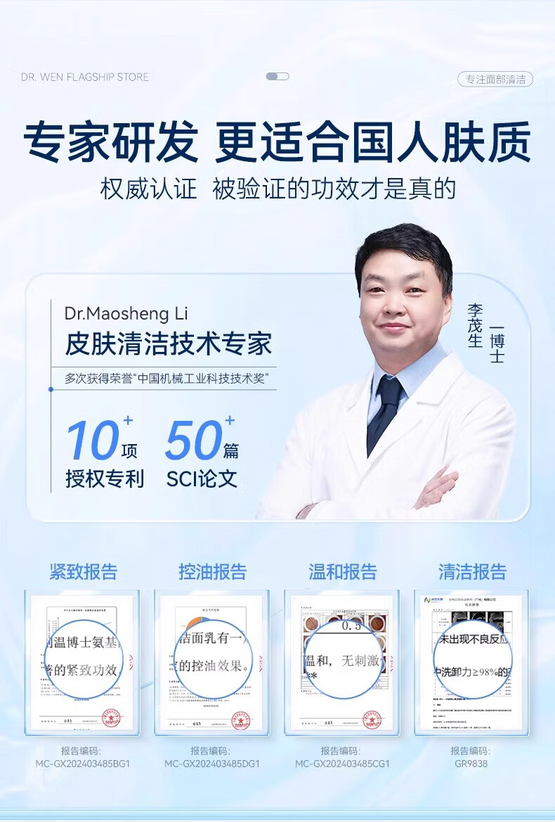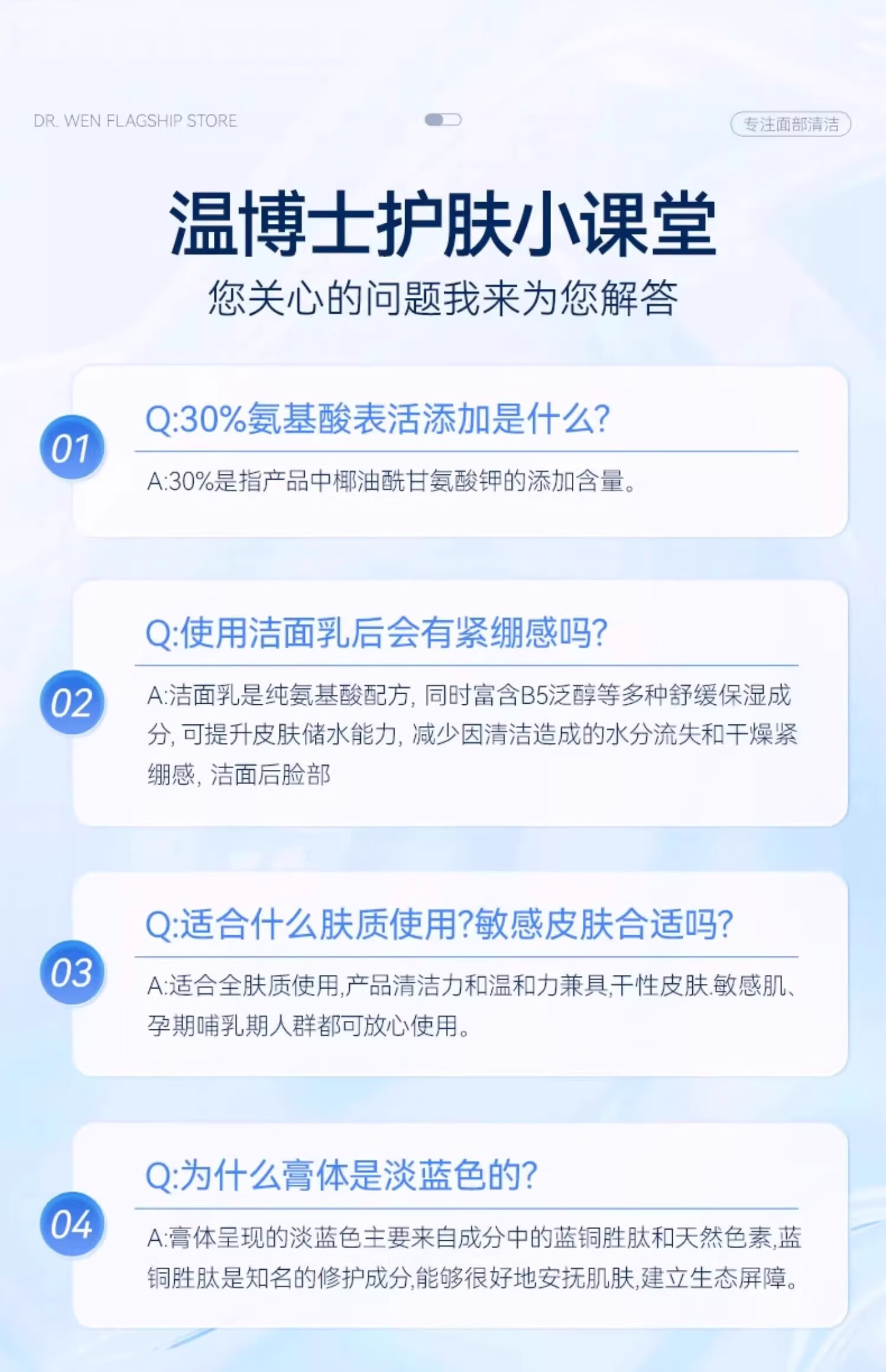 温博士氨基酸洗面奶男女学生敏感肌专用洁面乳深层清洁控油收缩毛孔角质 2支[30%氨基酸]全肤质可用