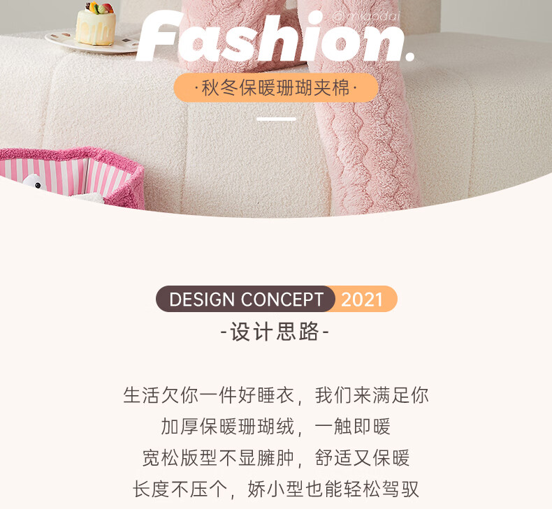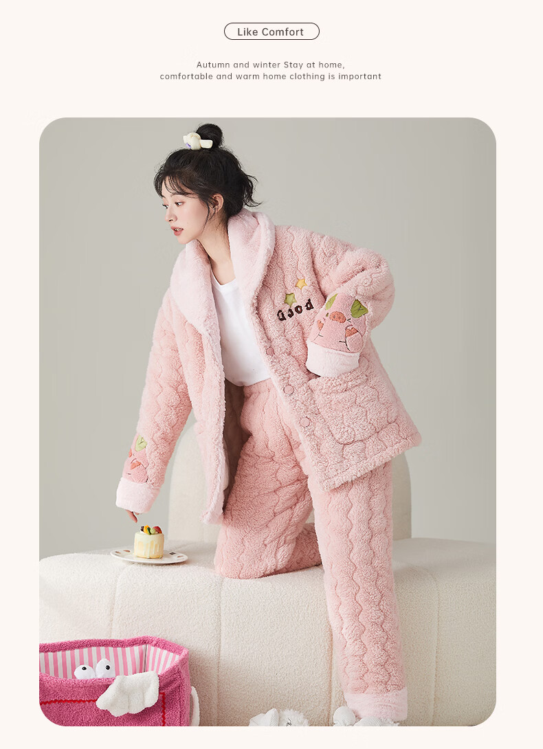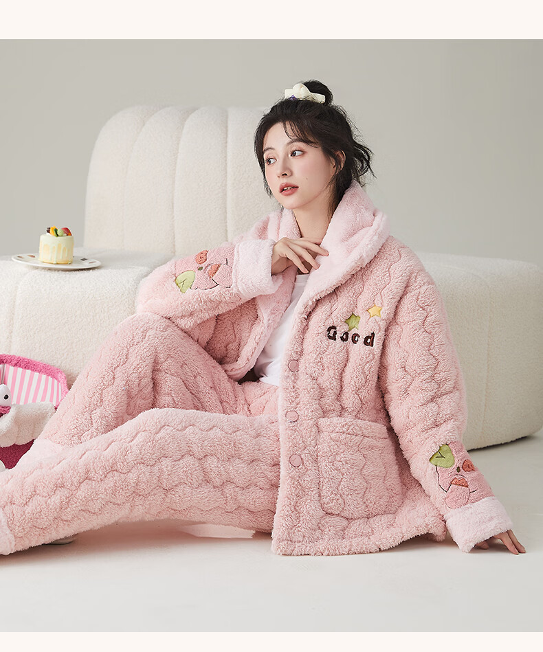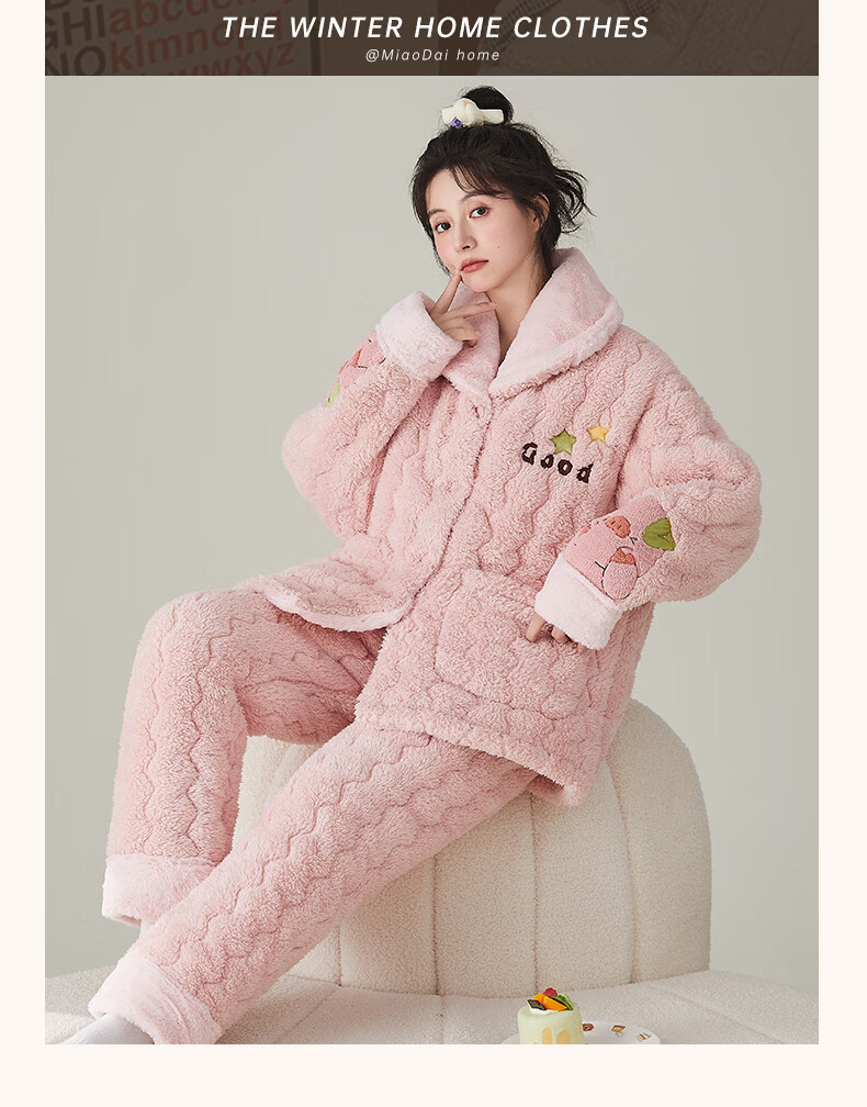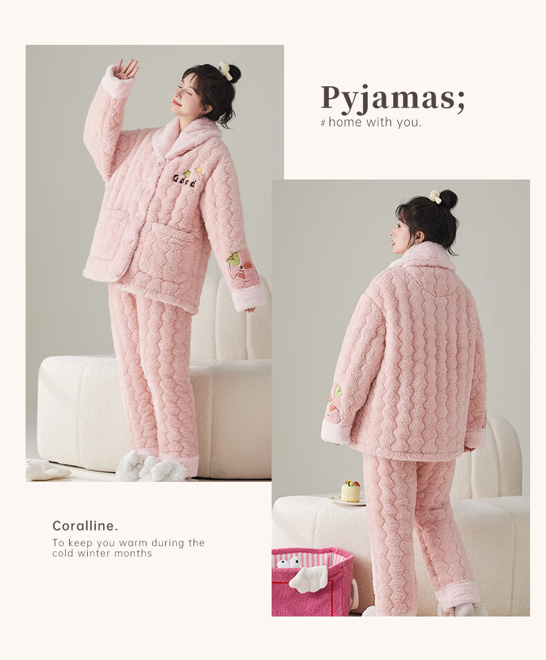 缪黛 MAULTIAY珊瑚绒冬季睡衣女保暖加厚加绒三层夹棉袄秋冬款套装法兰绒家居服 限时秒杀 《少量现货》 M