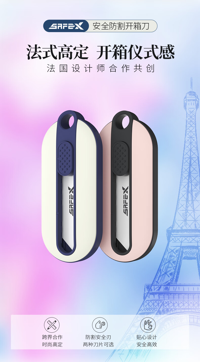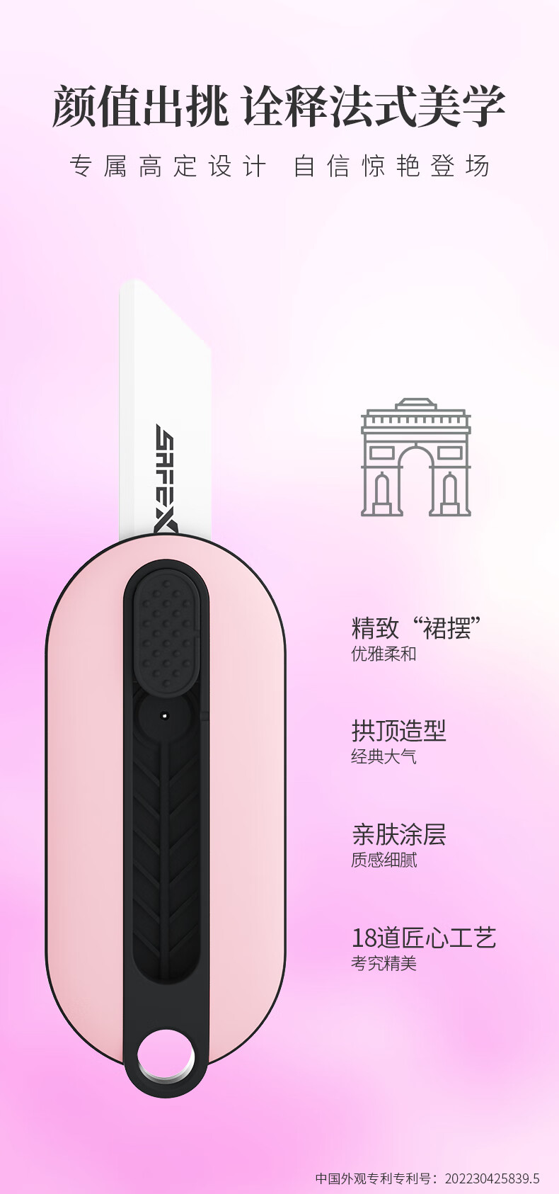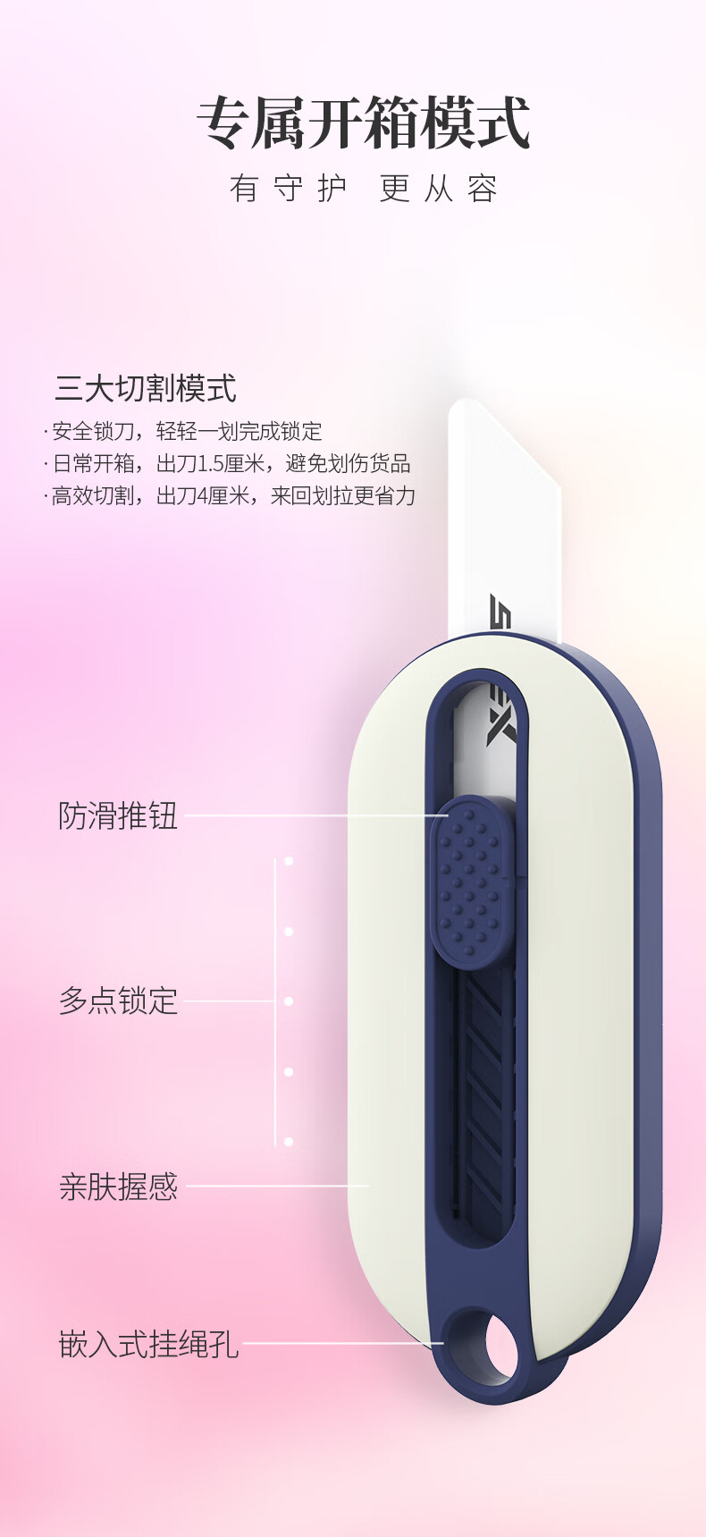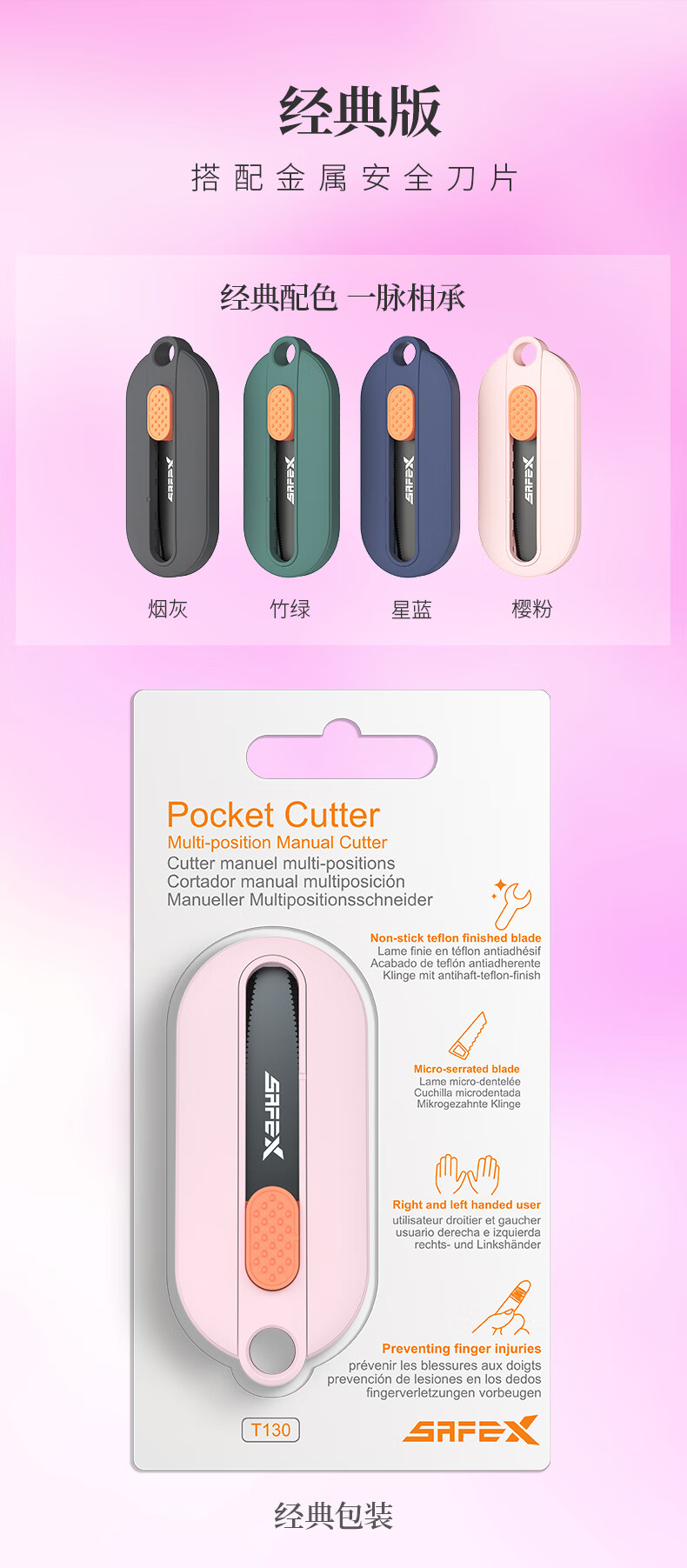 SAFEX伸缩便携式快递刀不锈钢钥匙扣开箱刀可上高铁小刀安全耐用特氟龙美工刀新款锁定拆快递包裹专用刀 【金属经典版】T130M-摩登灰