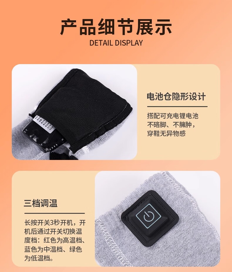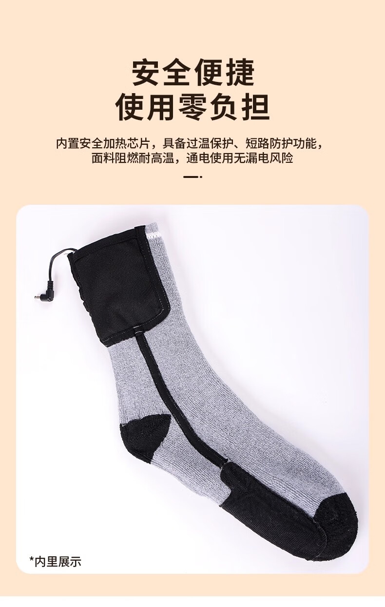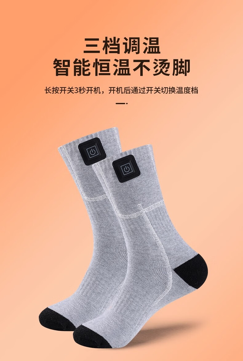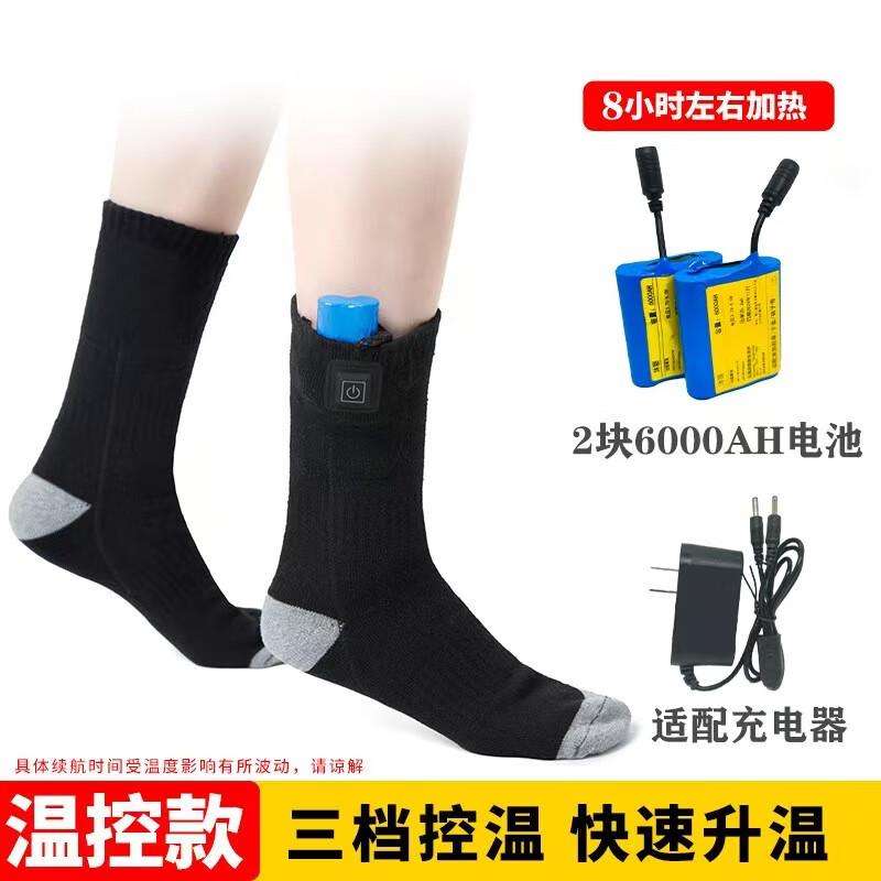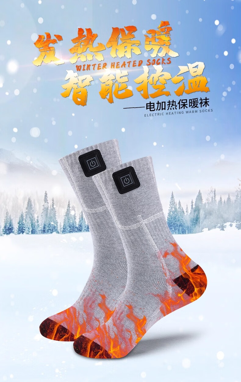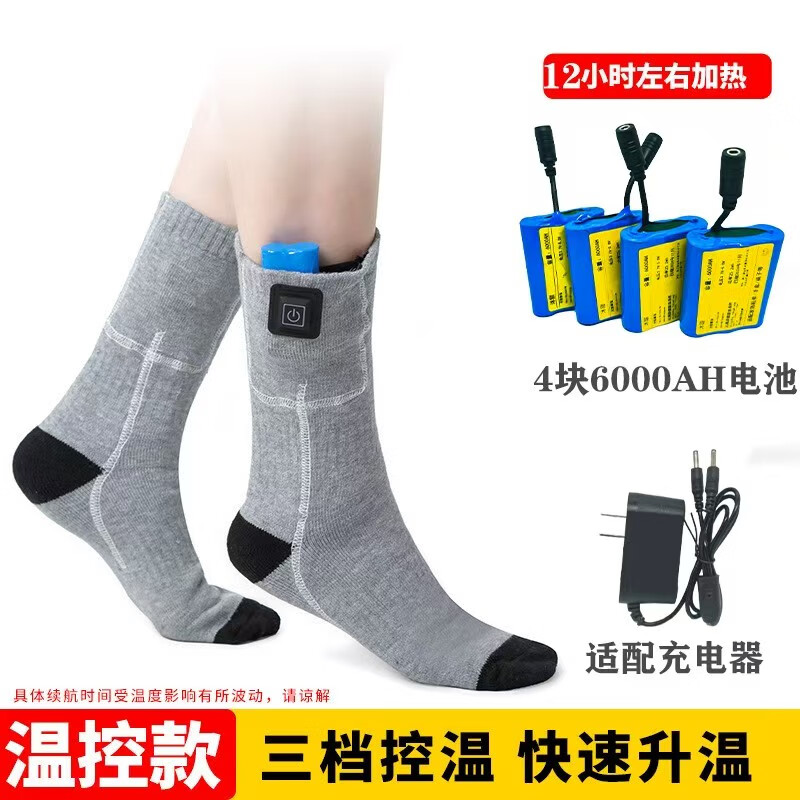 沐甜电热袜子男女充电自发热袜保暖冬季加热袜中老年暖脚宝神器长筒袜 灰色三档调温【4块6000毫安+充电器】