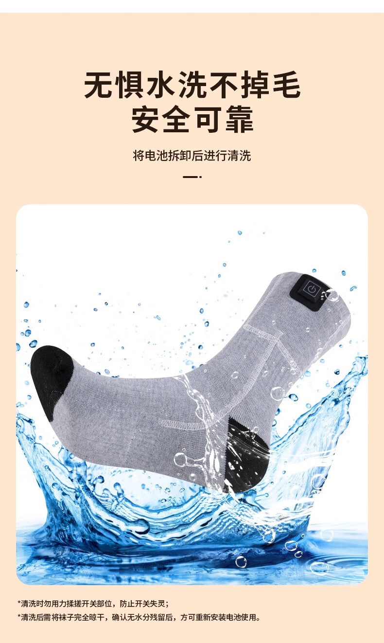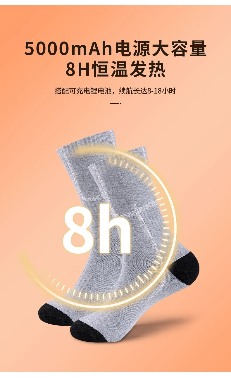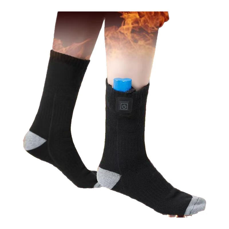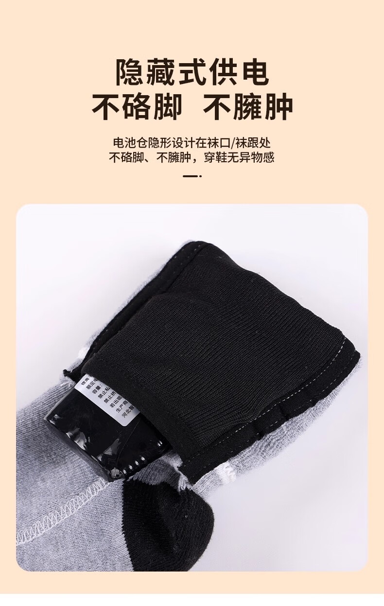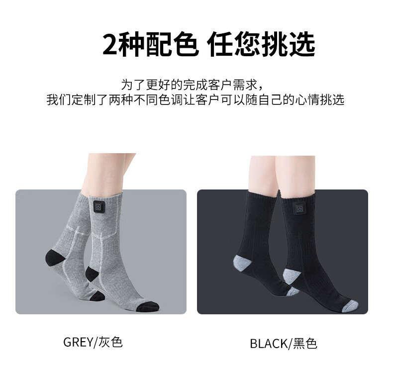沐甜电热袜子男女充电自发热袜保暖冬季加热袜中老年暖脚宝神器长筒袜 灰色三档调温【4块6000毫安+充电器】