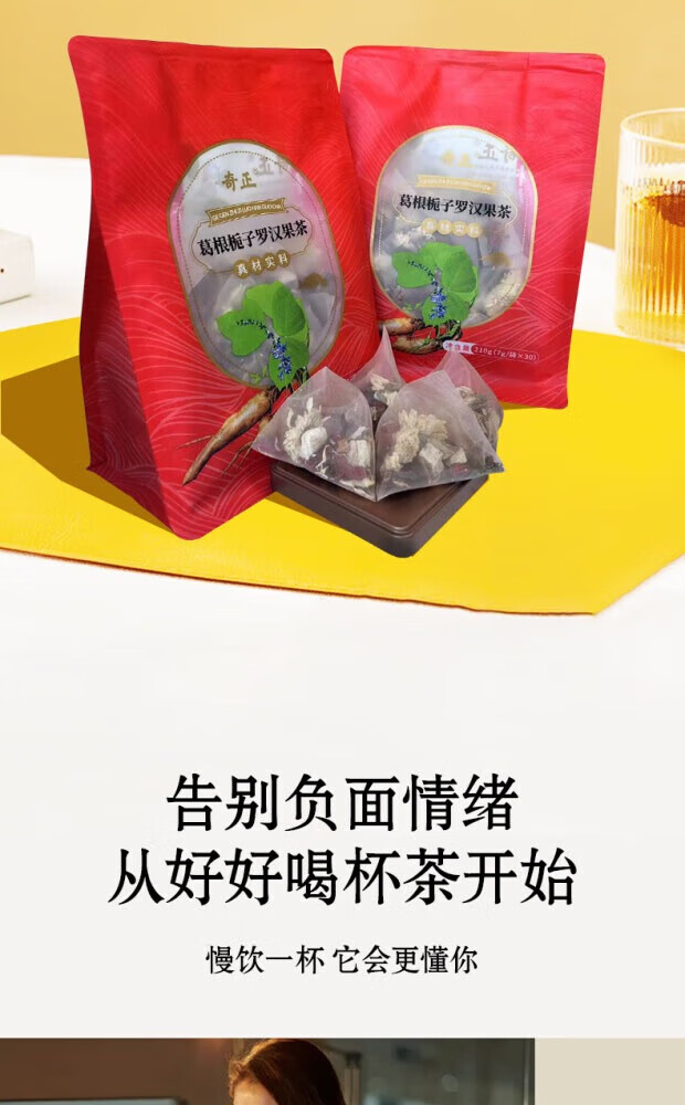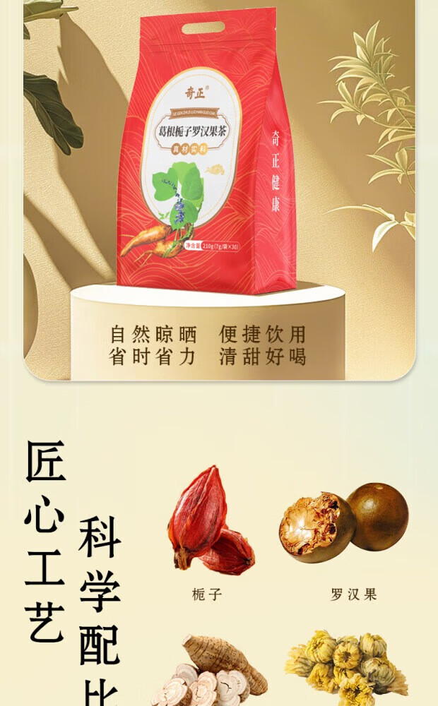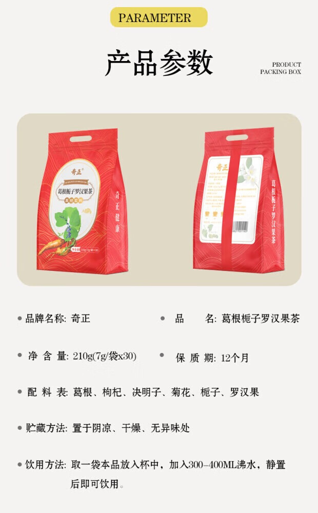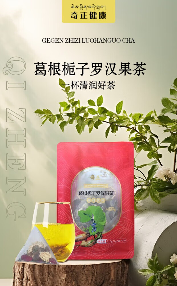 奇正葛根栀子罗汉果茶泡水菊花茶熬夜养生茶包 30包*1袋