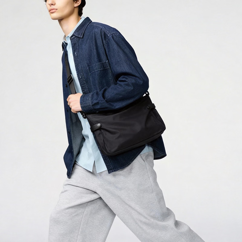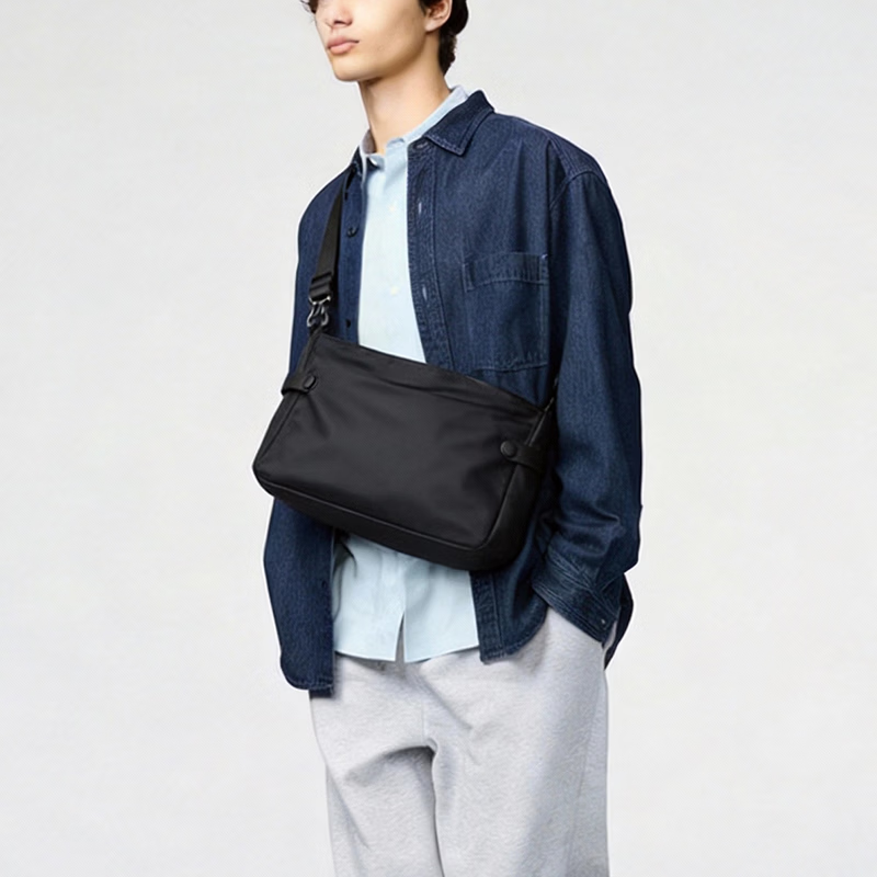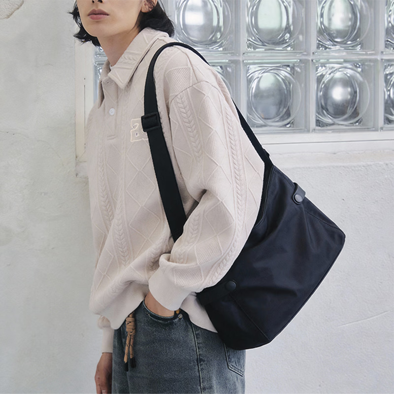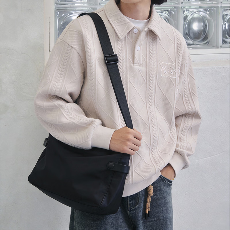 Colrtn Kwecr男士新款单肩包商务休闲背包斜挎包大容量邮差包时尚情人节礼物男 黑色大号 33*24*10