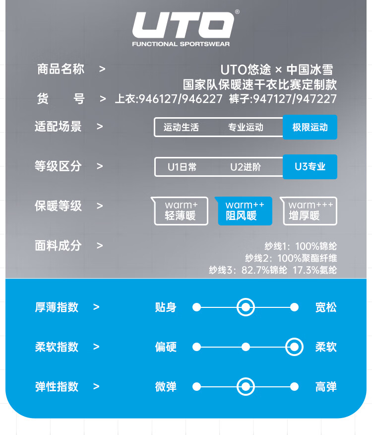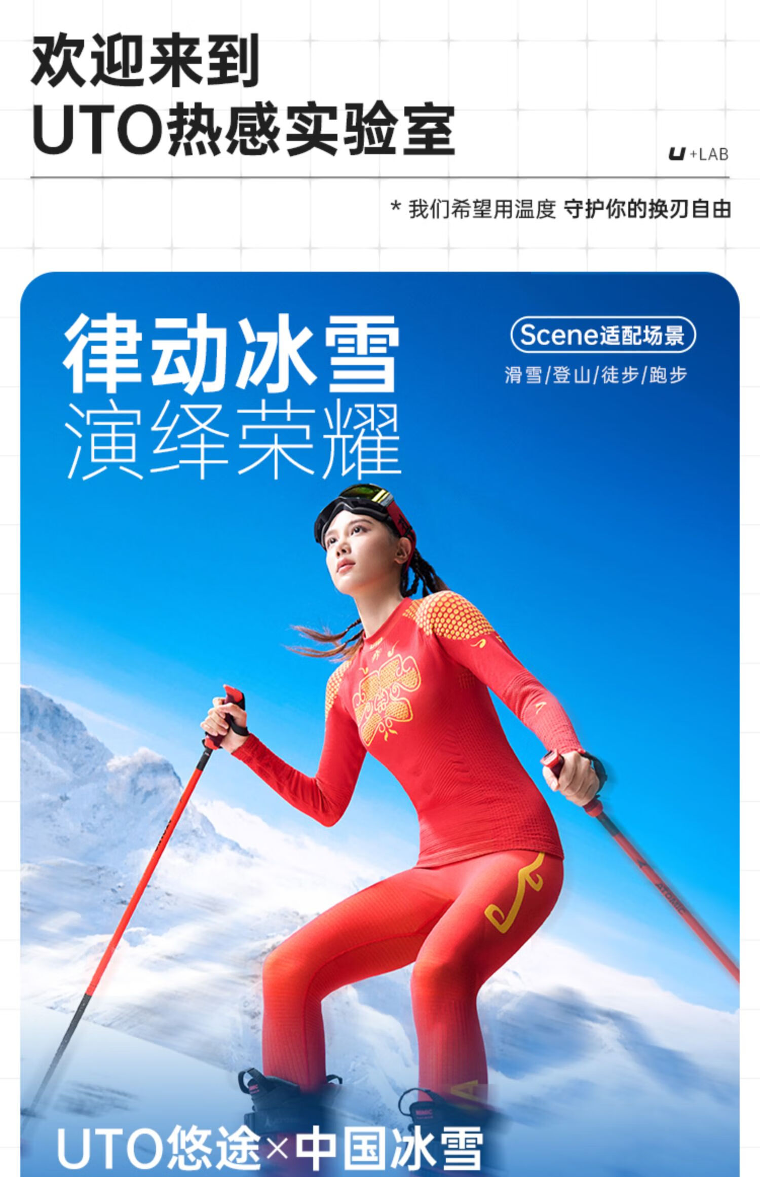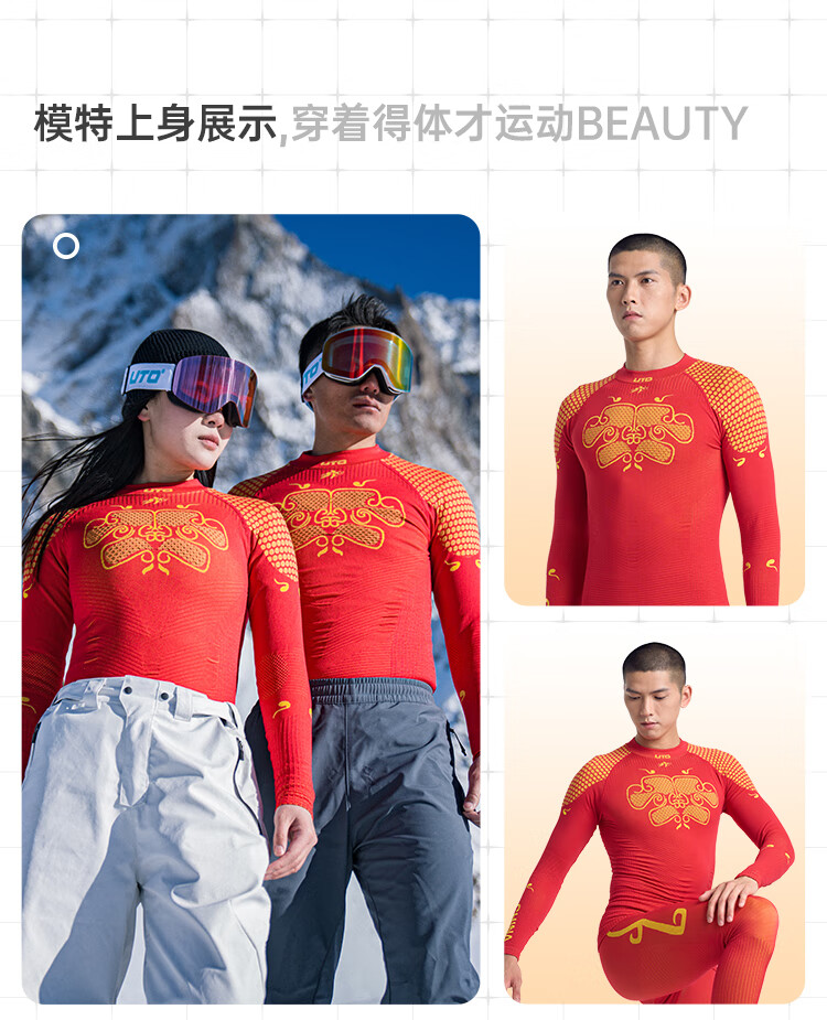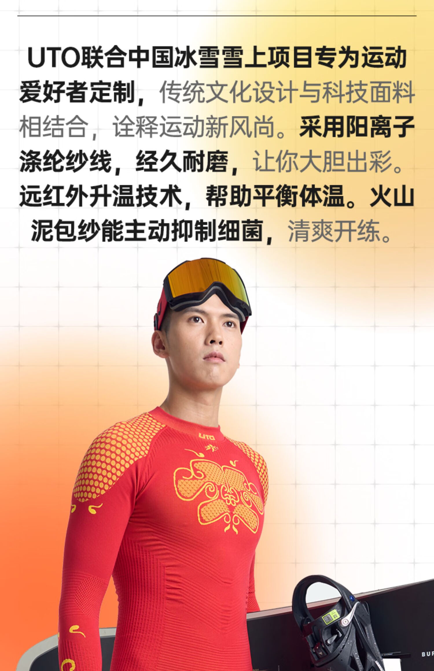 悠途(UTO)悠途 × 中国冰雪 男士国家队保暖速干上衣比赛定制款滑雪内衣女 男款中国红(上衣) 2XL