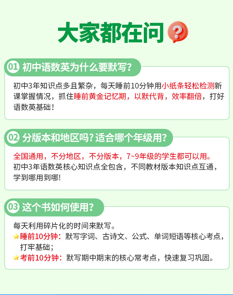 2026万唯初中语数英考点默写七八九年级知识点睡前必背核心考点初一初二语文数学英语初三期中期末总复习归纳总结练习本万维教育 初中通用 【语数英】3科合订
