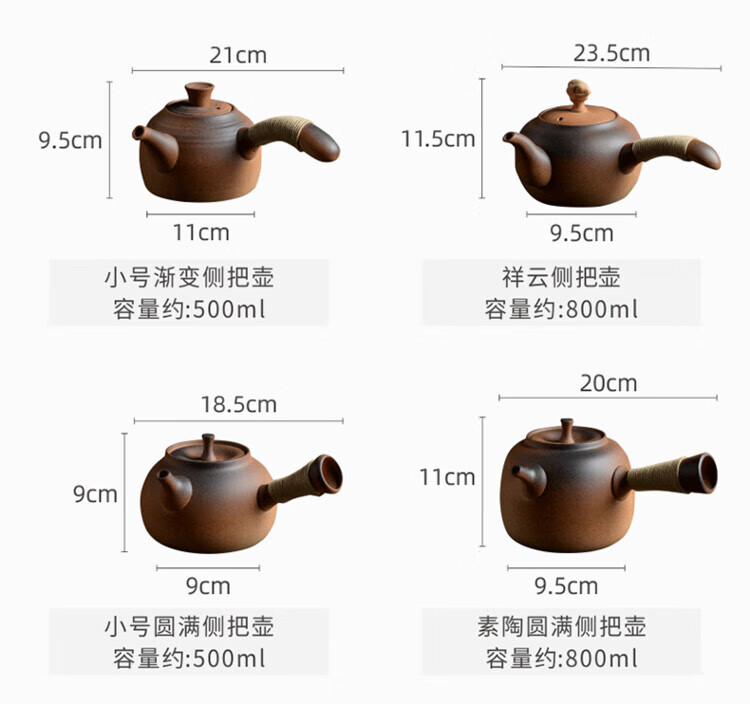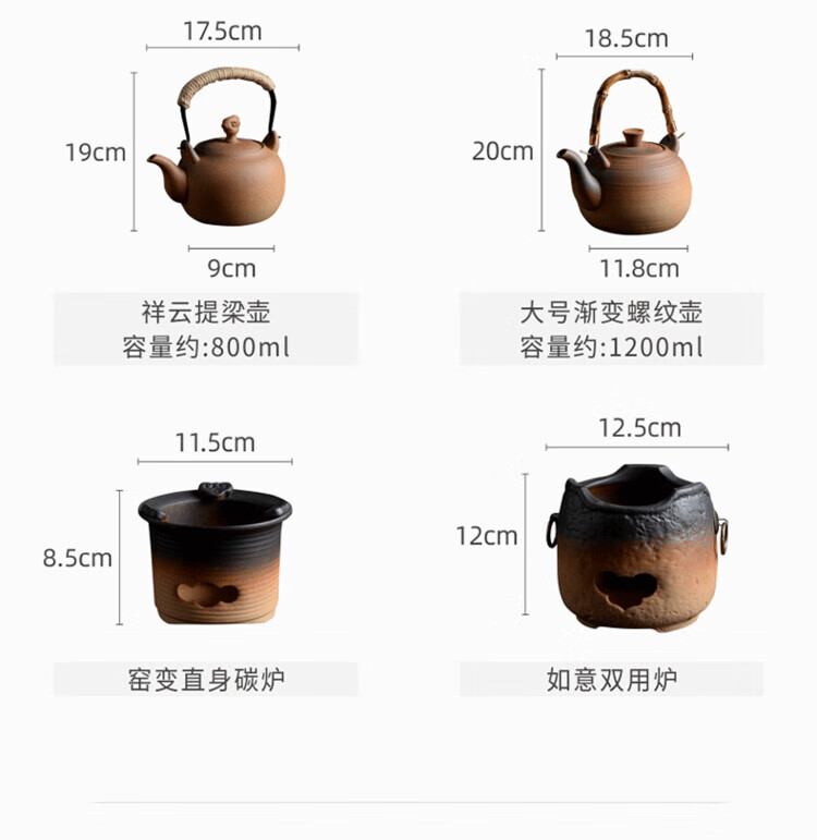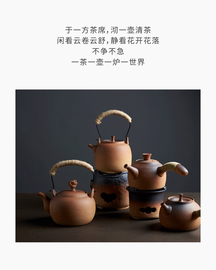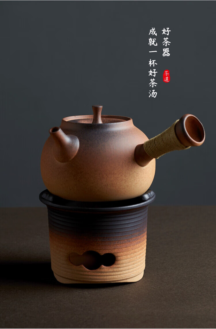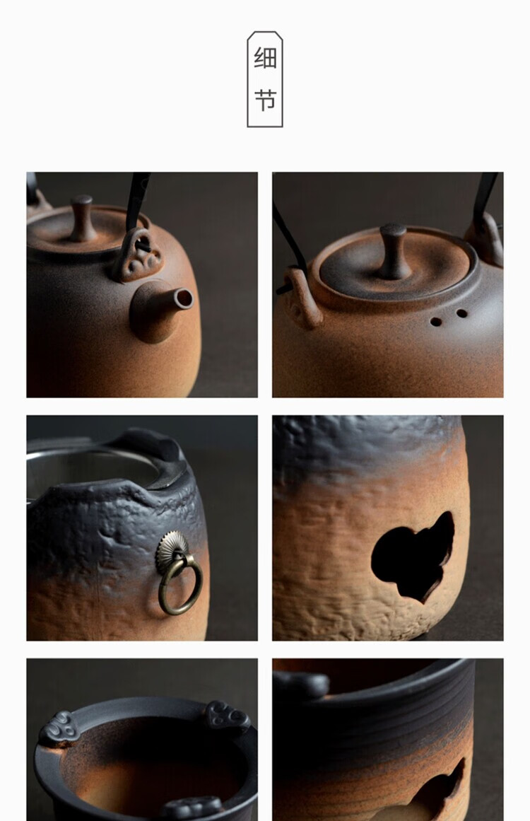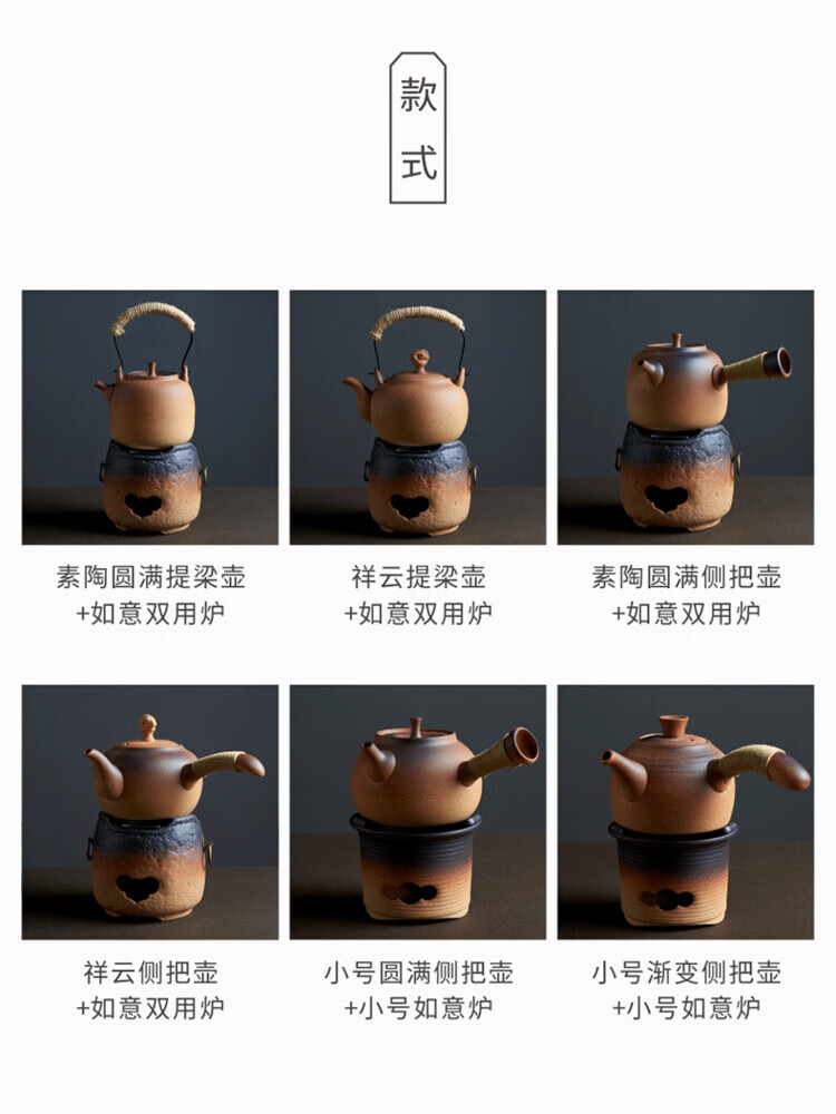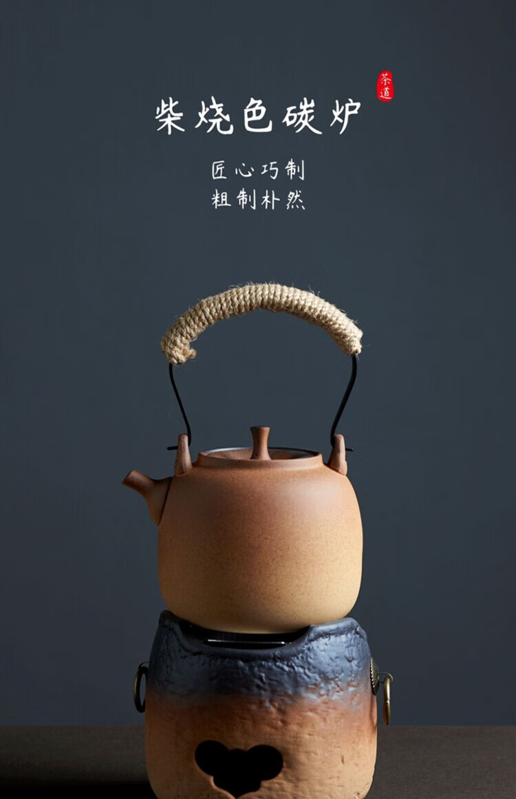 家用煮茶壶户外陶瓷酒精炉烧水壶提梁壶无釉柴烧围炉双用酒精炉 小号渐变侧把壶+如意酒精炉 500ml 500ml-1200ml