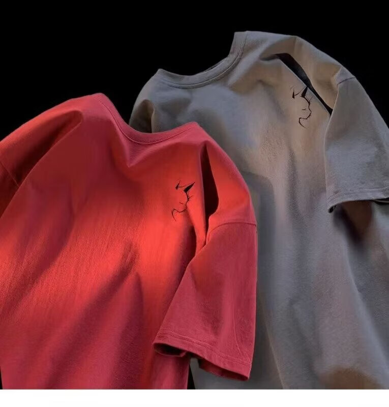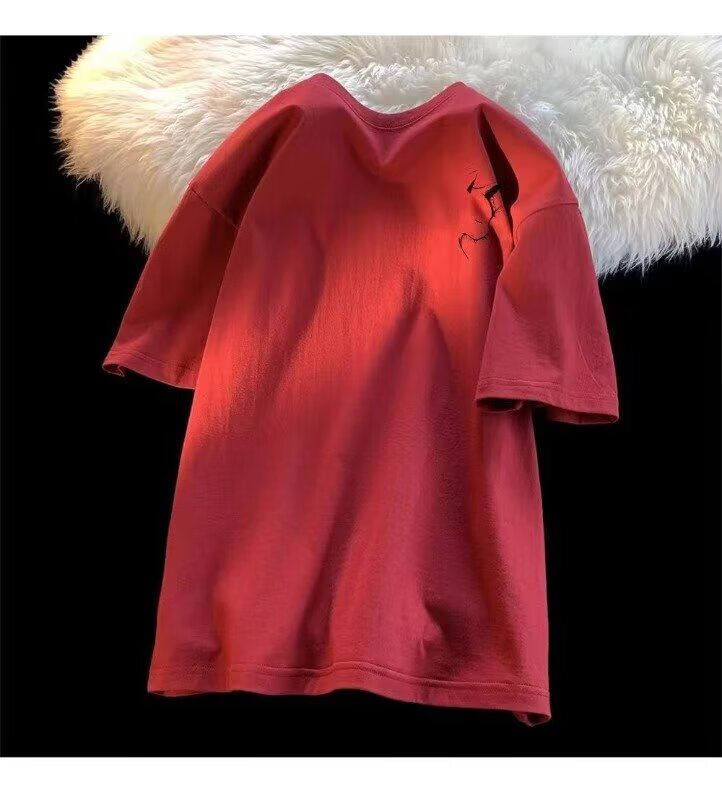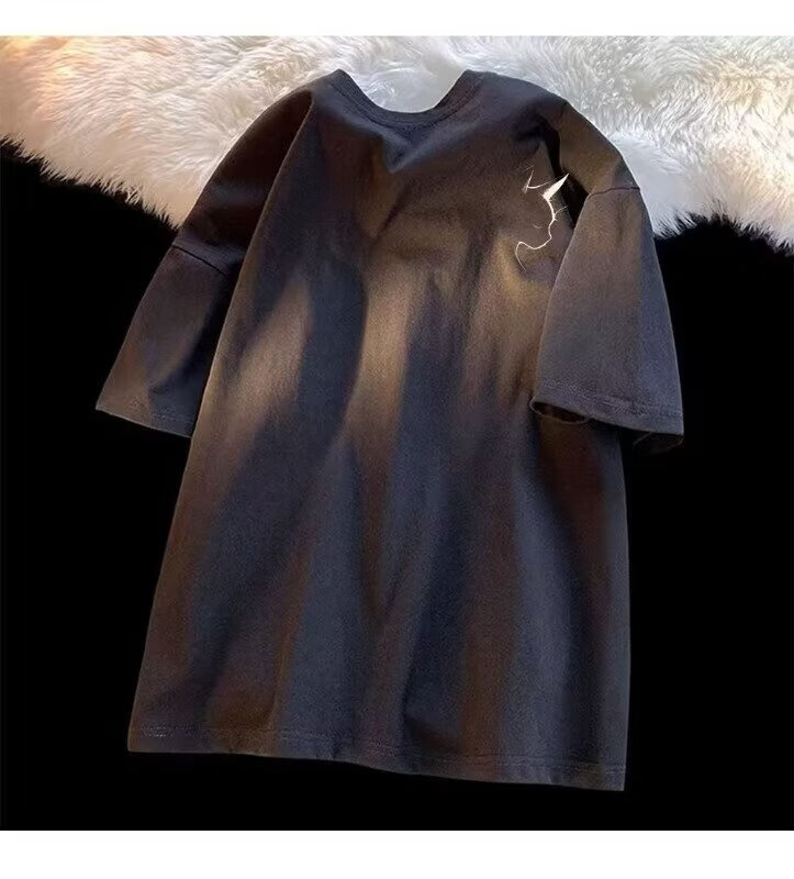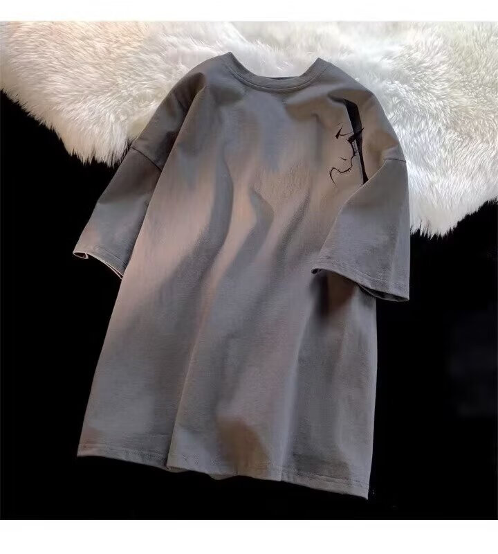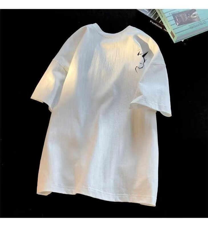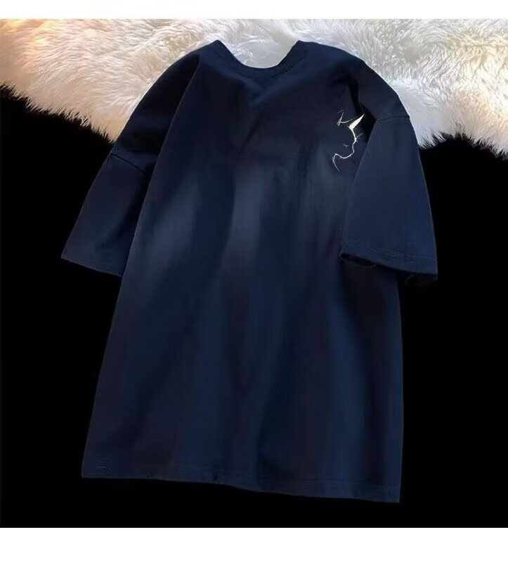 极巅【精选】2025新款夏季美式短袖t恤男女设计感光猫影印花休闲宽松 藏青色 S