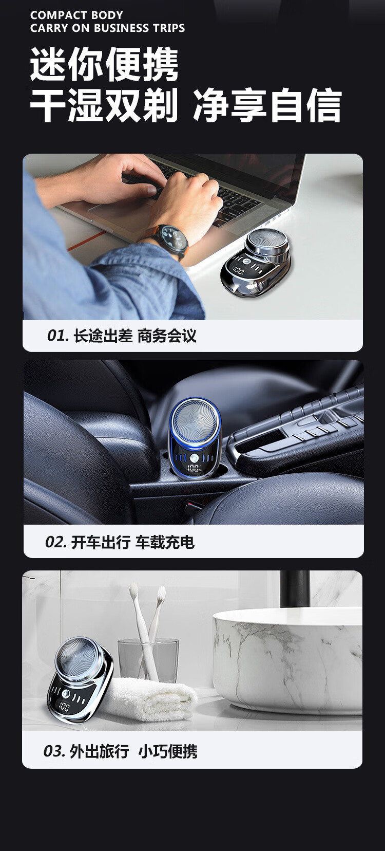 迷你电动剃须刀便携旅行男士电动小钢炮刮胡子剃须充电刮胡刀 SQ-021-黑色