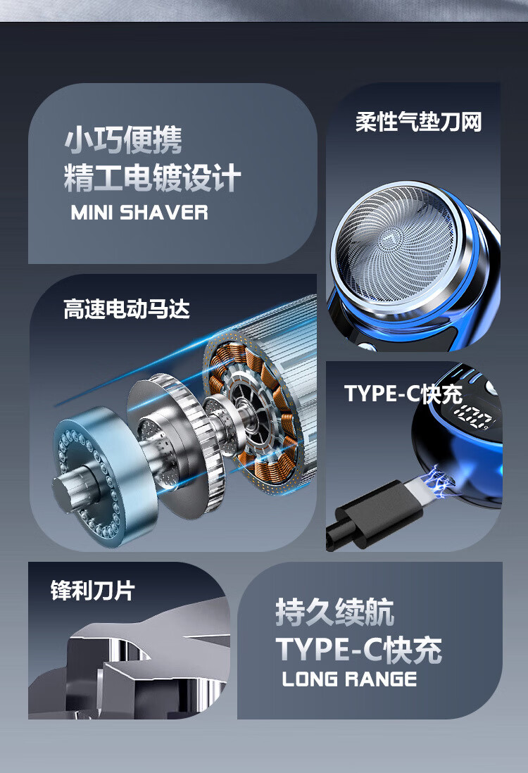凌科【厂家直供】118电动剃须刀迷你胡须刀智能防夹电动刮胡刀USB充电 118