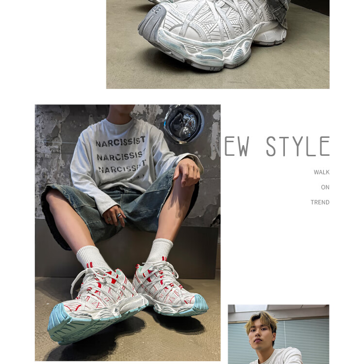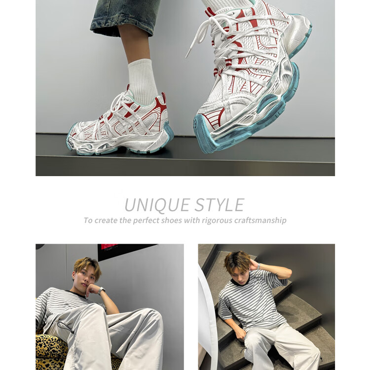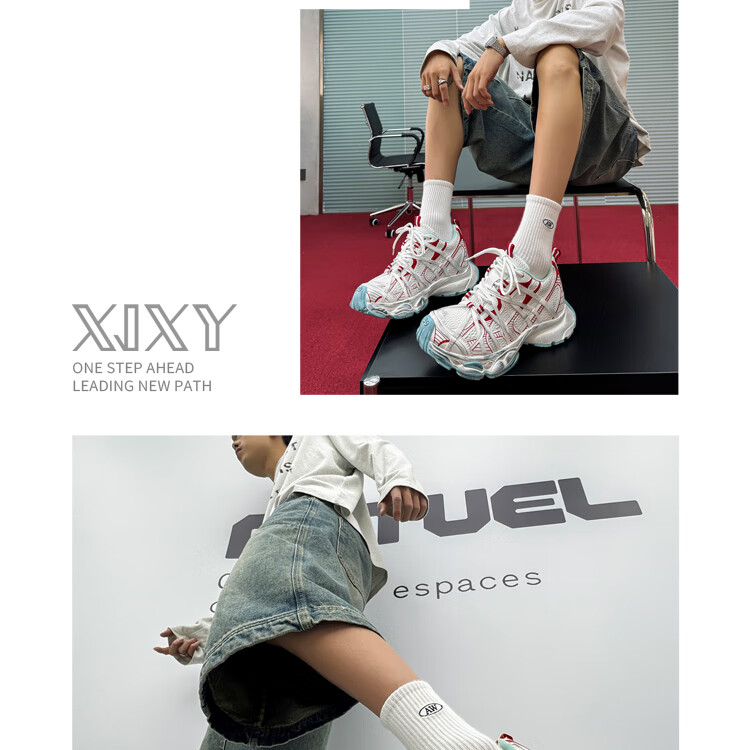 XJXY男鞋2025秋季新款运动透气青年鞋潮流百搭休闲老爹鞋子增高男款鞋 红色隐形增高7cm 42