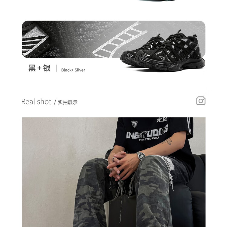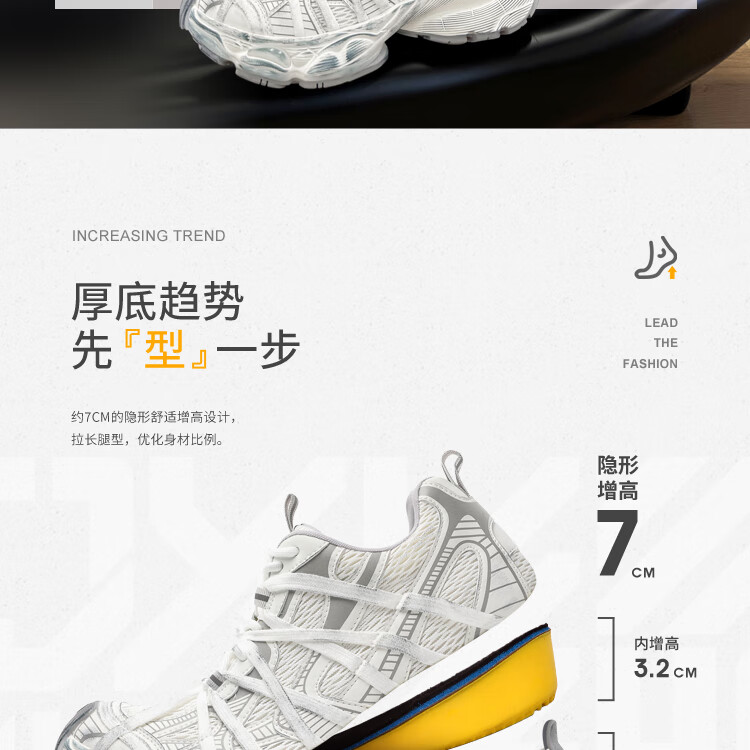 XJXY男鞋2025秋季新款透气运动鞋子潮流百搭休闲老爹鞋子增高男款鞋 黑色隐形增高7cm 39