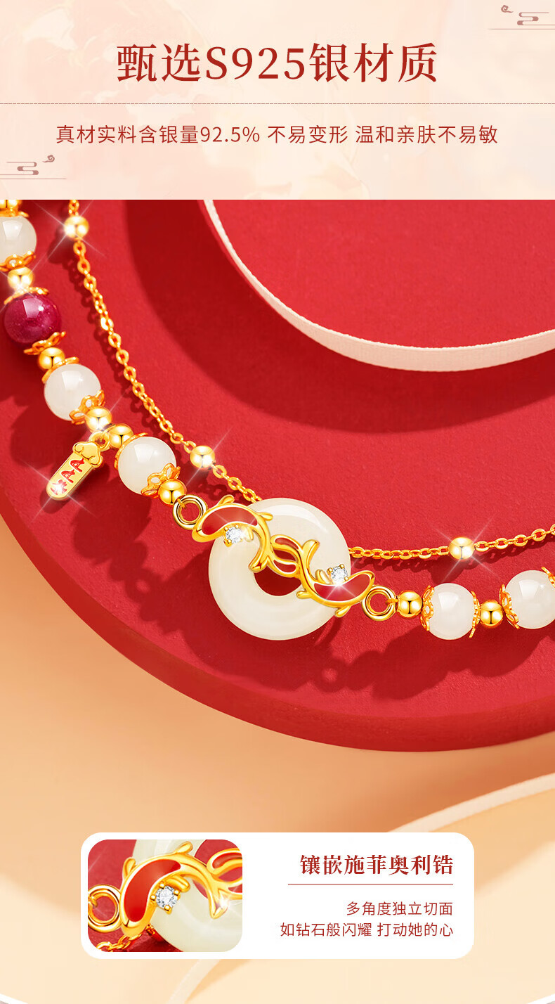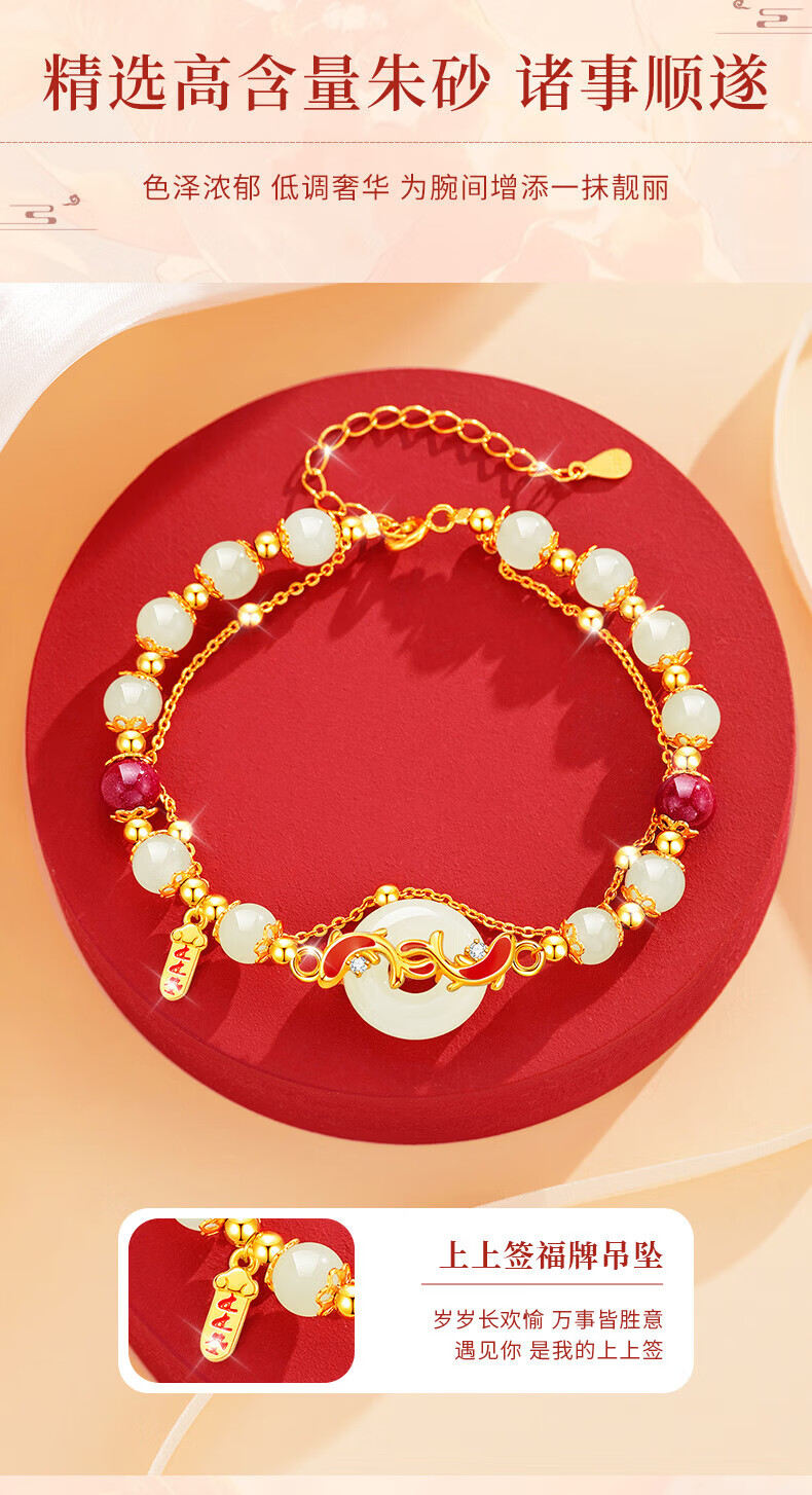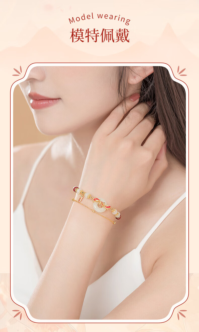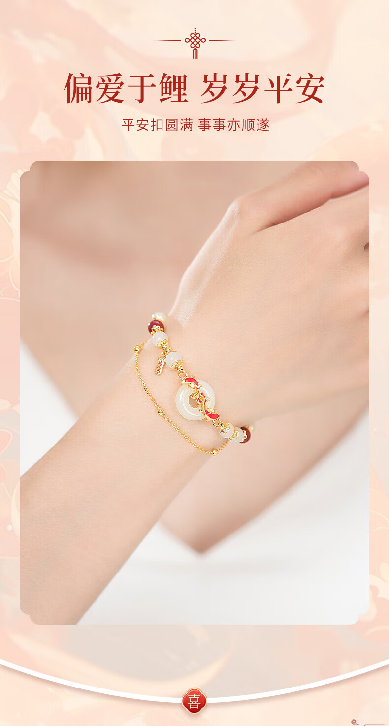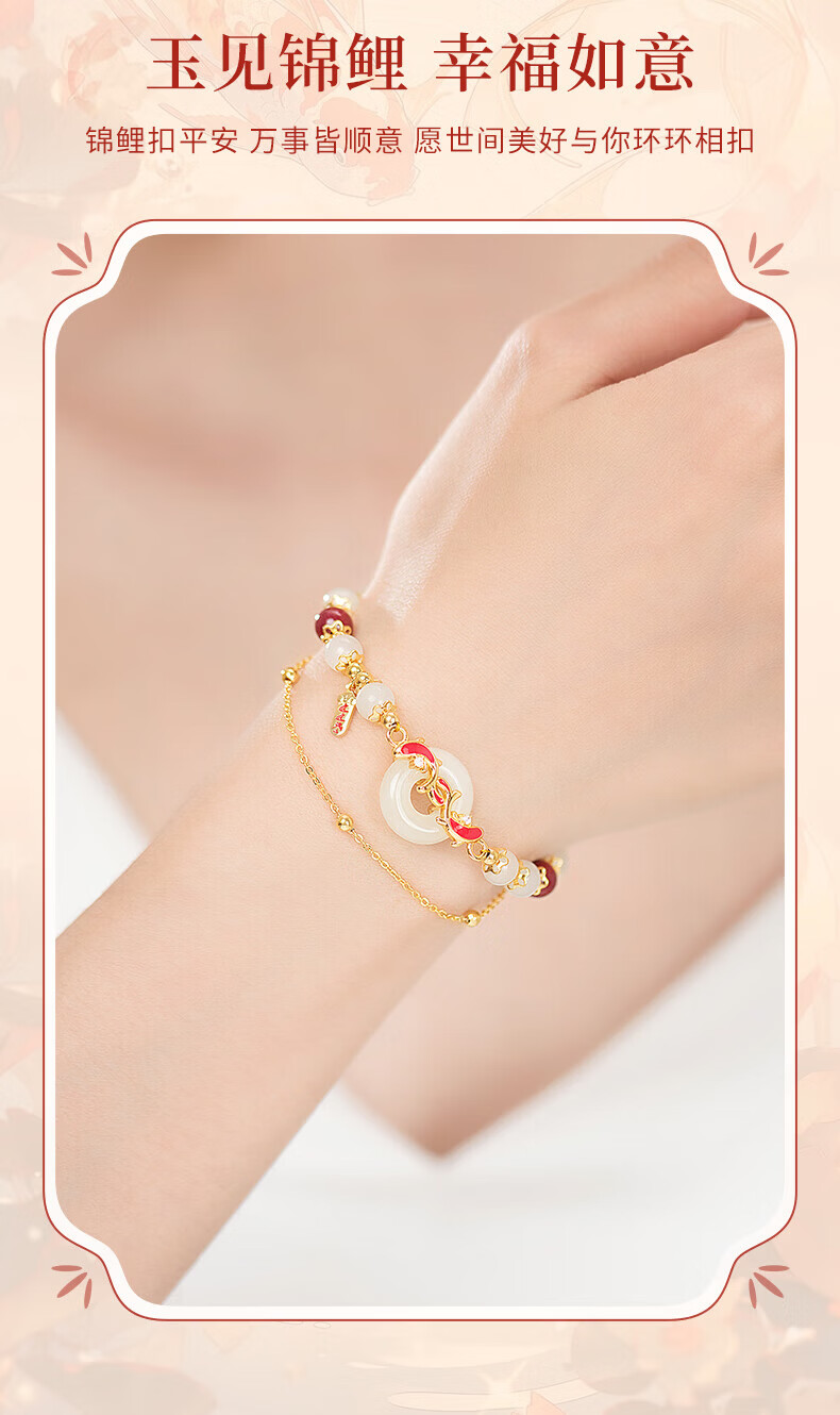 洛希曼和田玉手链女锦鲤平安扣手串生日礼物送女朋友老婆【免费刻字】 豪华礼盒+锦鲤平安扣手链
