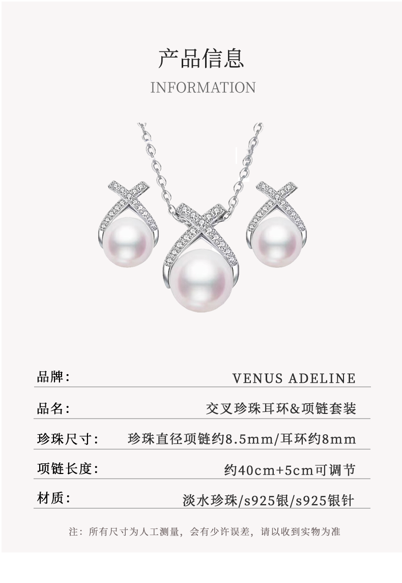 VENUS ADELINE淡水珍珠项链套装银单颗吊坠气质年轻妈妈锁骨链女友生日七夕礼物 项链-情人节生日礼物送女友老婆 银项链送长辈实用浪漫纪念日礼盒