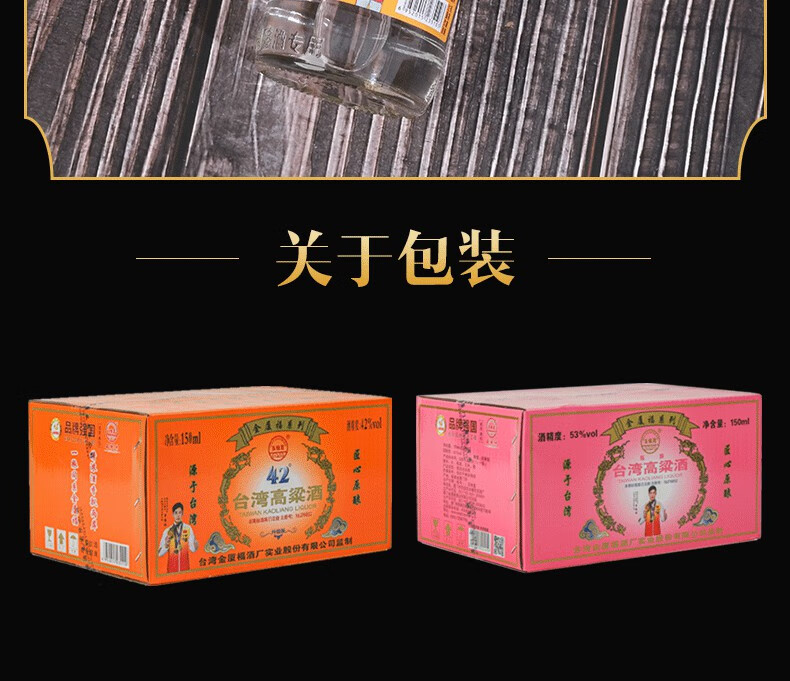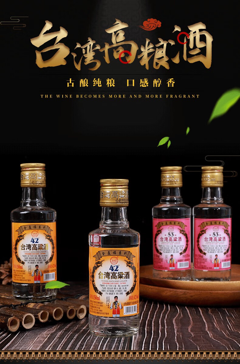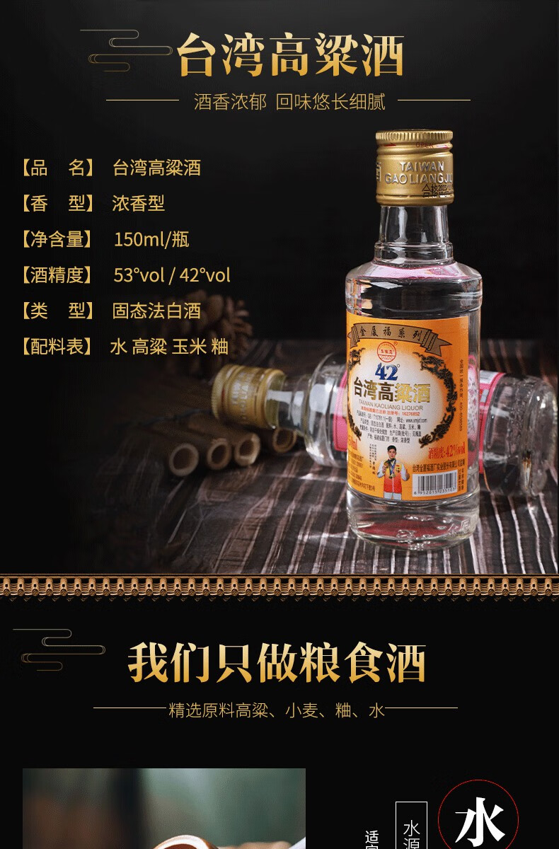 五缘湾正宗台湾高粱酒42度150ml 浓香型白酒小瓶装纯粮食固态发酵口粮酒 42度 150mL 6瓶
