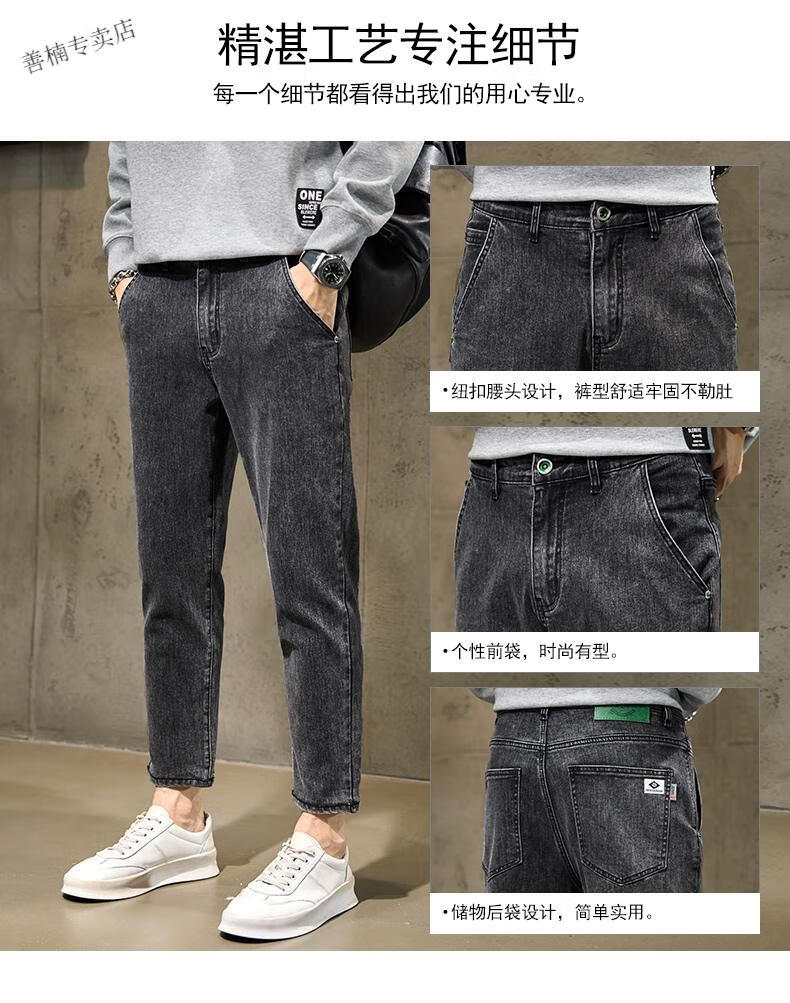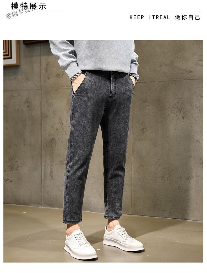 Lee dprre九分牛仔裤男款春秋烟灰色潮牌直筒小脚秋季矮小个子9分八分男裤 3907 雪花灰 28 腰围2尺1