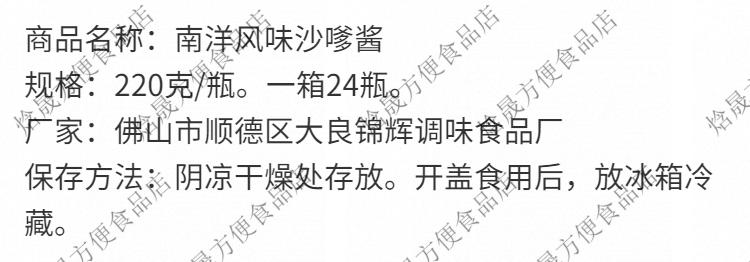 可局南洋风味沙爹酱220g锦辉星火沙嗲酱牛肉砂锅火锅调味酱料 一瓶