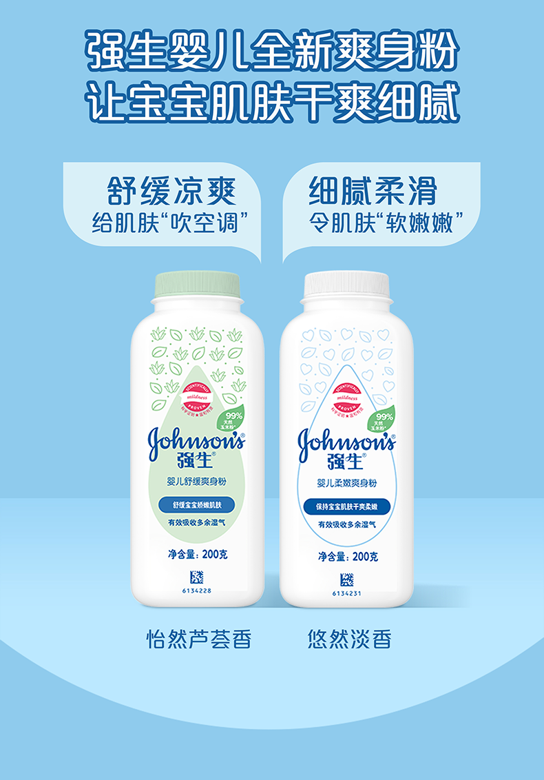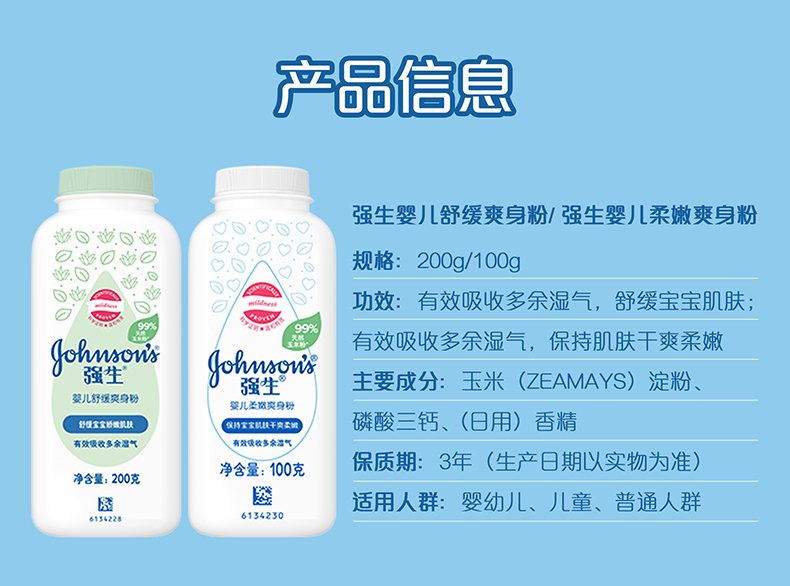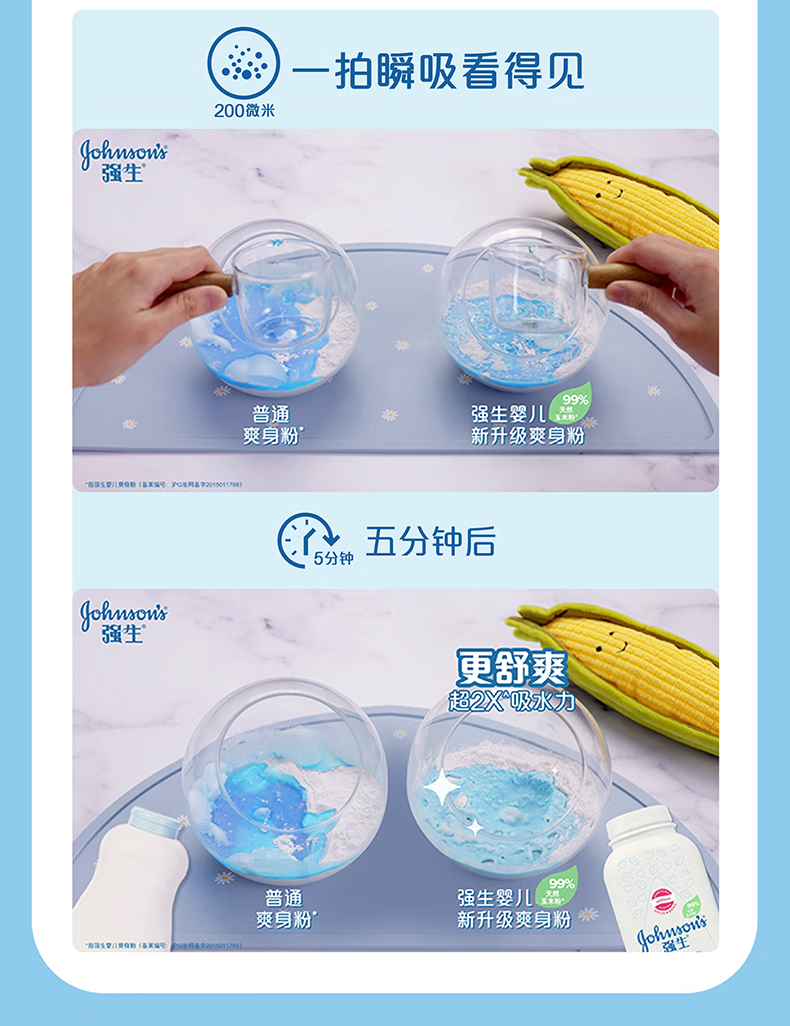 强生婴儿爽身粉新生儿儿童宝宝屁屁痱子吸汗舒缓柔嫩玉米粉干爽 柔嫩爽身粉200g