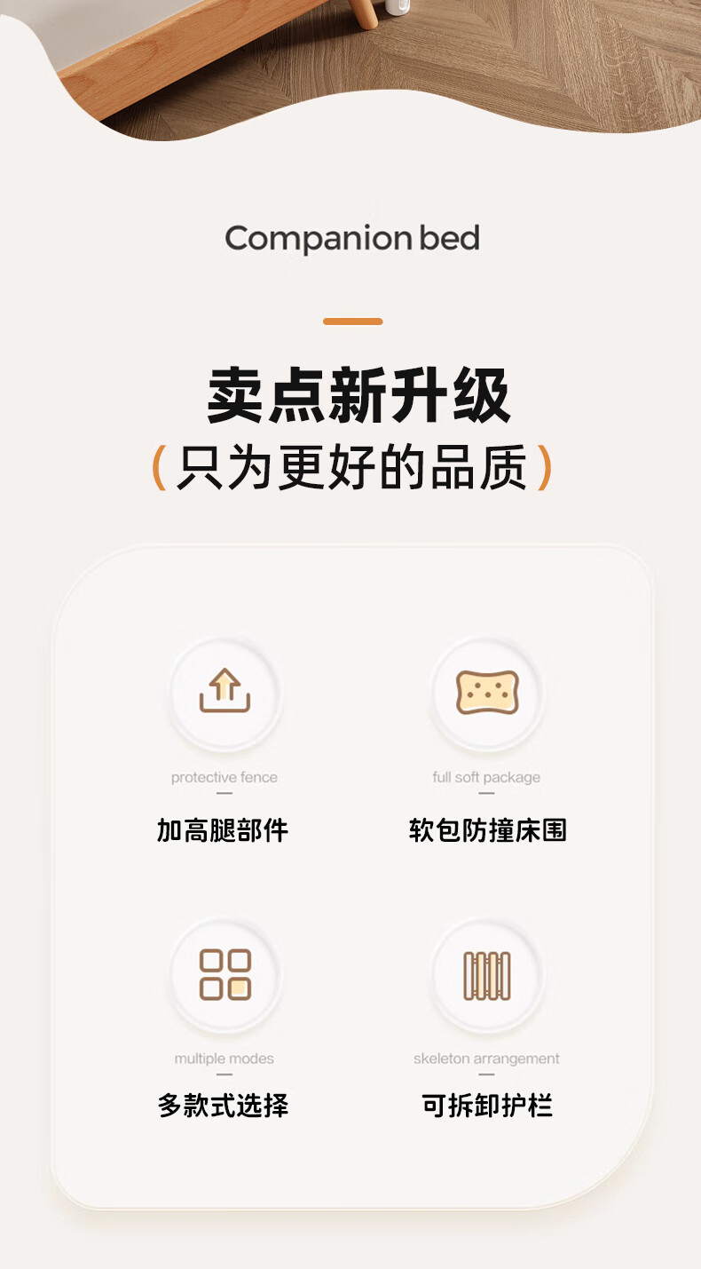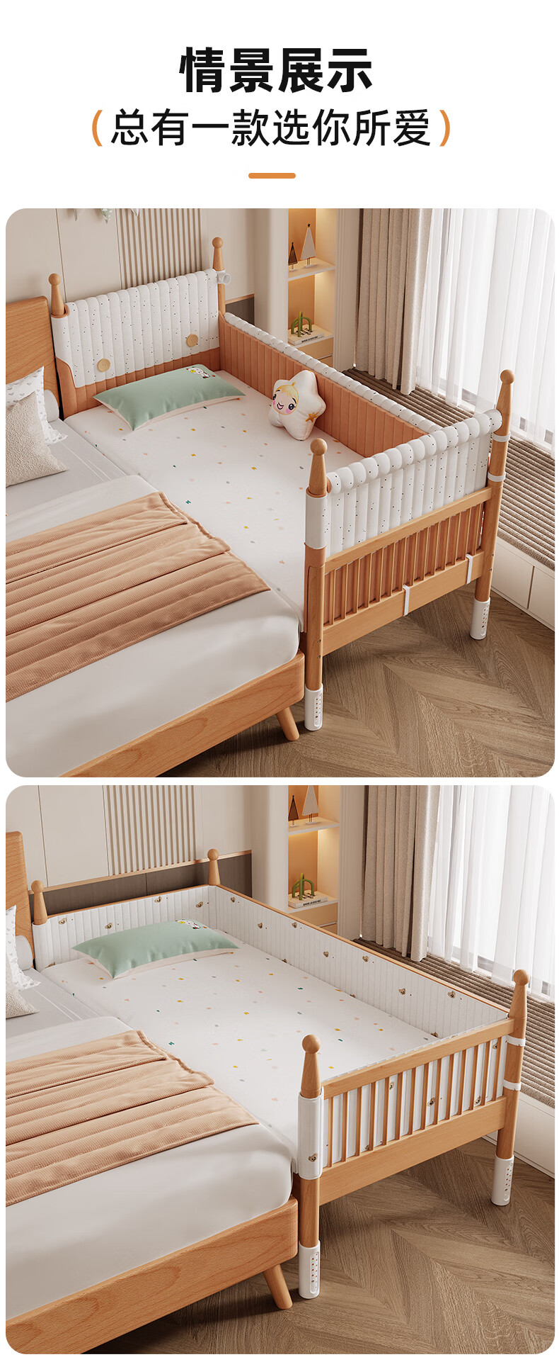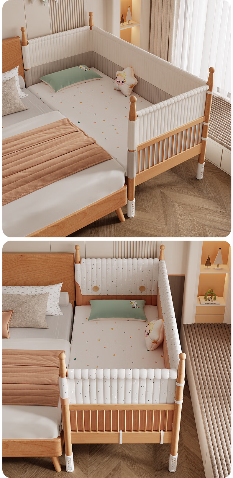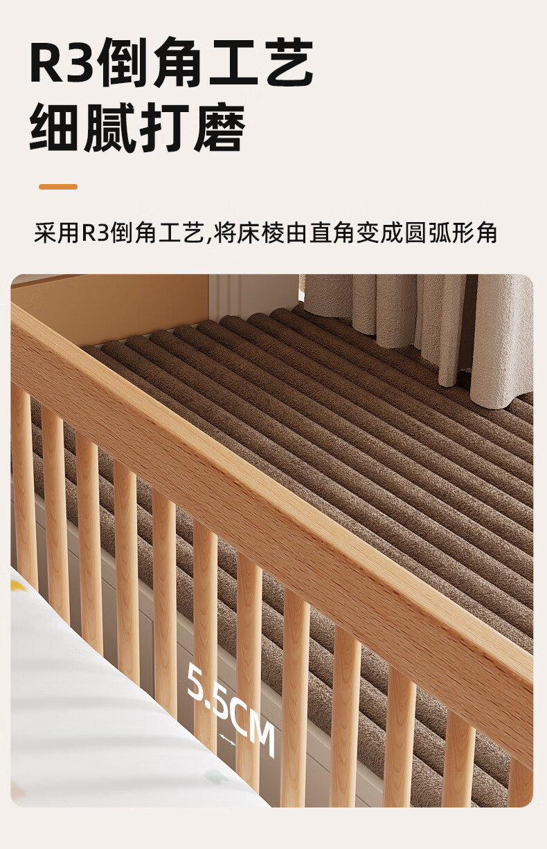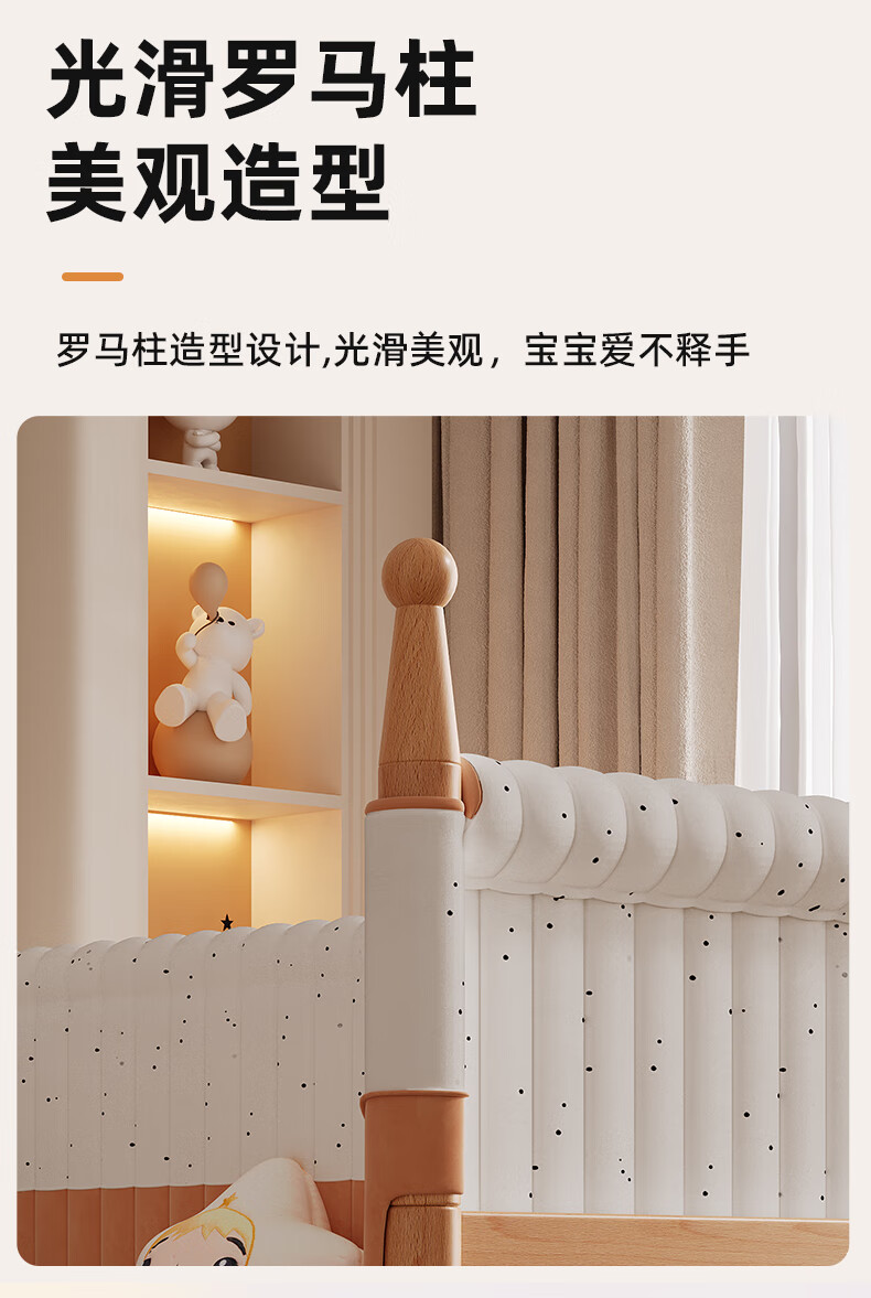 枫眠榉木婴儿拼接床实木加高带护栏加宽床大人可睡小床宝宝儿童床 床+牛油果绿床围+6cm椰棕乳胶垫 180x80cm