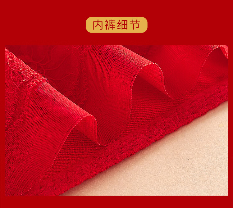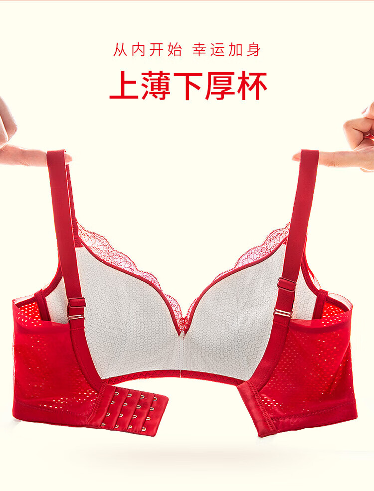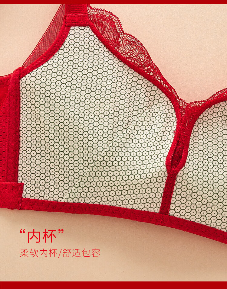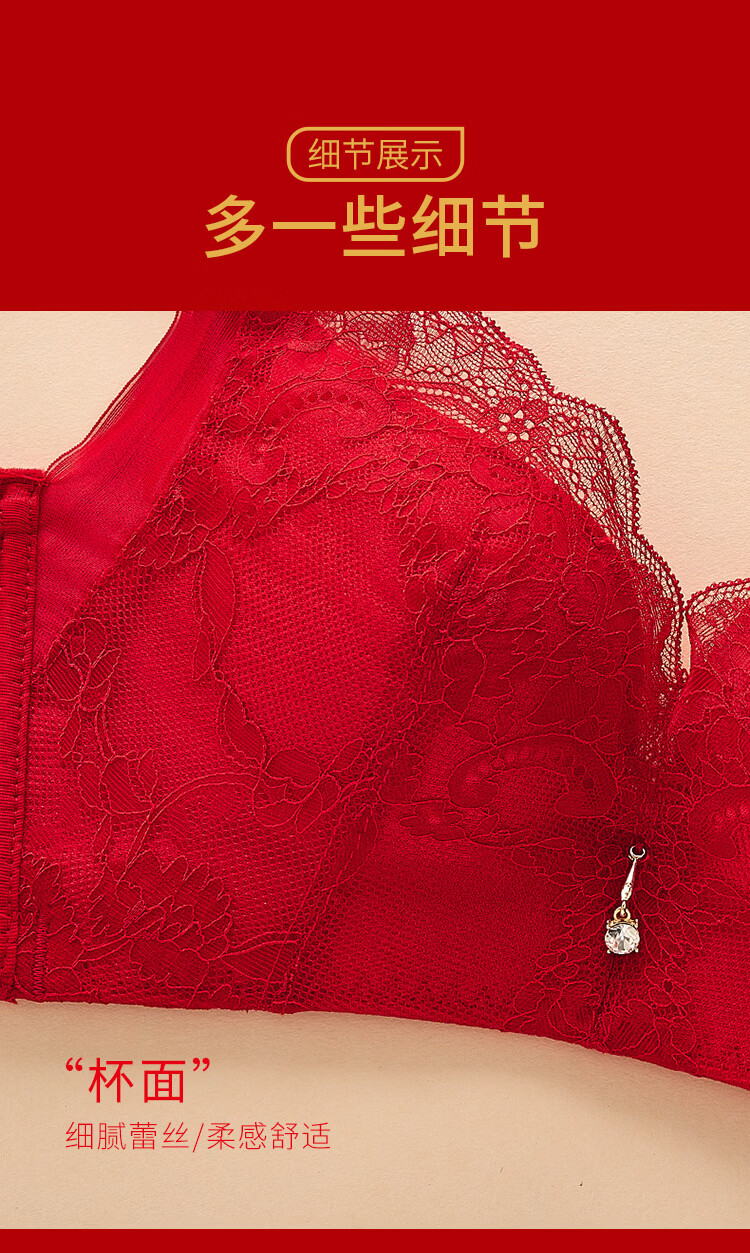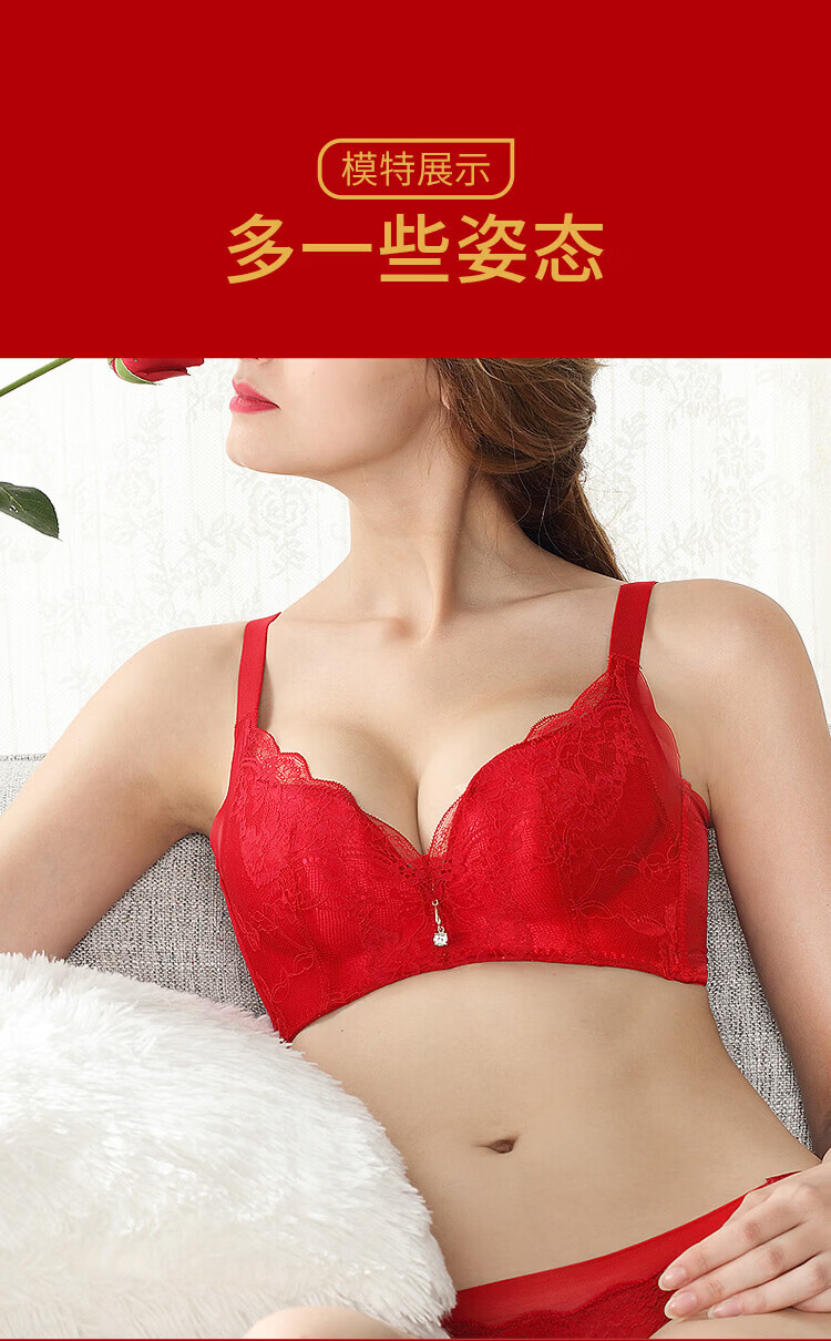 千奈美蕾丝上薄下厚聚拢文胸套装喜庆本命年结婚内衣内裤 大红色套装 80B 配内裤