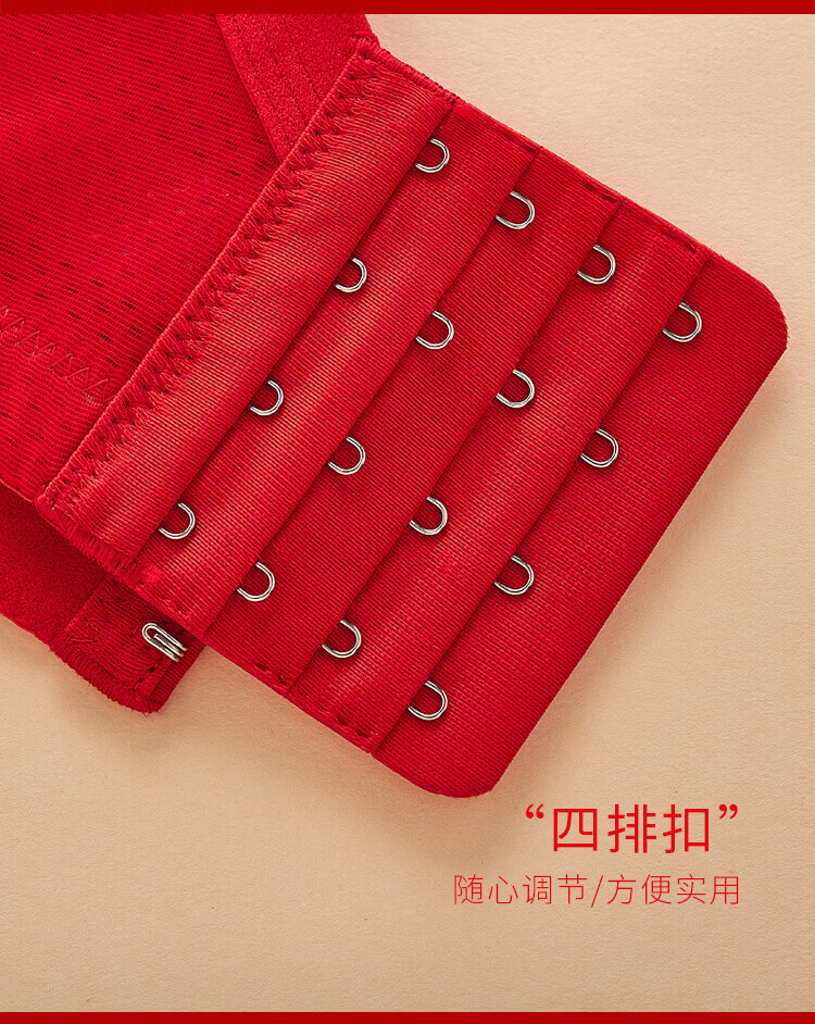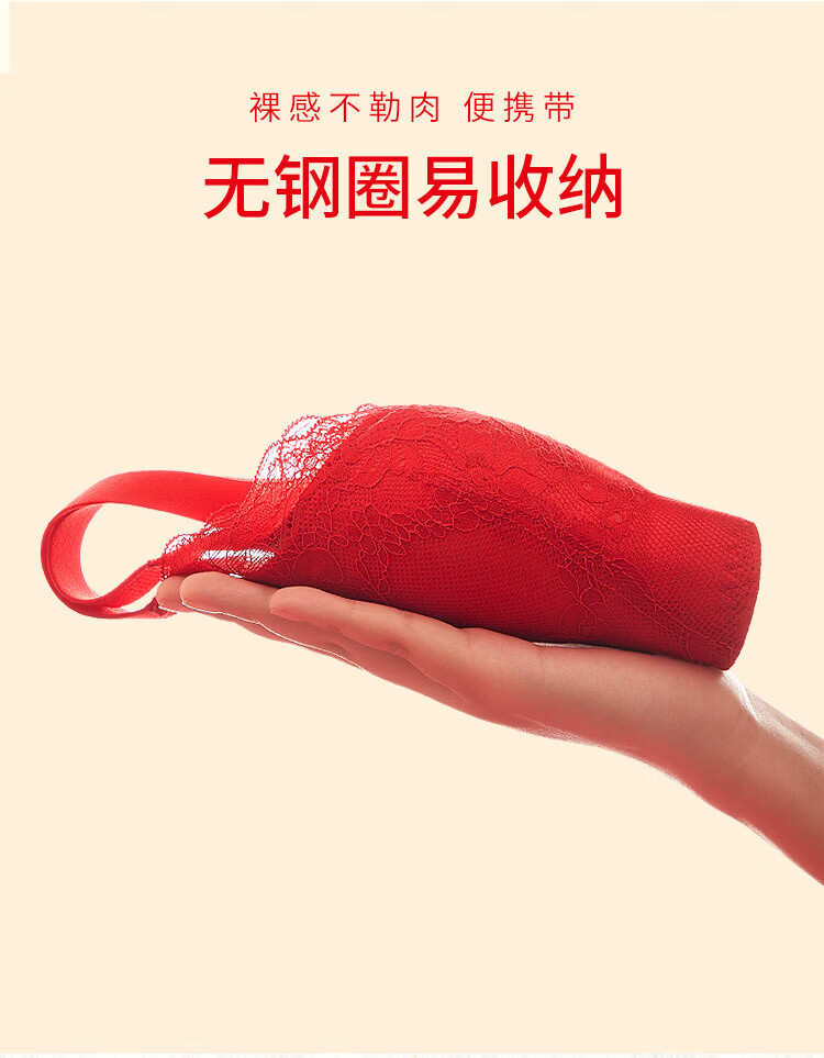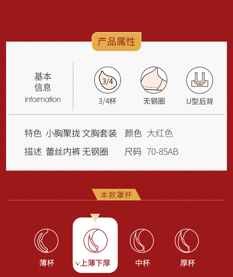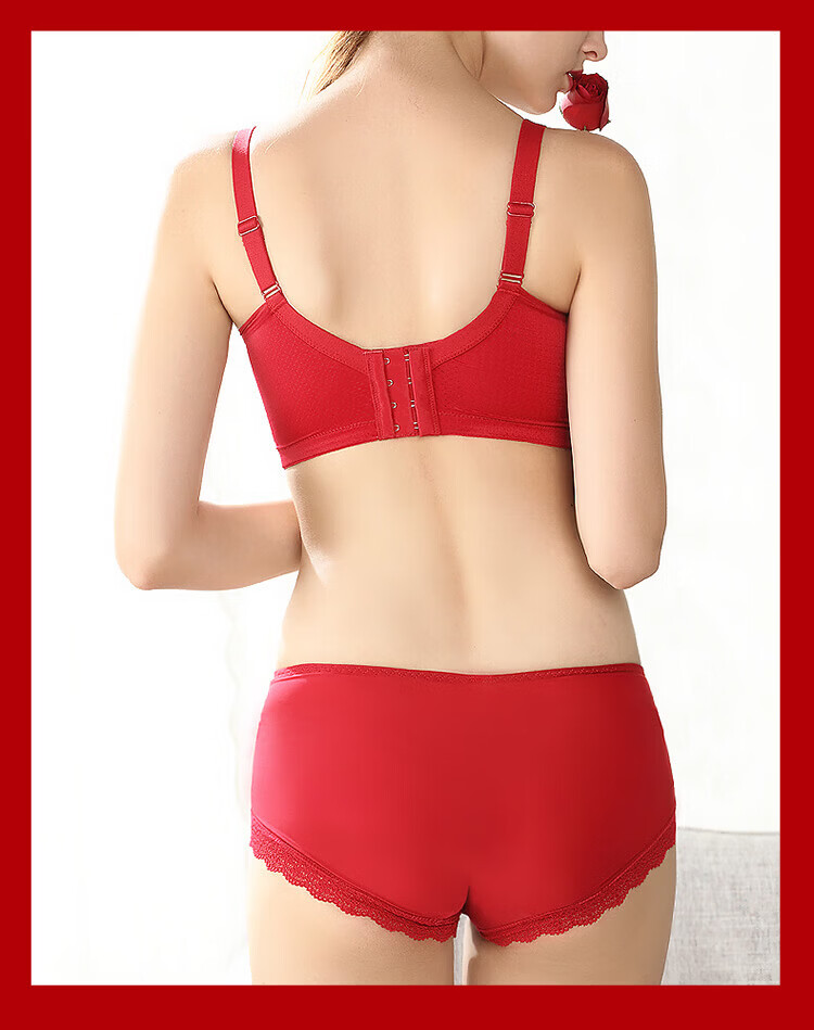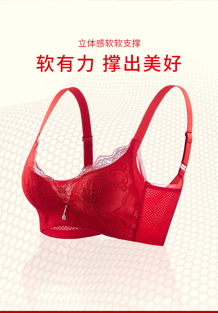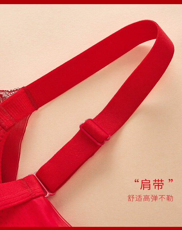 千奈美蕾丝上薄下厚聚拢文胸套装喜庆本命年结婚内衣内裤 大红色套装 80B 配内裤