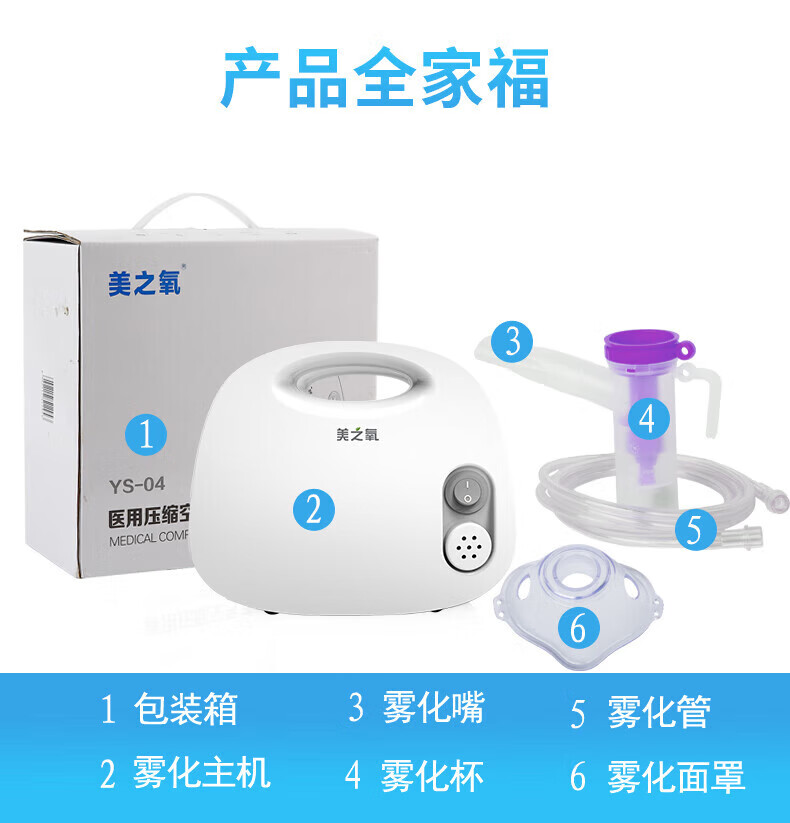 【720天换新险】美之氧雾化器 雾化机 儿童成人家用 医用压缩雾化器 空气压缩式雾化仪面罩 YS-04 灰色