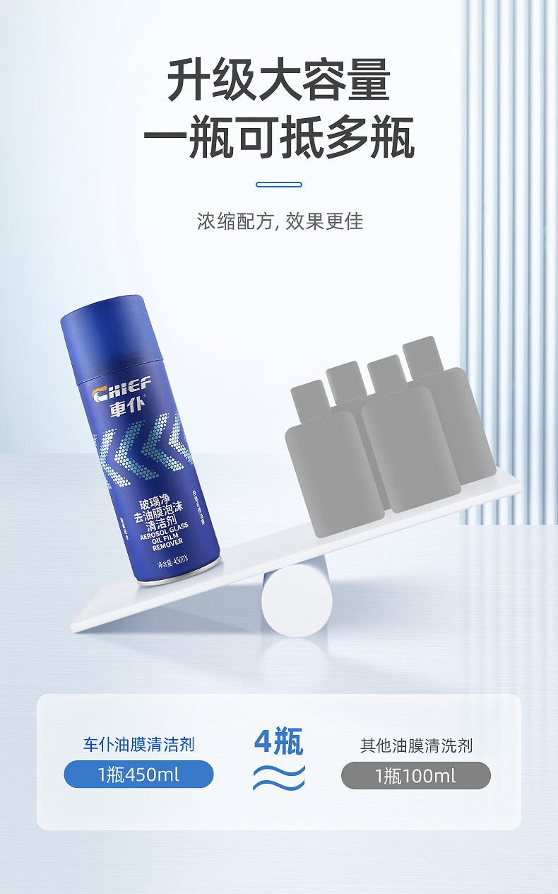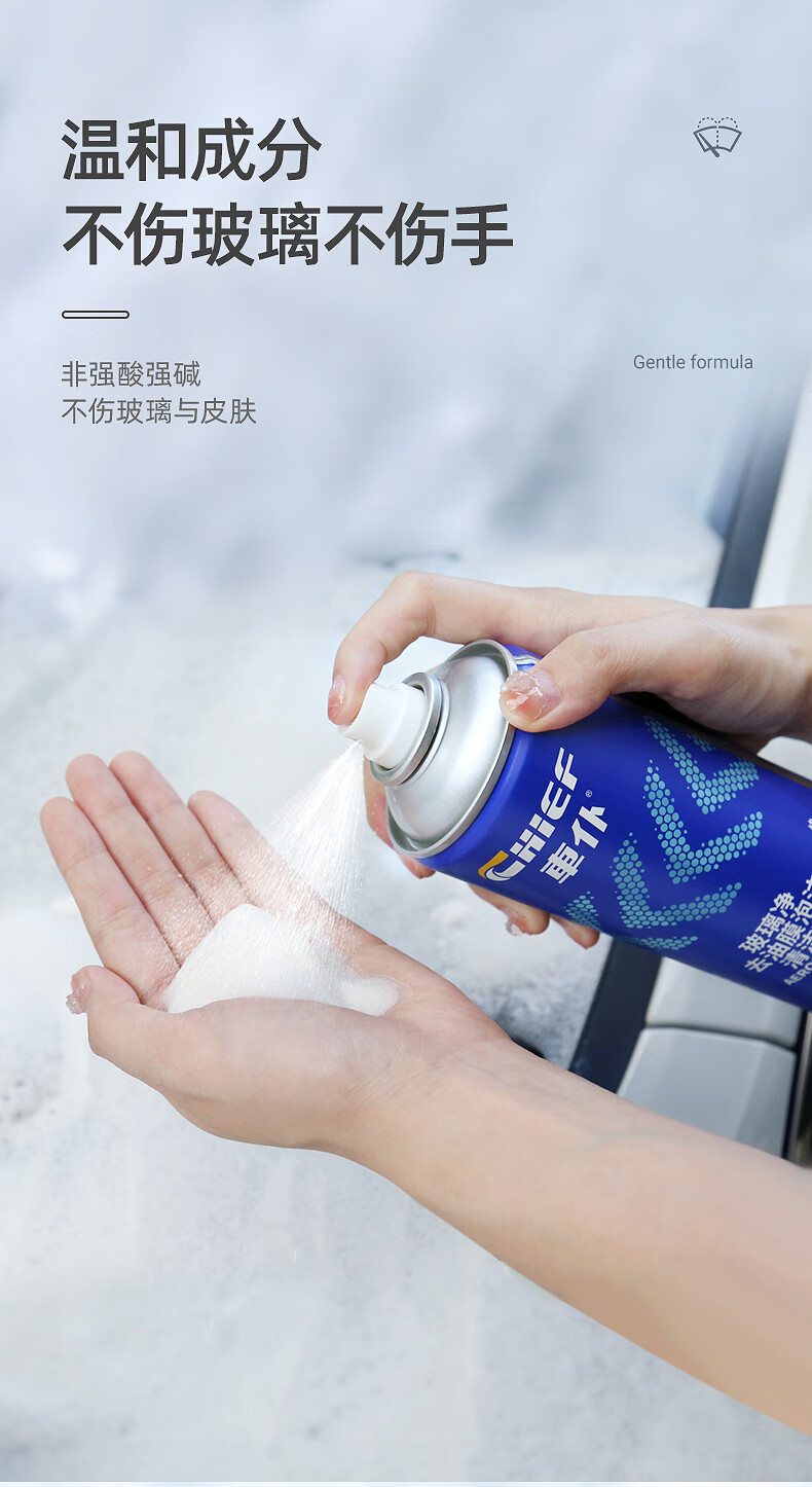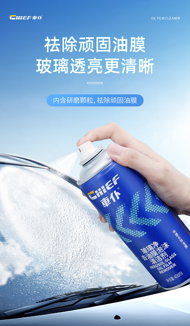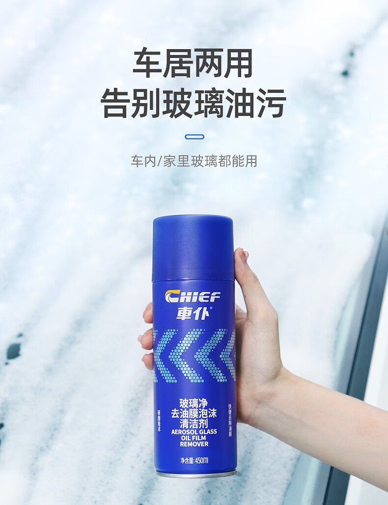 車仆(CHIEF)车仆玻璃净去油膜泡沫清洁剂前挡风玻璃去油膜汽车用品小汽车专用 油膜清洁剂450ml【送毛巾+海绵】