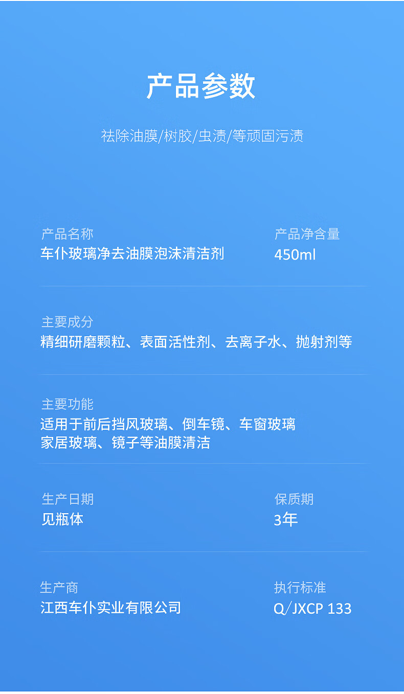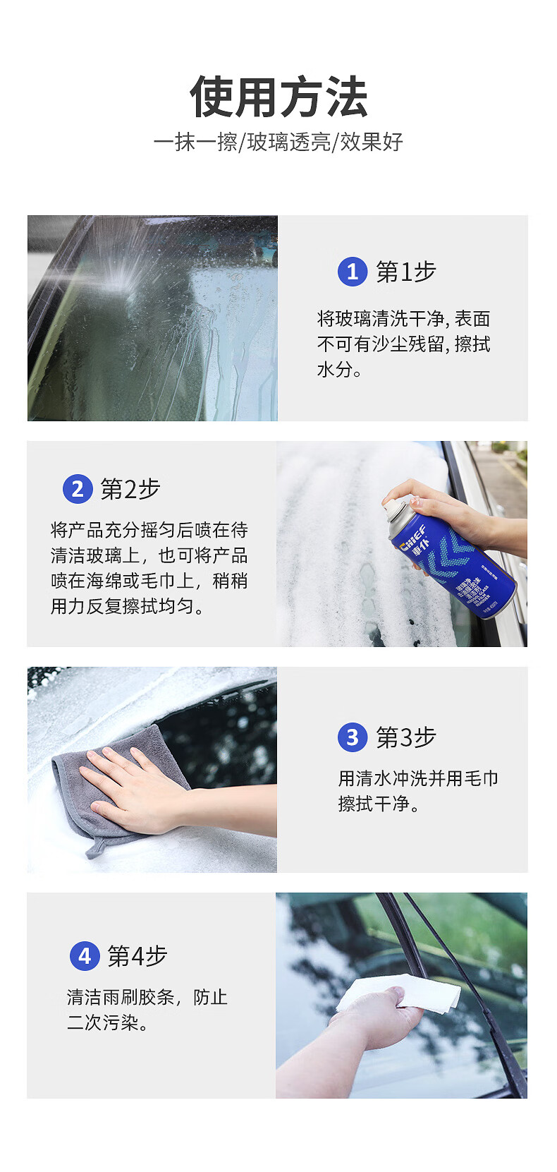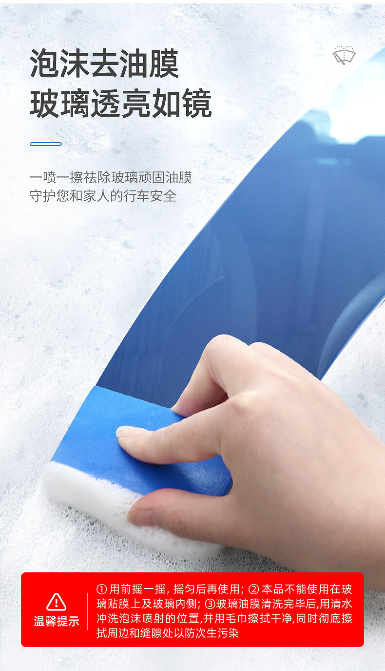車仆(CHIEF)车仆玻璃净去油膜泡沫清洁剂前挡风玻璃去油膜汽车用品小汽车专用 油膜清洁剂450ml【送毛巾+海绵】