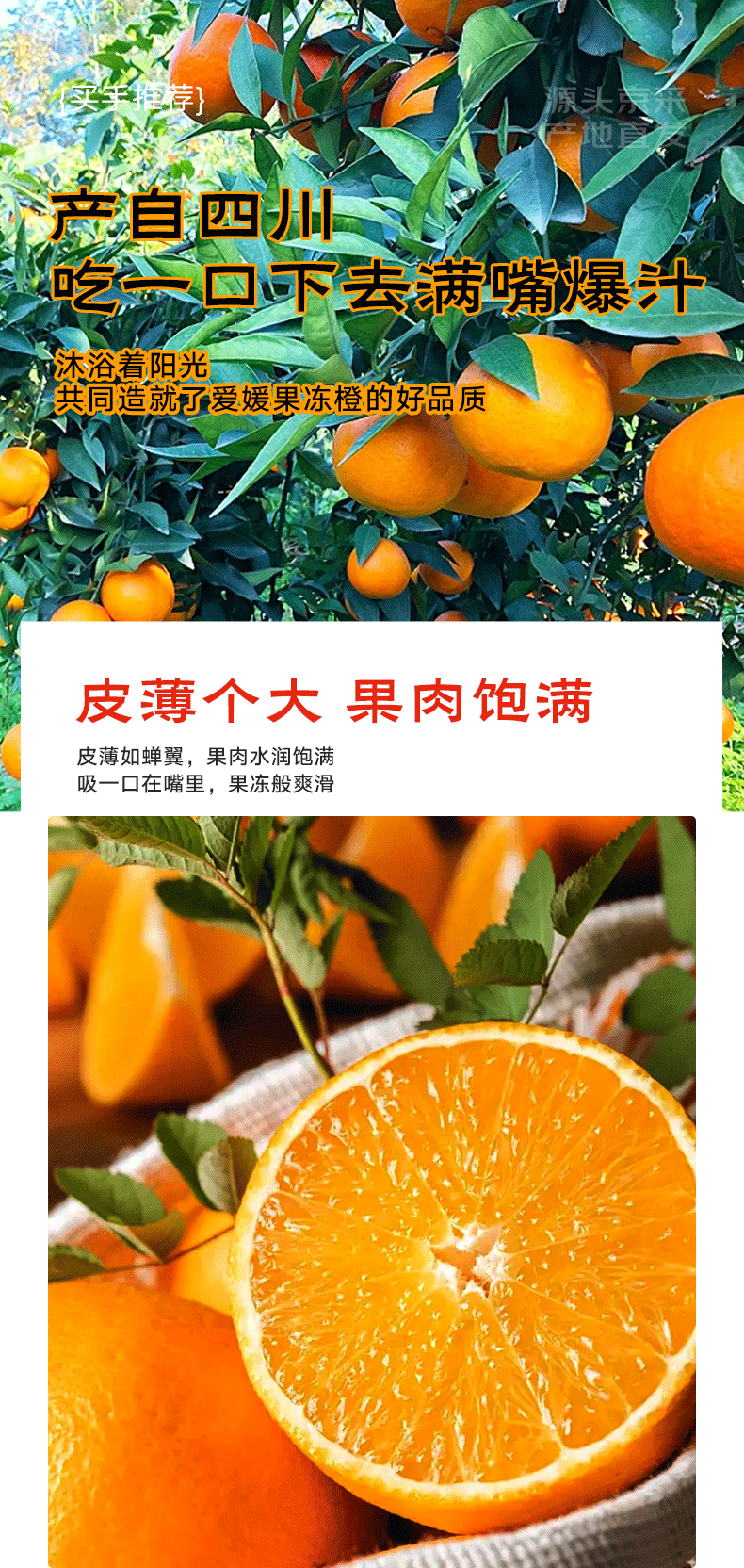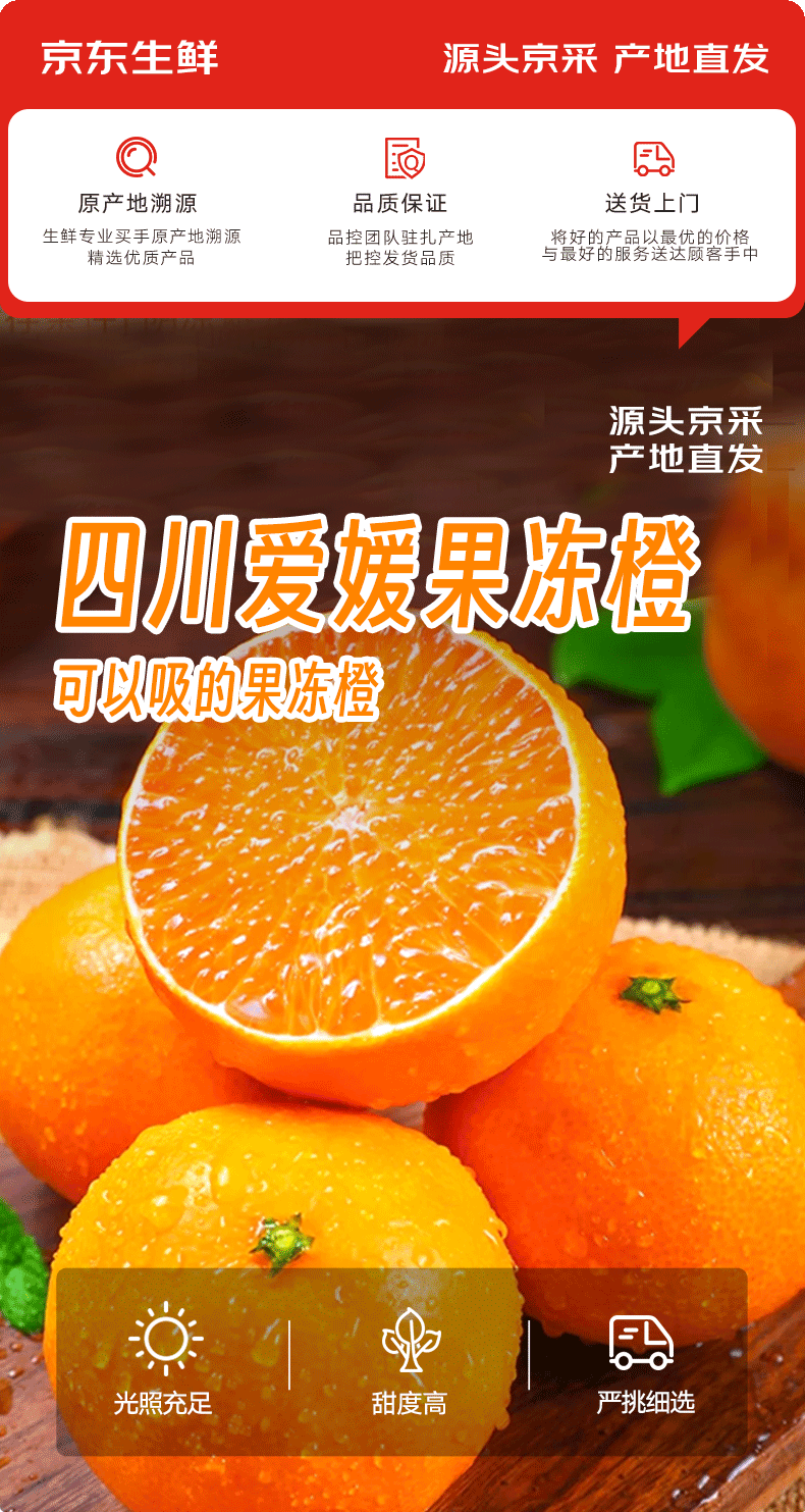 京鲜生 四川爱媛果冻橙 净重4.5-5斤 单果140g+ 生鲜水果 源头直发包邮