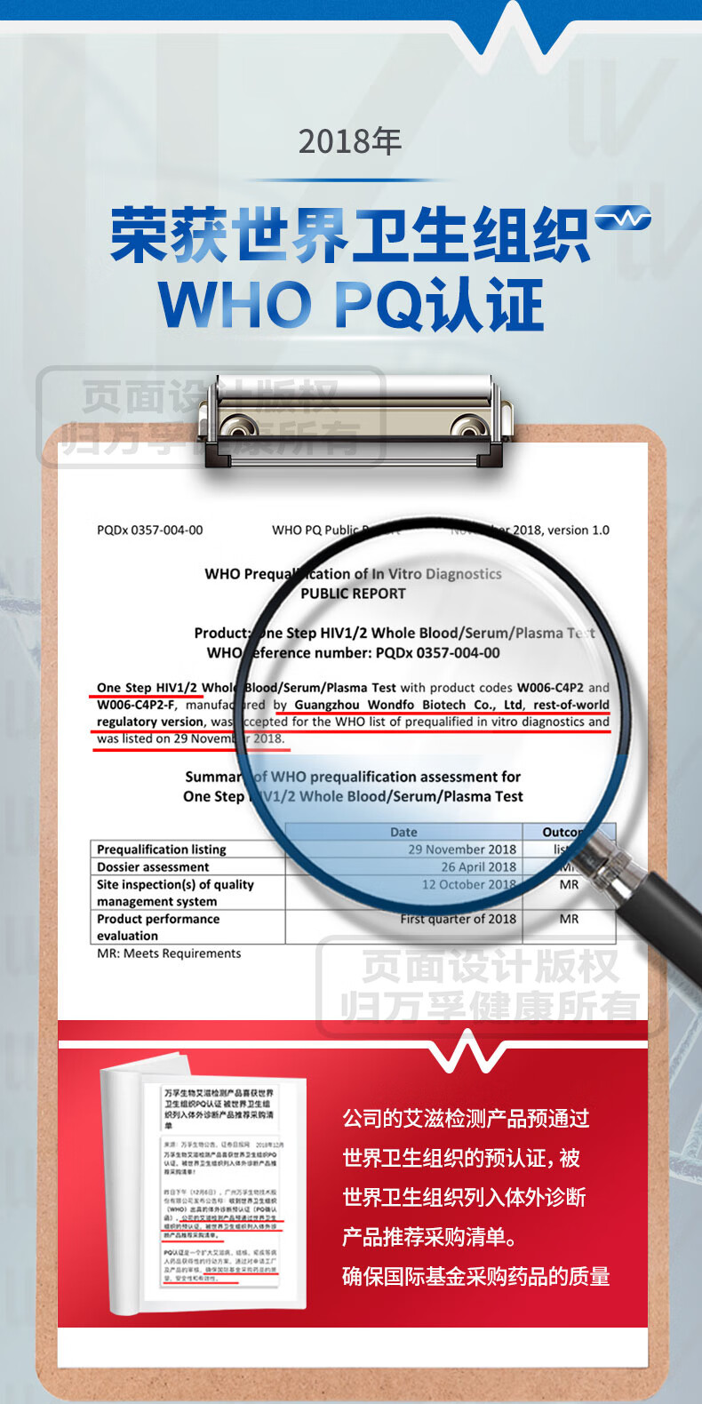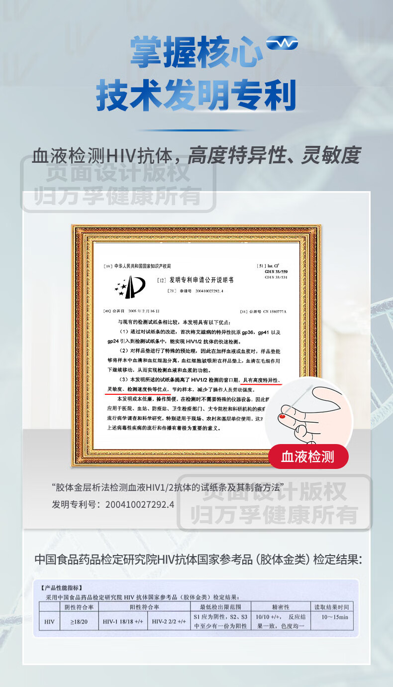 万孚艾滋病检测试纸 HIV试纸 非四代 非梅毒 性病hiv检测艾滋检测