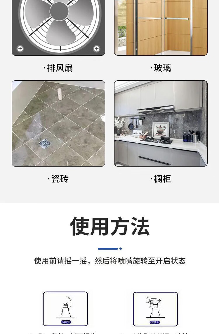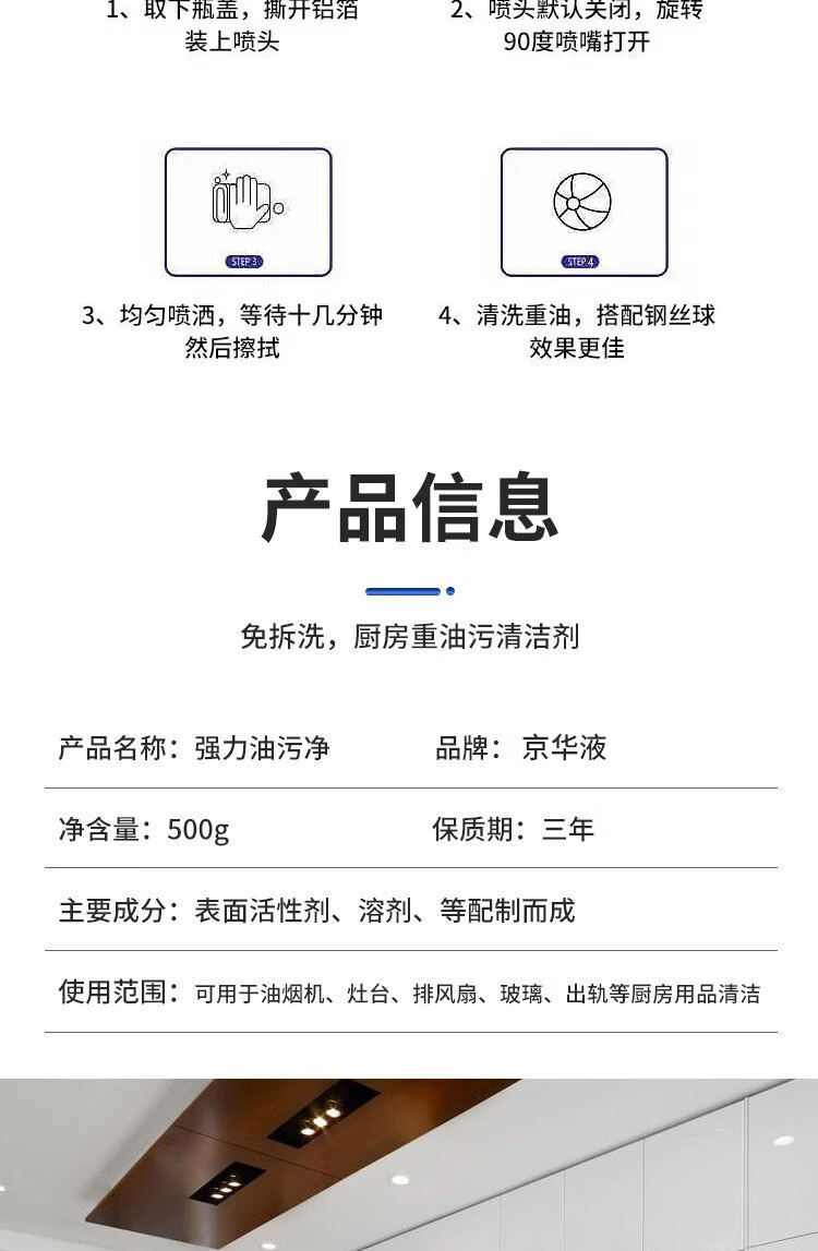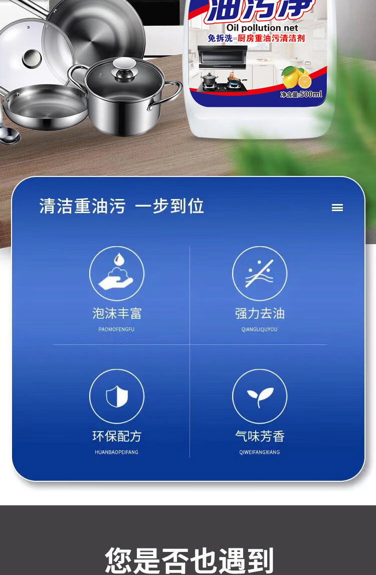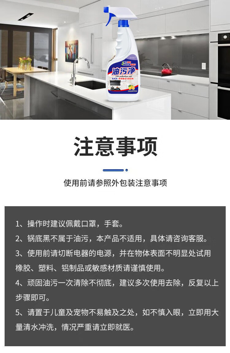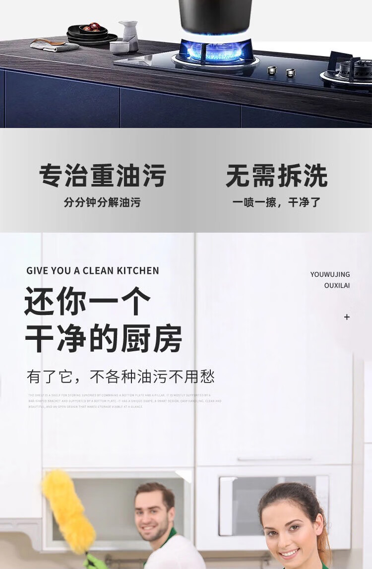 油污净强力去油污清洗剂家庭清洁免拆去污清洁剂多功能油烟净 油污净500ml*2瓶(1个喷头)