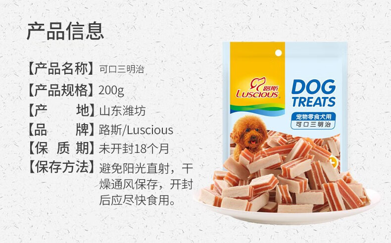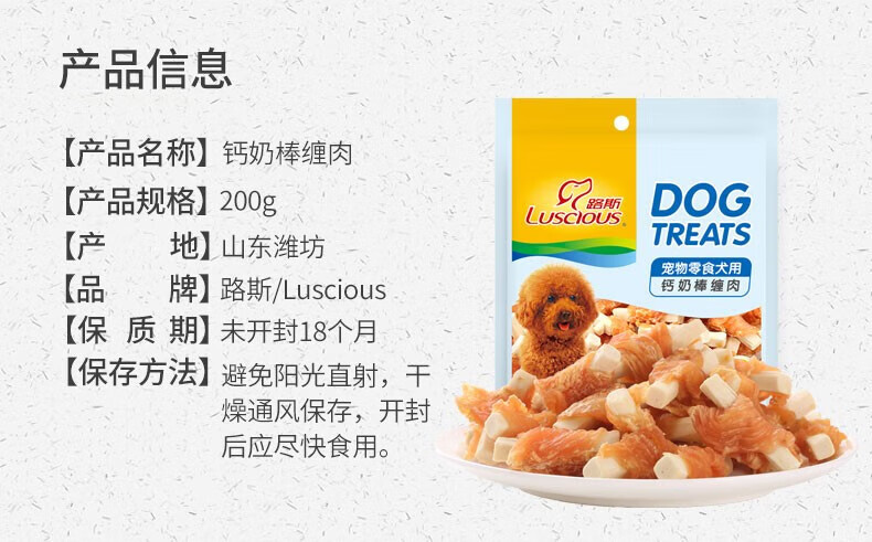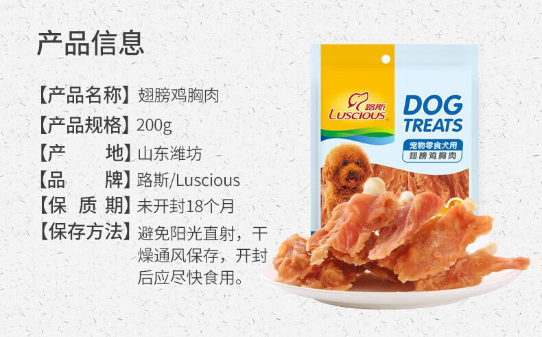 路斯狗狗零食鸡胸肉干肉条训练奖励磨牙零食优加鸡肉硬丝200g
