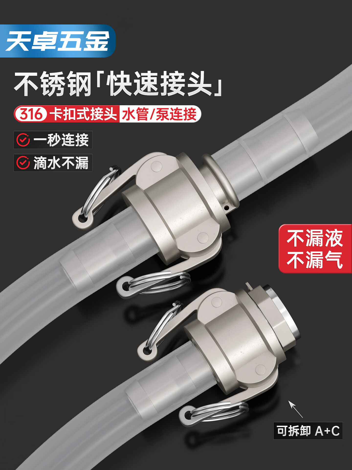 天卓五金316不锈钢快速接头卡扣式活接4/6分1/2/3寸水泵水管接头大全 A型 DN15/4分【1个】316