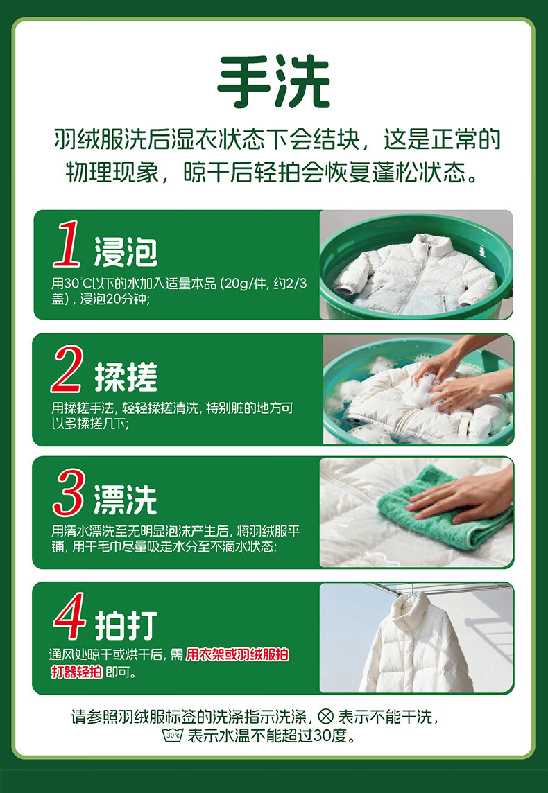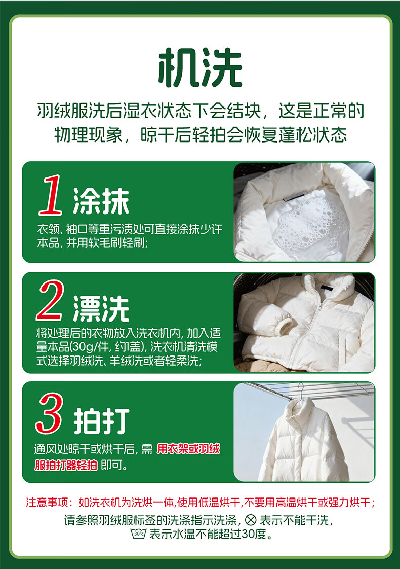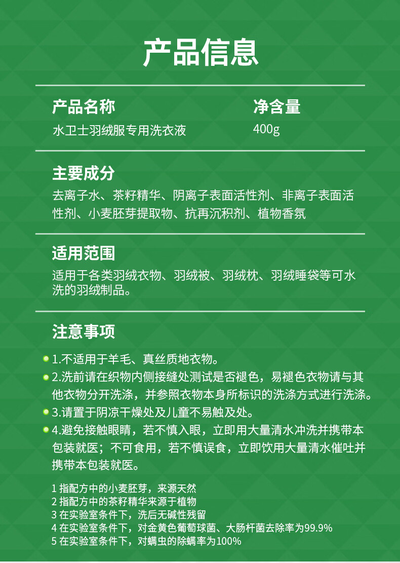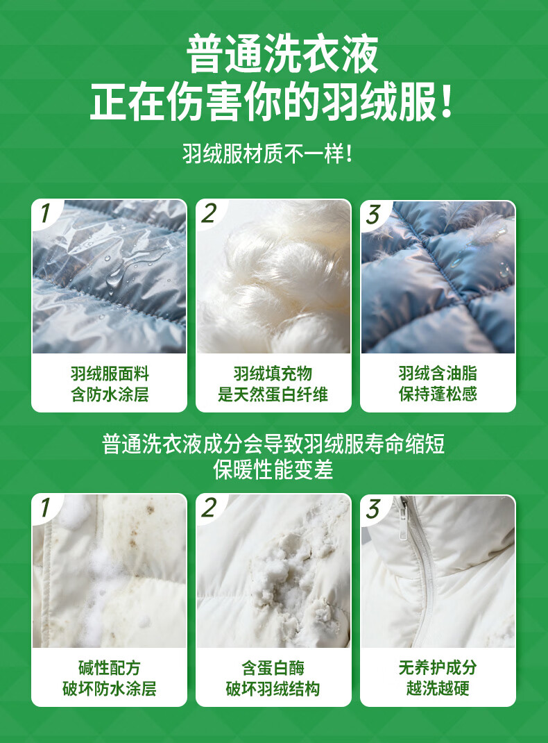 水卫士羽绒服专用洗衣液 机洗不伤羽绒服清洁去黄去污渍去油洗白 【去污护绒】2瓶*400g