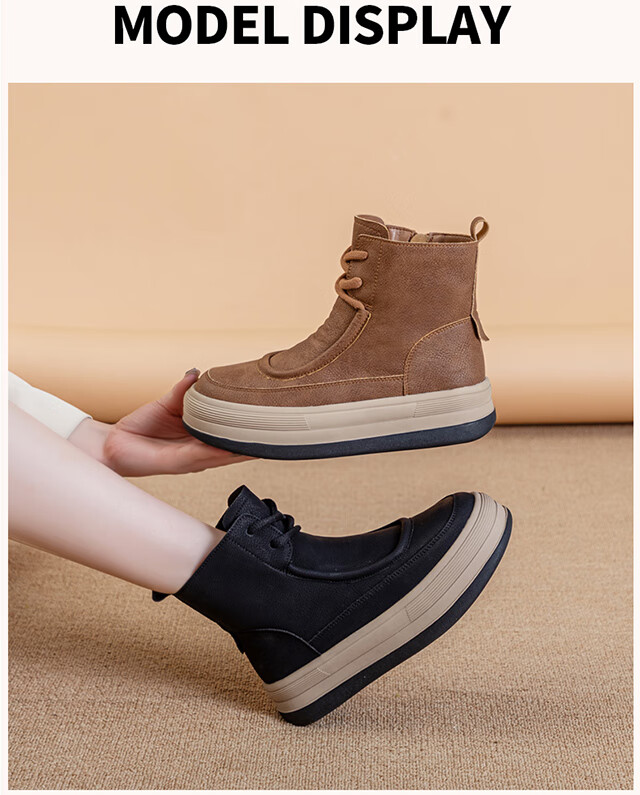 星期六厚底雪地靴女2025新款冬季加绒加厚面包鞋防滑短靴保暖棉鞋 咖啡色 【加绒保暖】 35