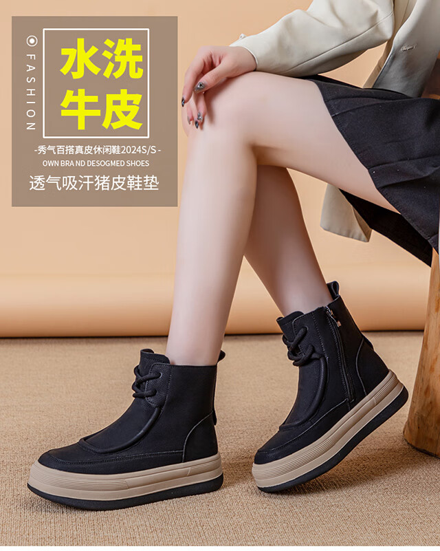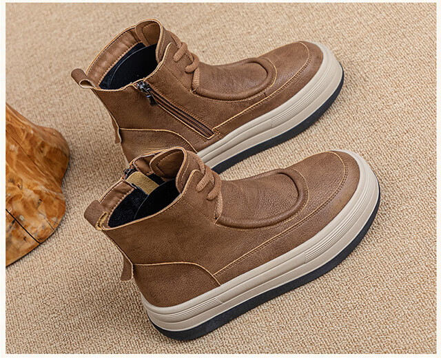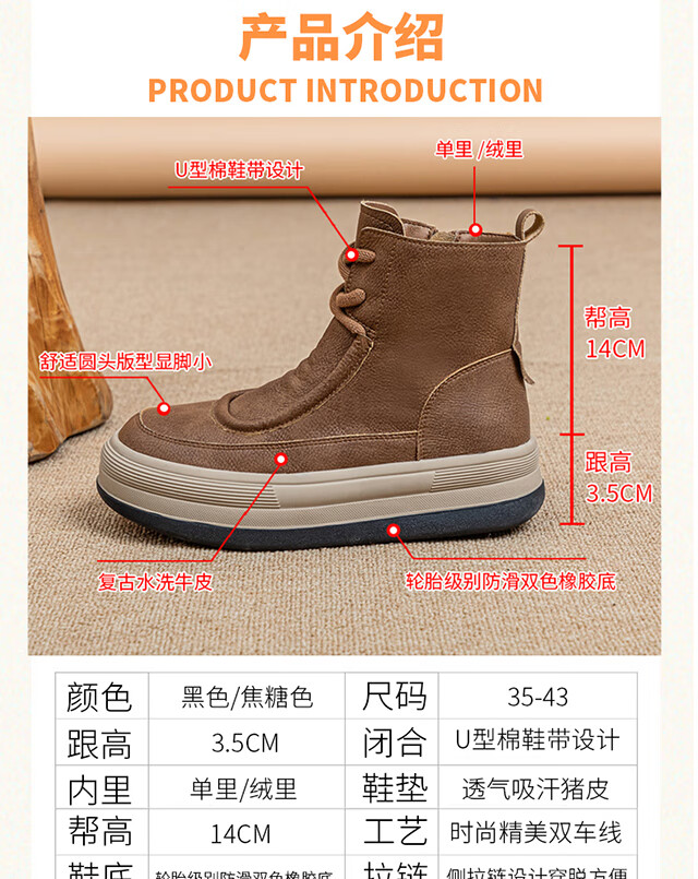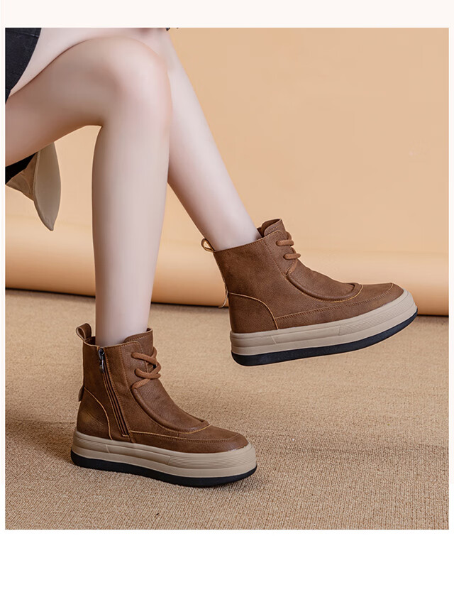 稻草人(MEXICAN)软皮马丁靴女款2026新款真皮复古大码靴子41到43秋冬加绒厚底短靴 棕色 单里1997 偏大半码 35