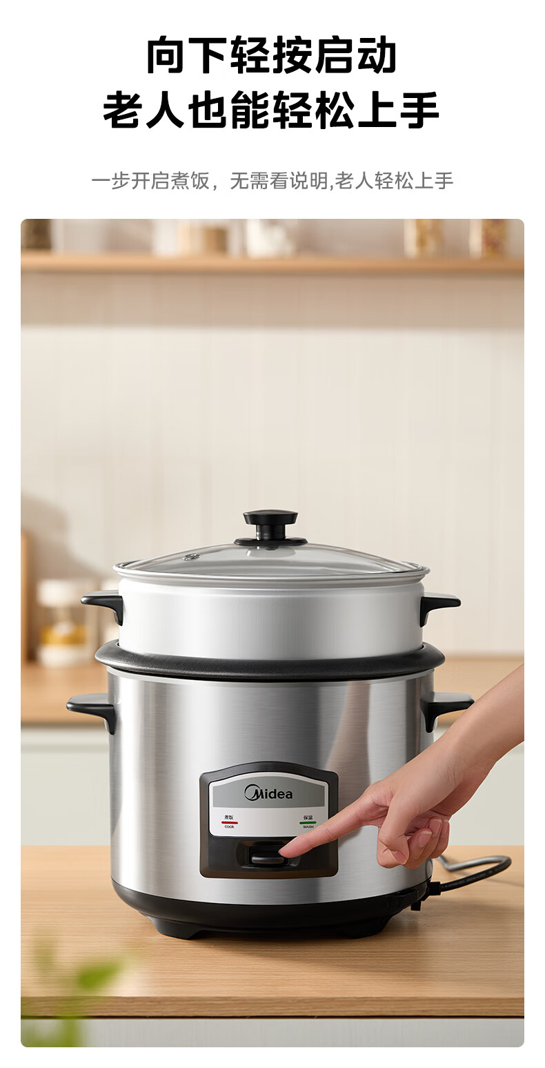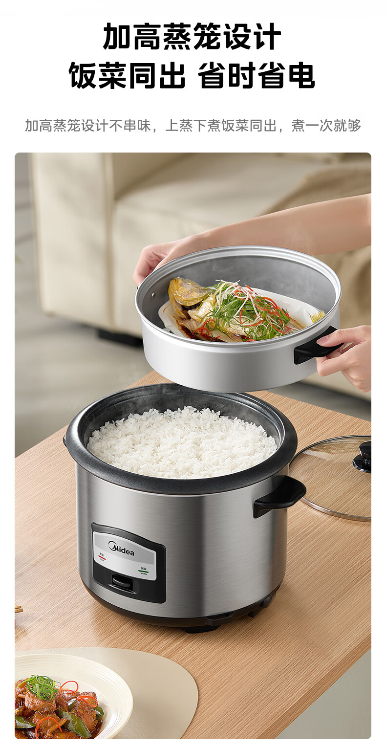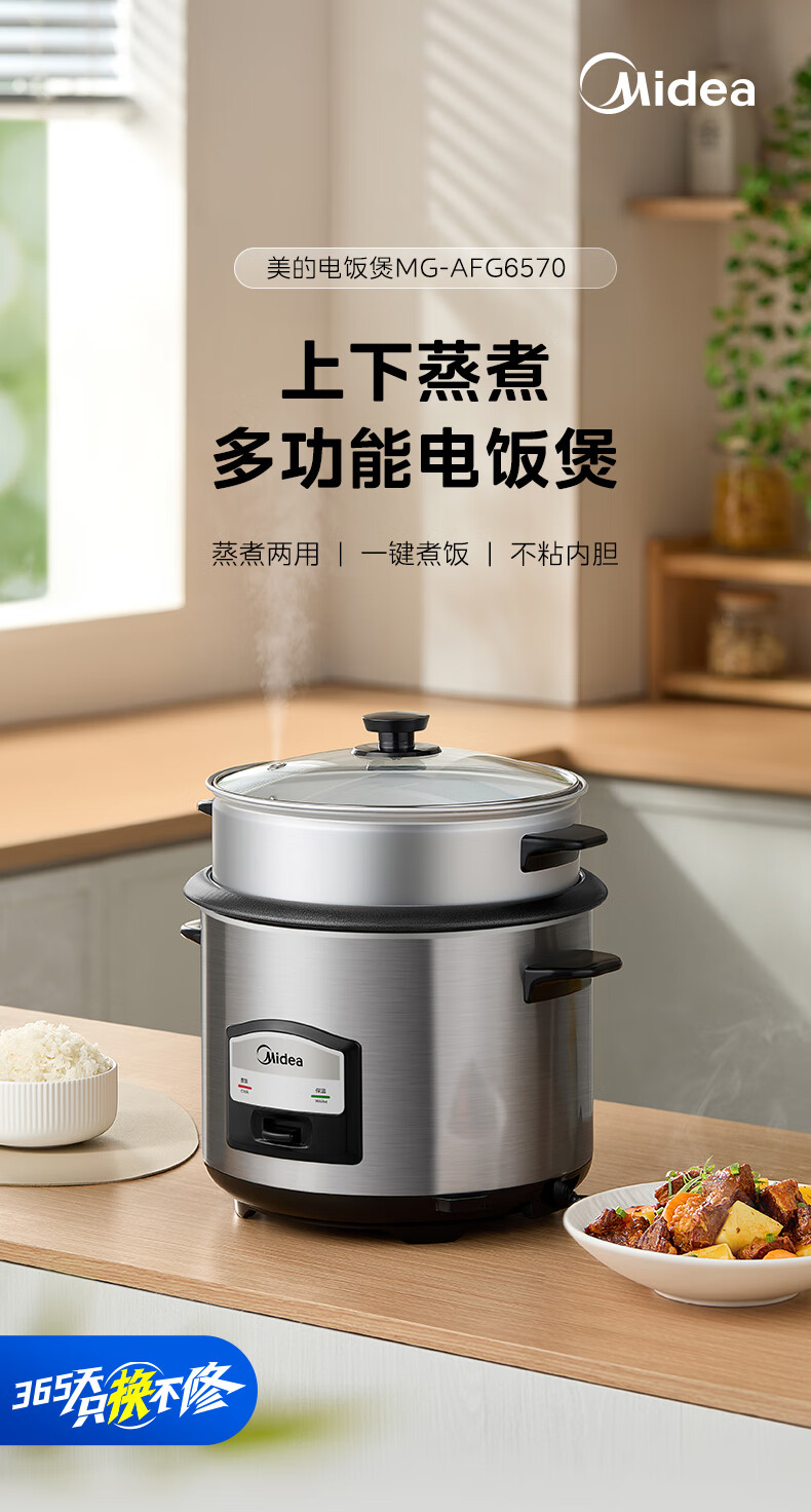 美的(Midea)电饭煲家用双层蒸煮多功能电饭锅小米粥煮粥煮饭锅带蒸笼老人用老式机械电饭煲4.5L MG-AFG4570 6.5L 【升级容量】适合6-10人