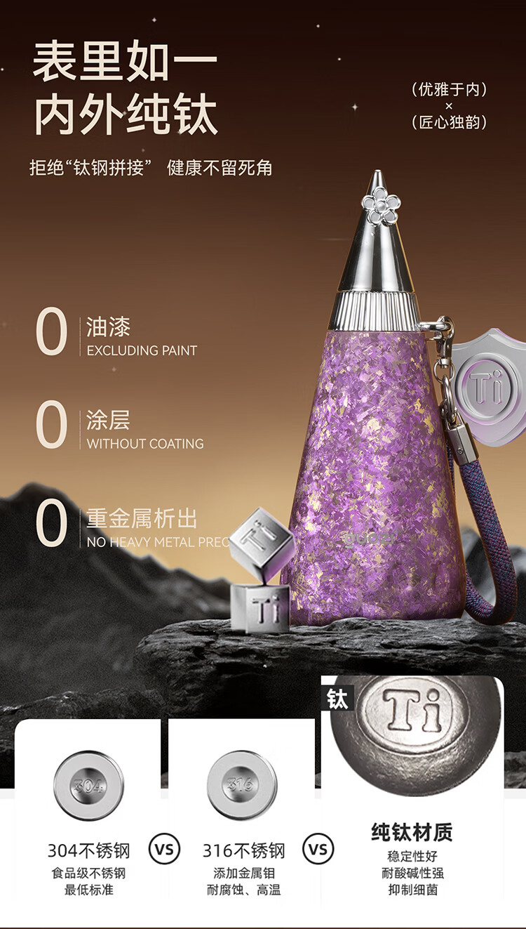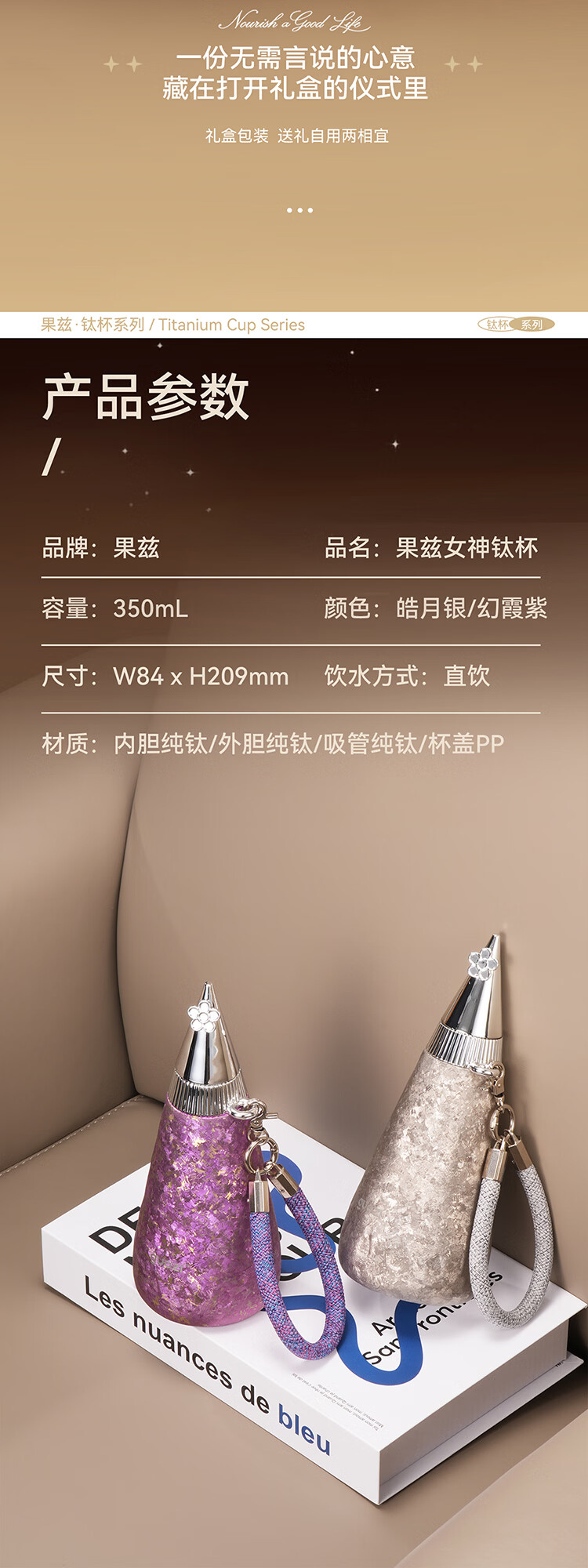 果兹(GUOZI)纯钛保温杯女款高颜值户外水杯送女朋友老婆生日三八女神钛杯礼物