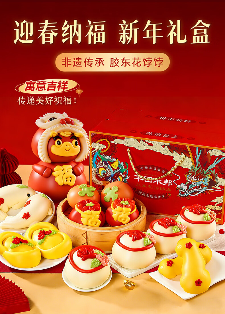 华田禾邦花饽饽馍馍迎春纳福马上有钱15件套馒头早餐年货礼盒春节也送货