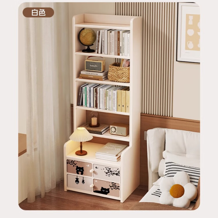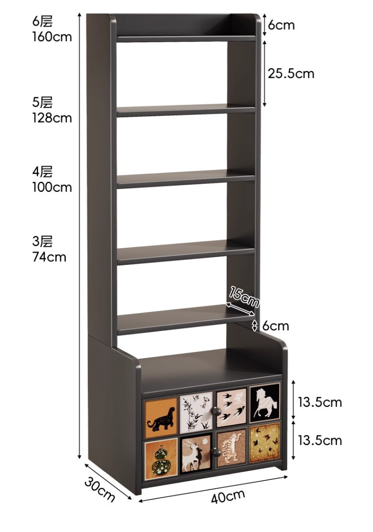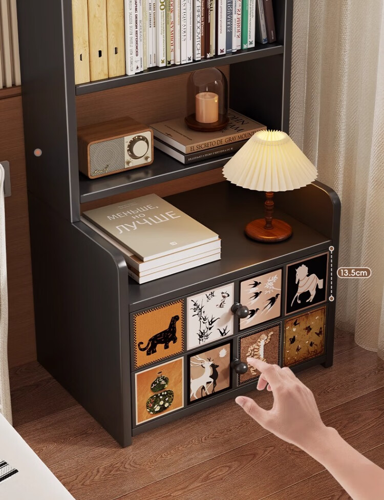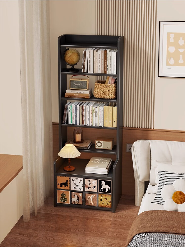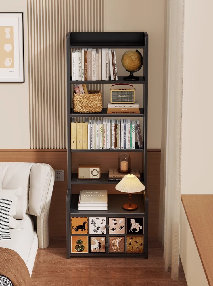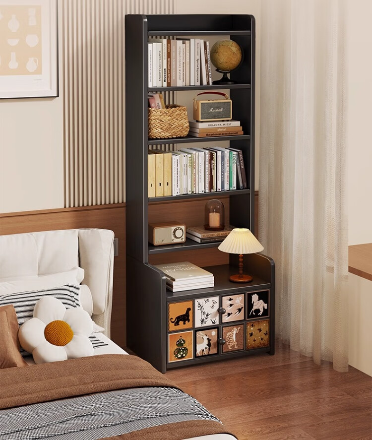 尔思家床头柜卧室2025新款轻奢高级感置物架家用收纳柜加高储物柜子书架 复古格韵 黑色【六层】