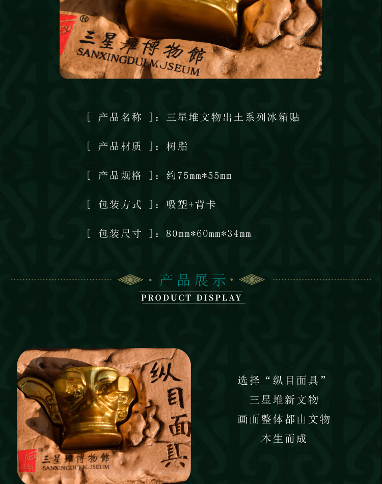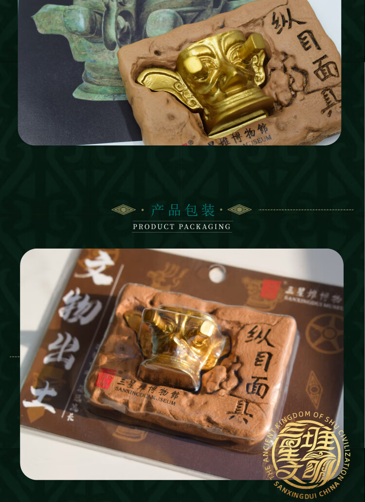 三星堆博物馆出土文物纵目面具冰箱贴磁吸磁贴创意伴手礼物文创周边纪念品 出土文物纵目面具冰箱贴