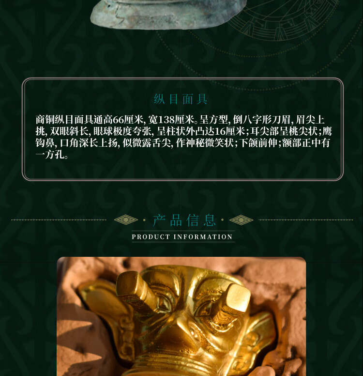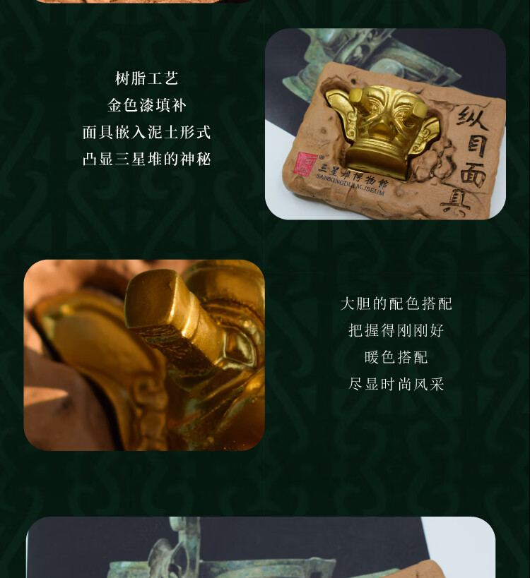三星堆博物馆文创仿真金面人头像客厅桌面摆件黄金面具创意装饰纪念品伴手礼物 三星堆金面人头像摆件