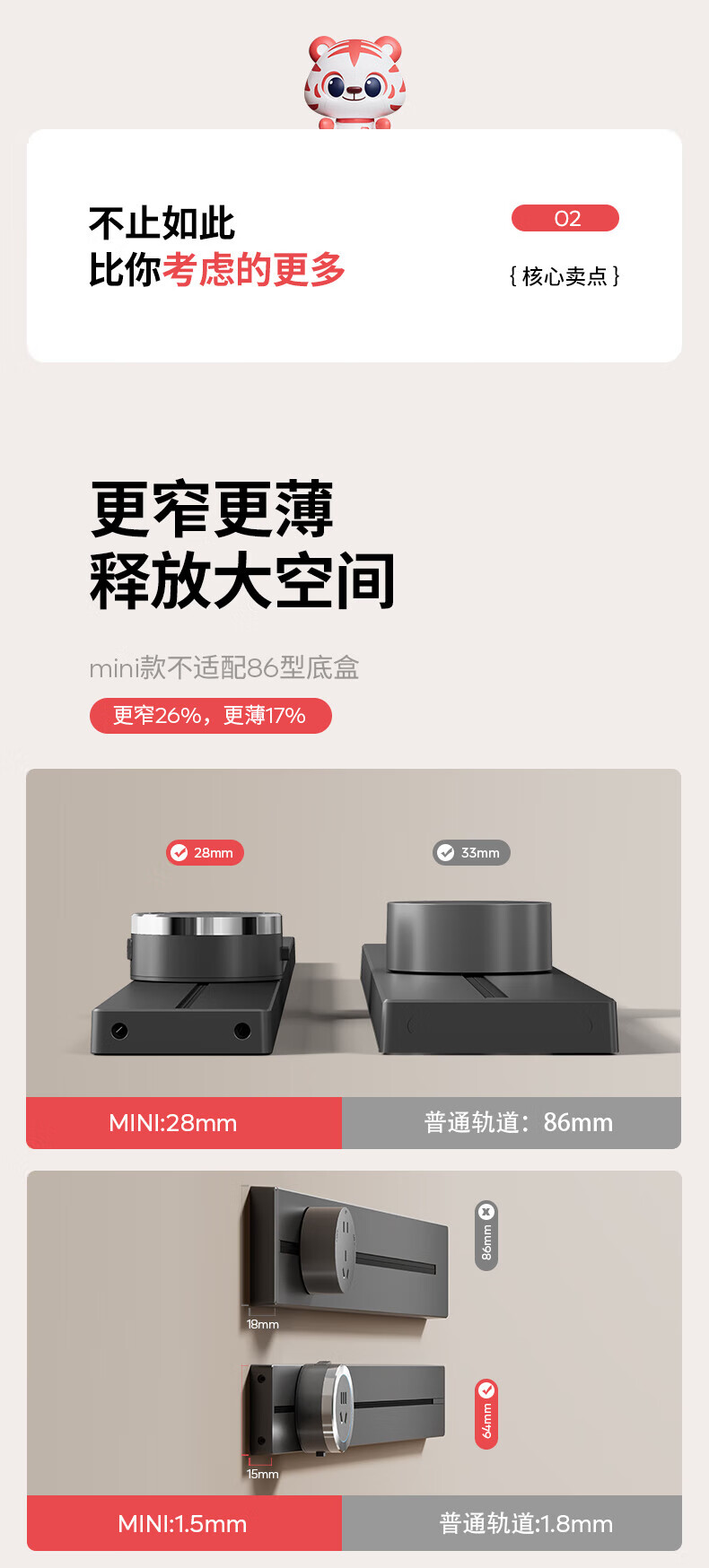 FDD国际电工超薄迷你MINI轨道插座家用一体式导轨插排厨房岛台餐边柜排插接线 40cm轨道+2个薄款五孔