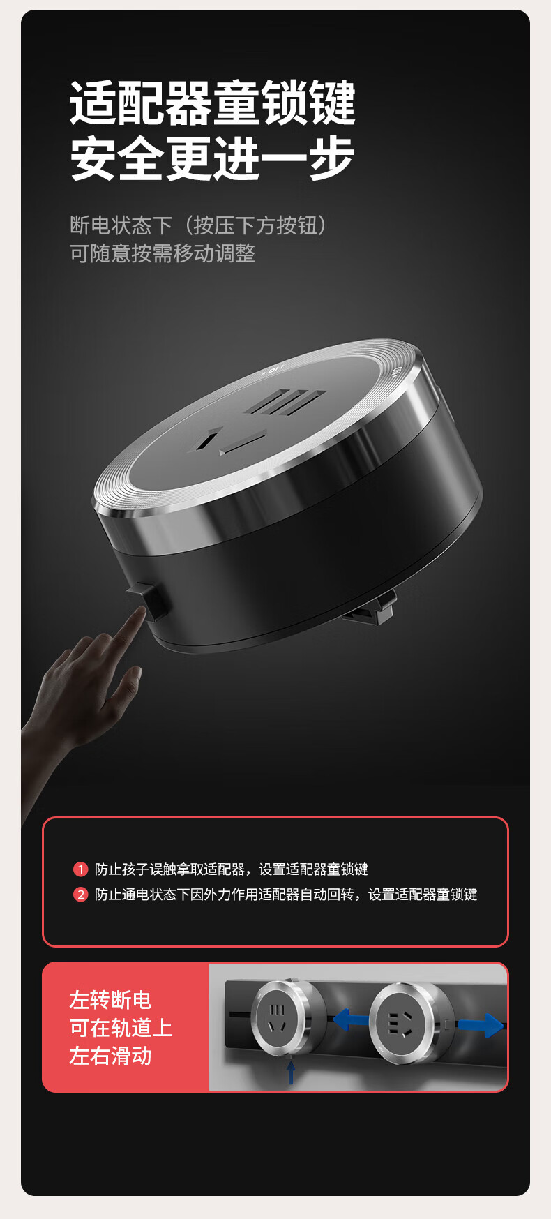 公牛王电器轨道插座德国品质电工可移动轨道插座明装式电力滑动导轨电源 黑色60CM轨道(五孔-带灯*3)黑色 e