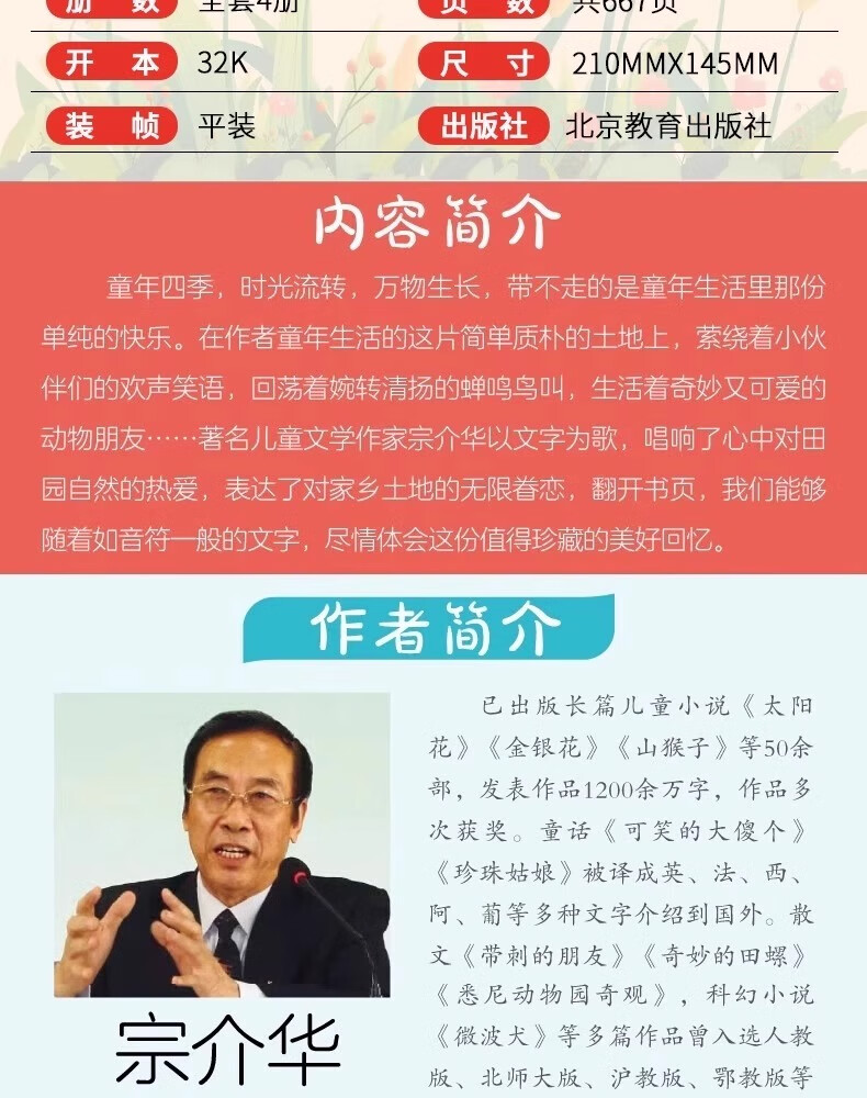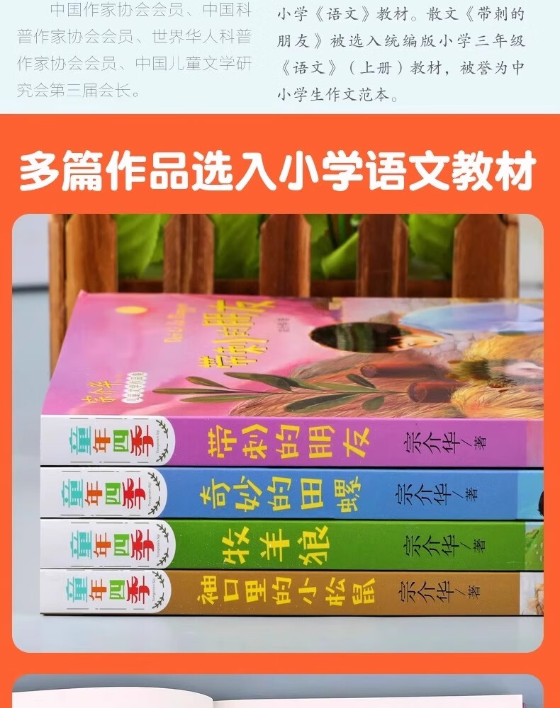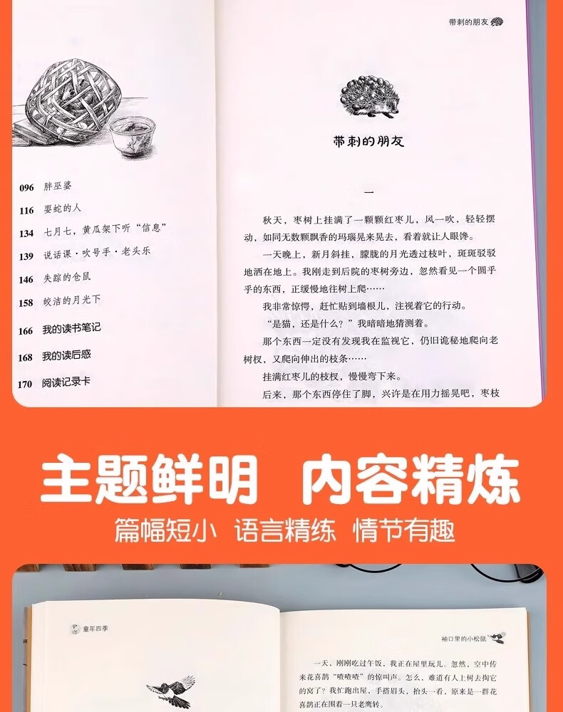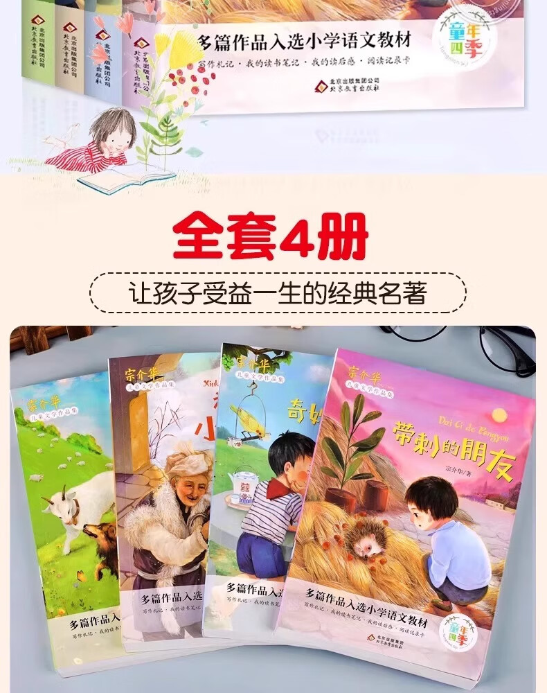 三年级阅读课外书全套4册带刺的朋友宗介华小学生阅读课外书籍四五六年级非注音版奇妙的田螺儿童故事书动物美文系列 带刺的朋友 儿童文学