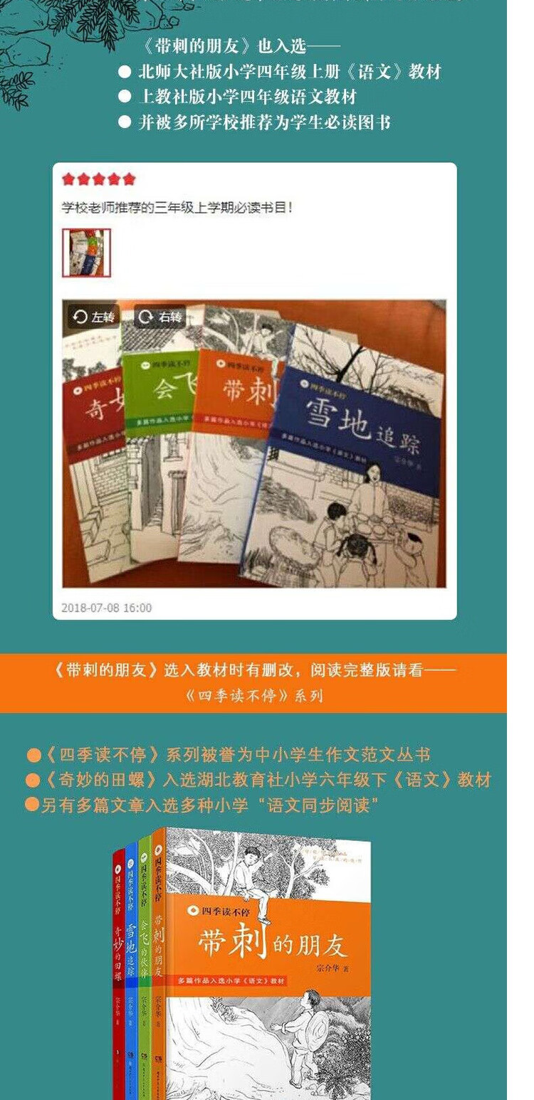 三年级课外书必读上册宗介华人教版24暑假阅读故事书老师推荐 【三年级必读】四季读不停4册 无规格