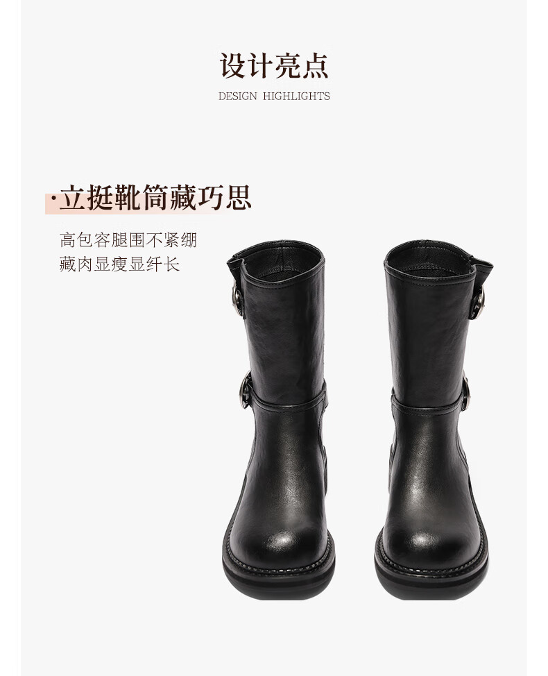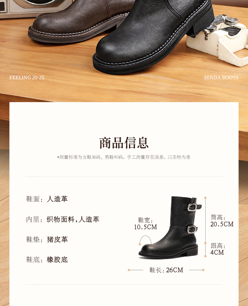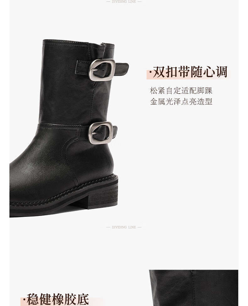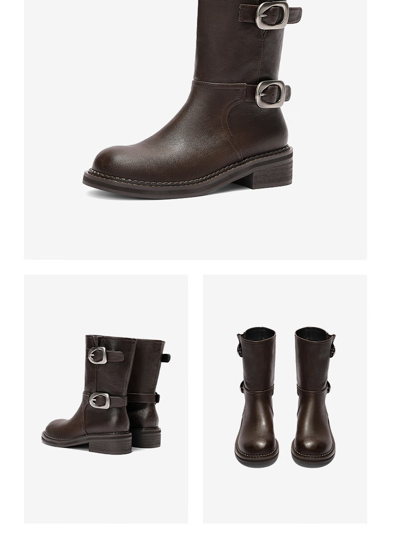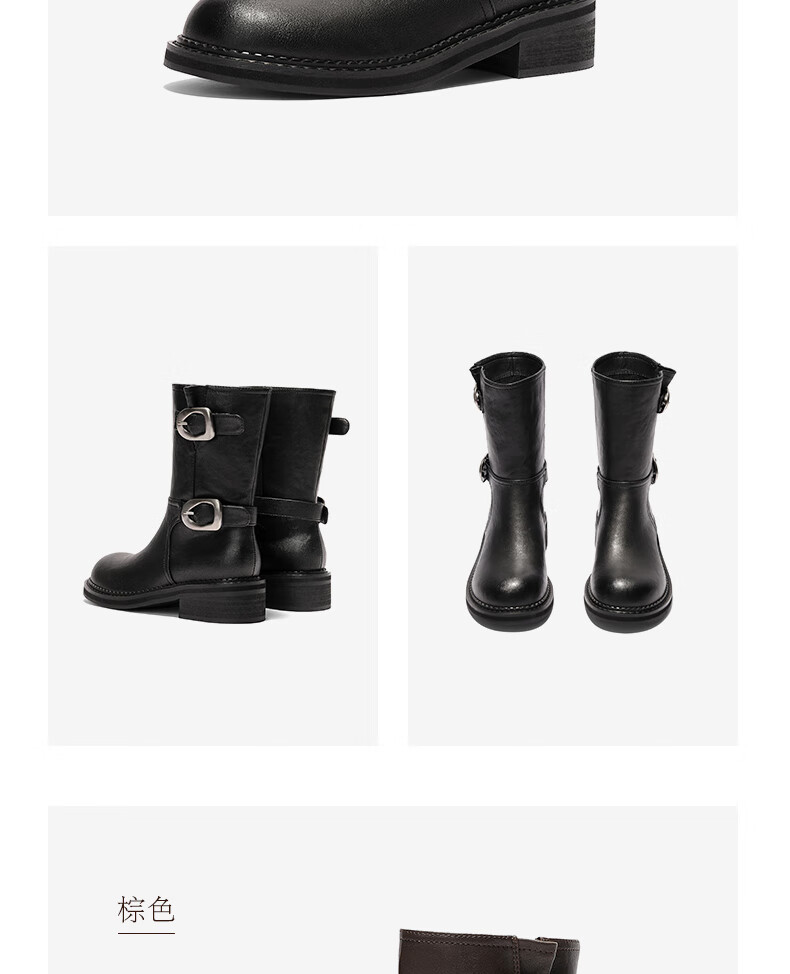 森达明星同款银河骑士时装靴女2025冬新潮流皮带扣户外中筒靴ZTI45DZ5 棕色 37