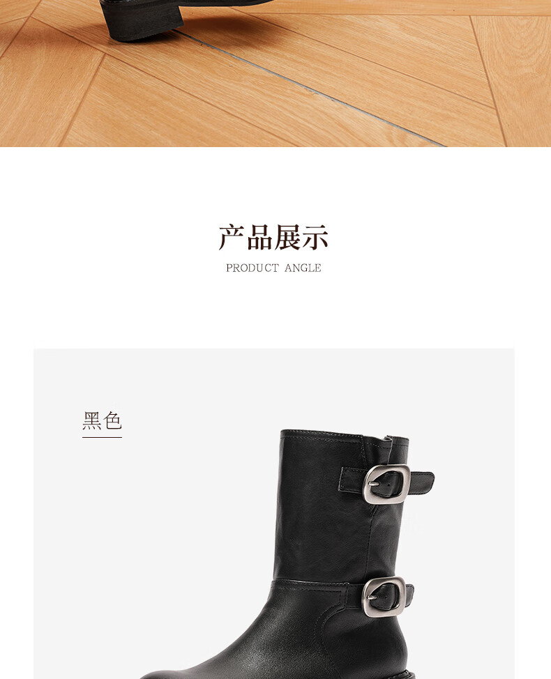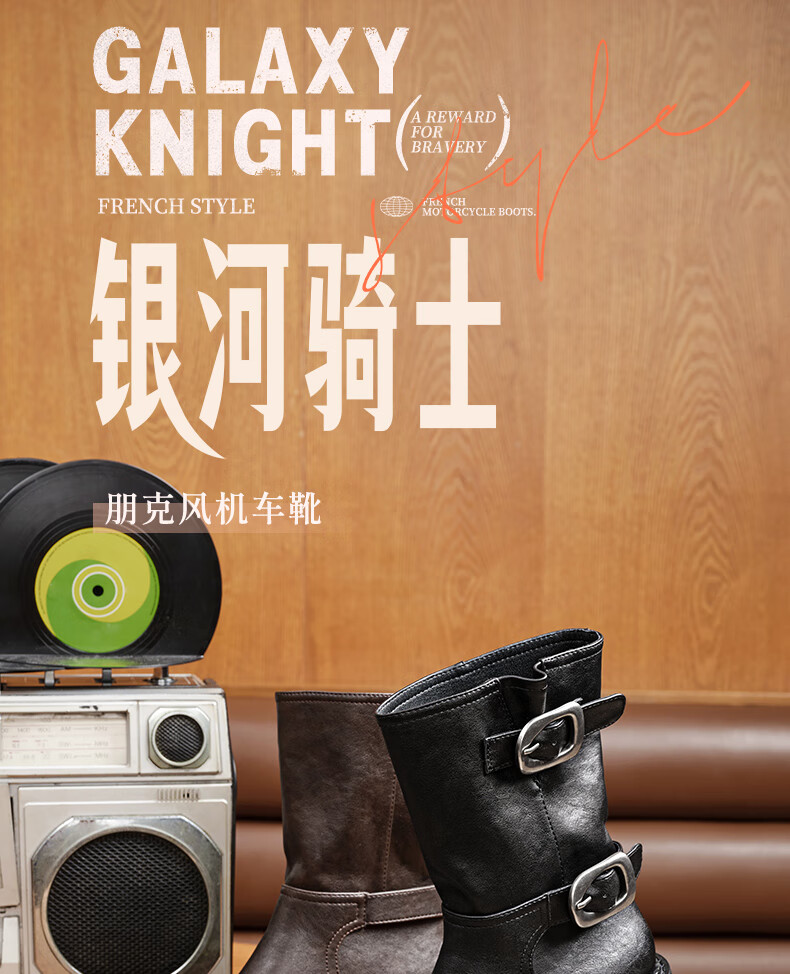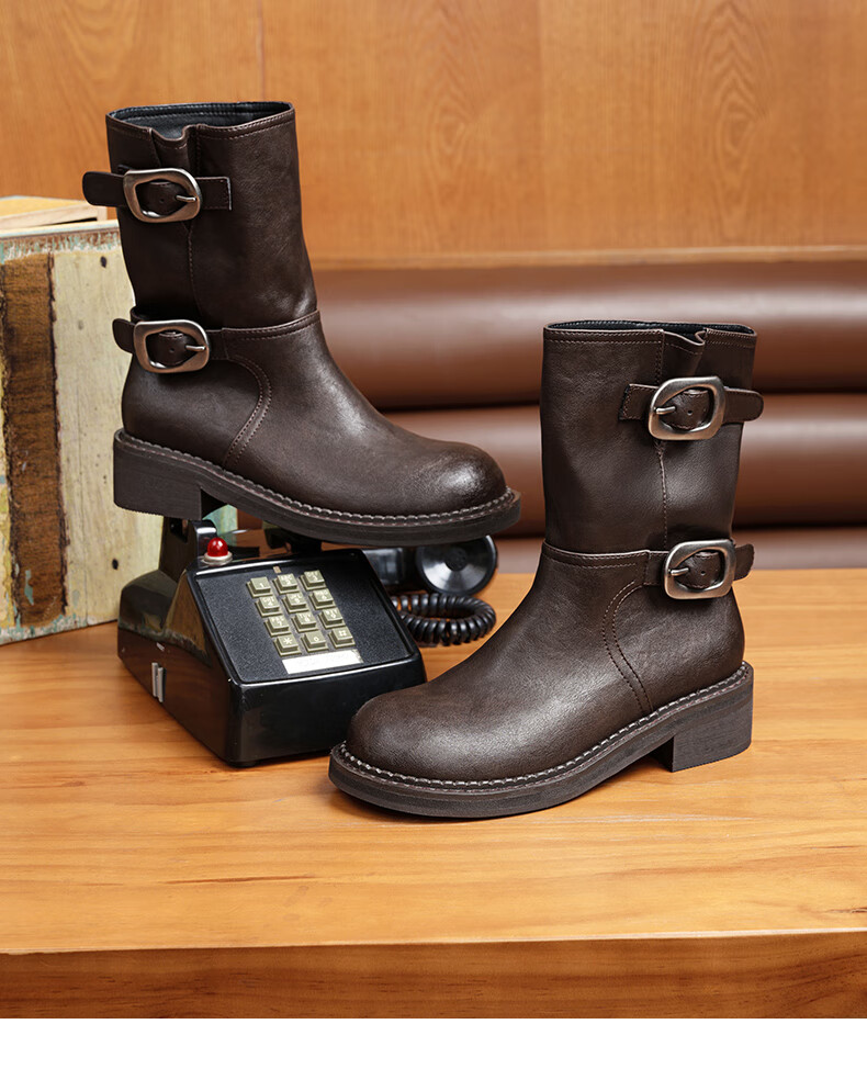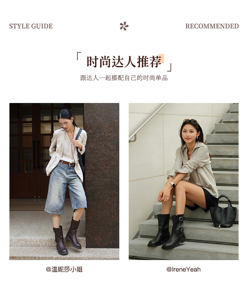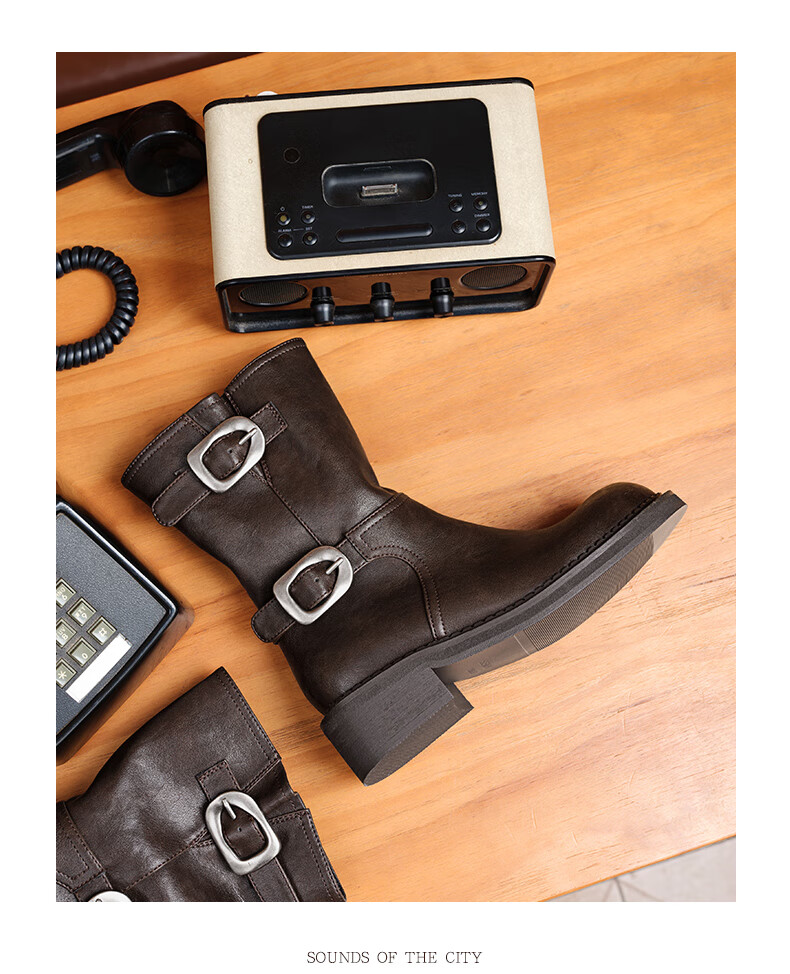 森达明星同款银河骑士时装靴女2025冬新潮流皮带扣户外中筒靴ZTI45DZ5 棕色 37
