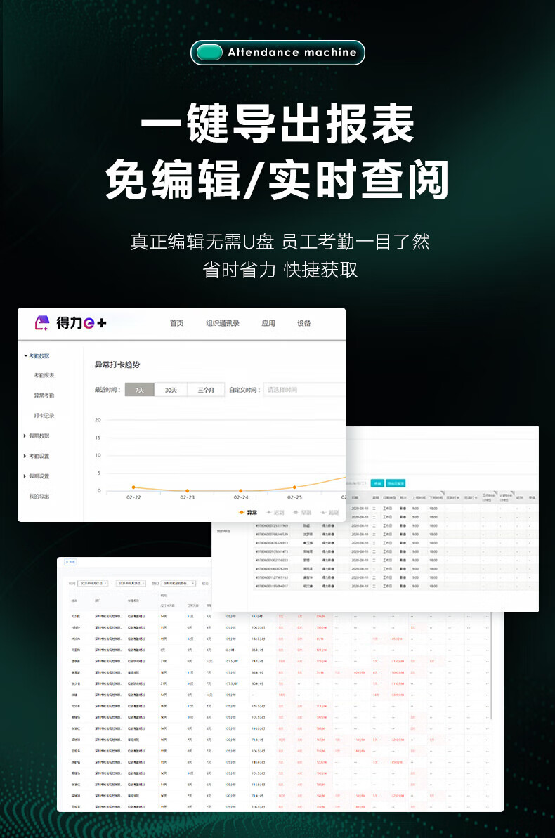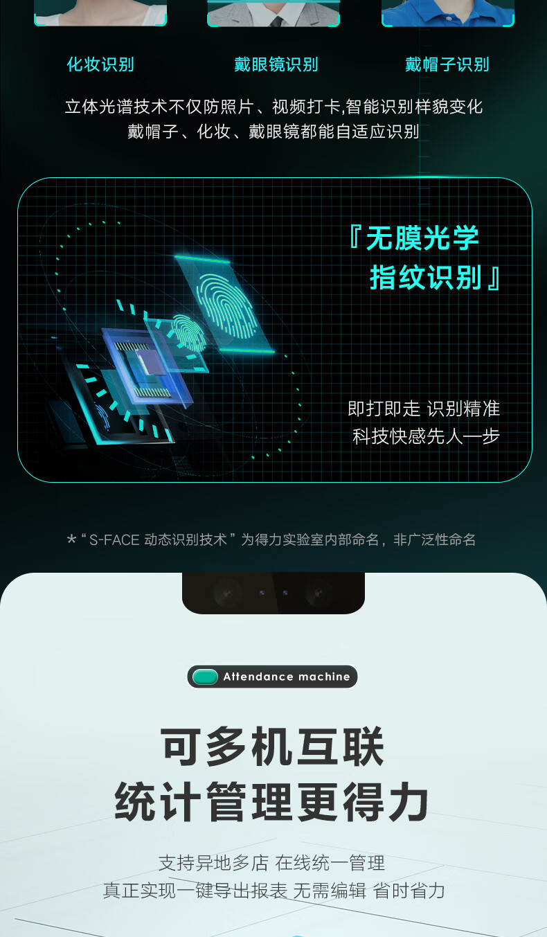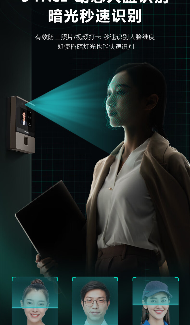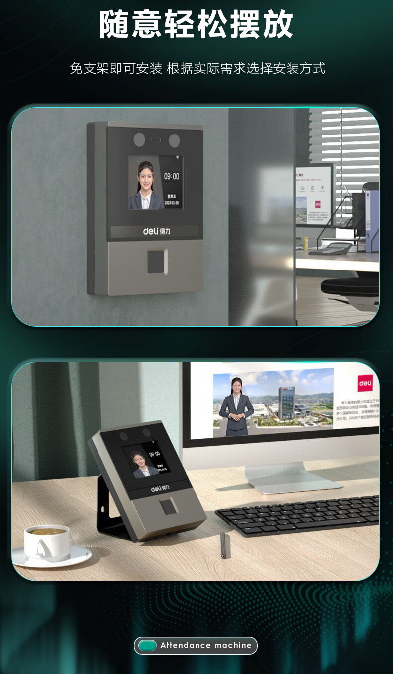 得力智能云考勤机 人脸+指纹打卡 可见光动态人脸识别 活体检测 wifil联网 远程在线管理DL-D3