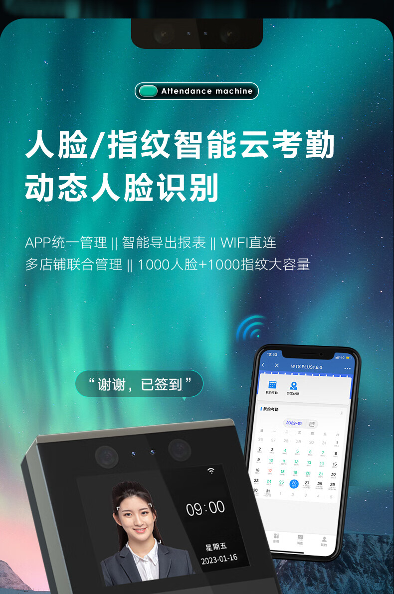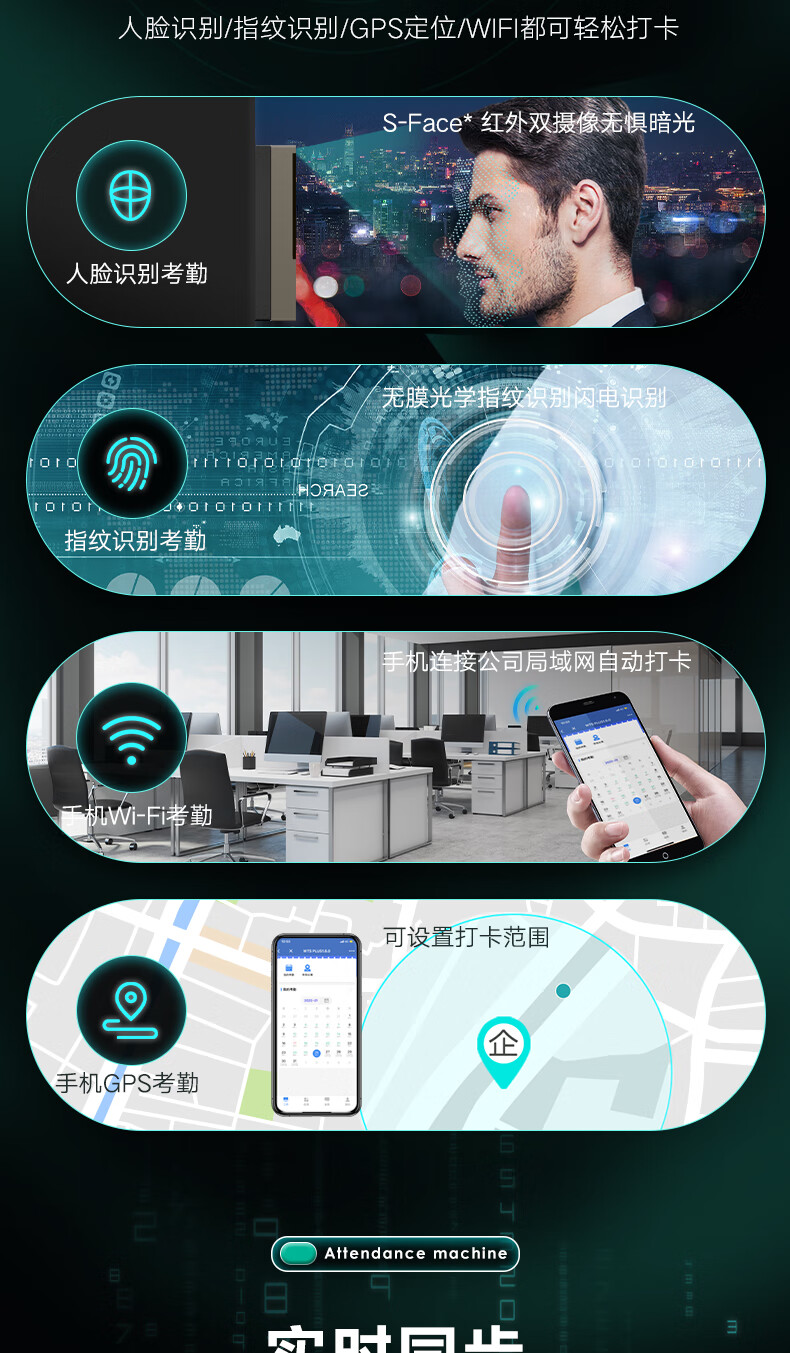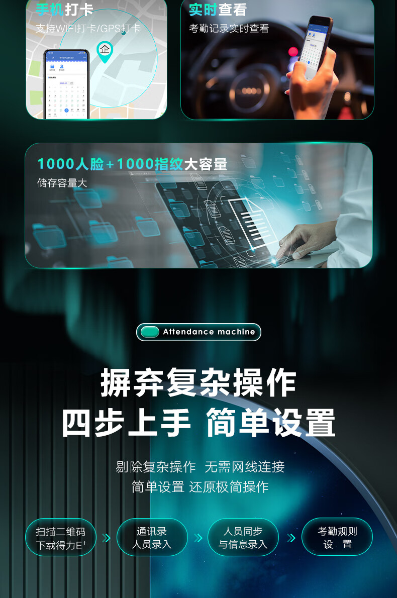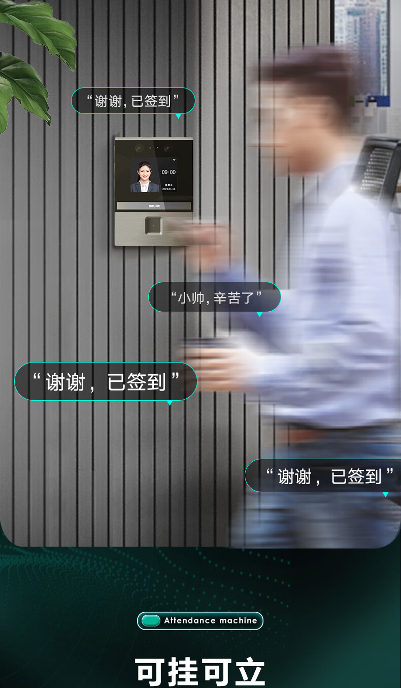 得力智能云考勤机 人脸+指纹打卡 可见光动态人脸识别 活体检测 wifil联网 远程在线管理DL-D3